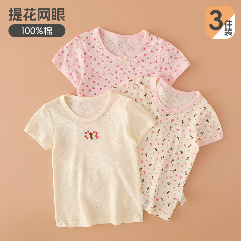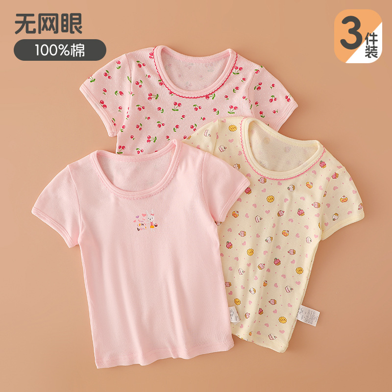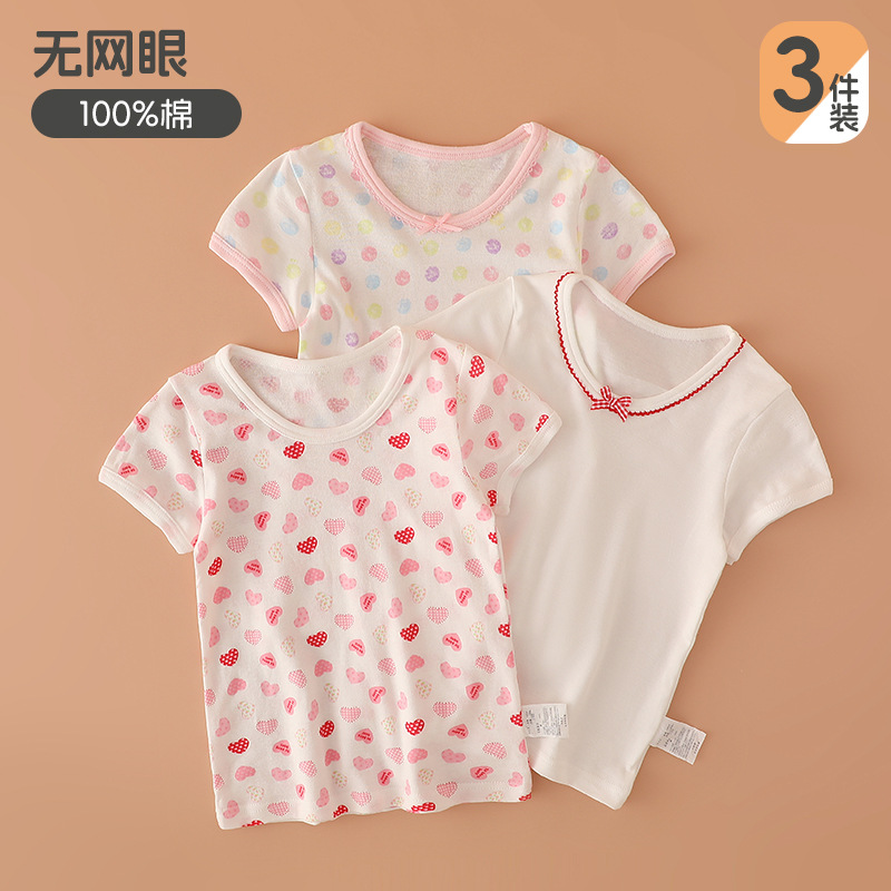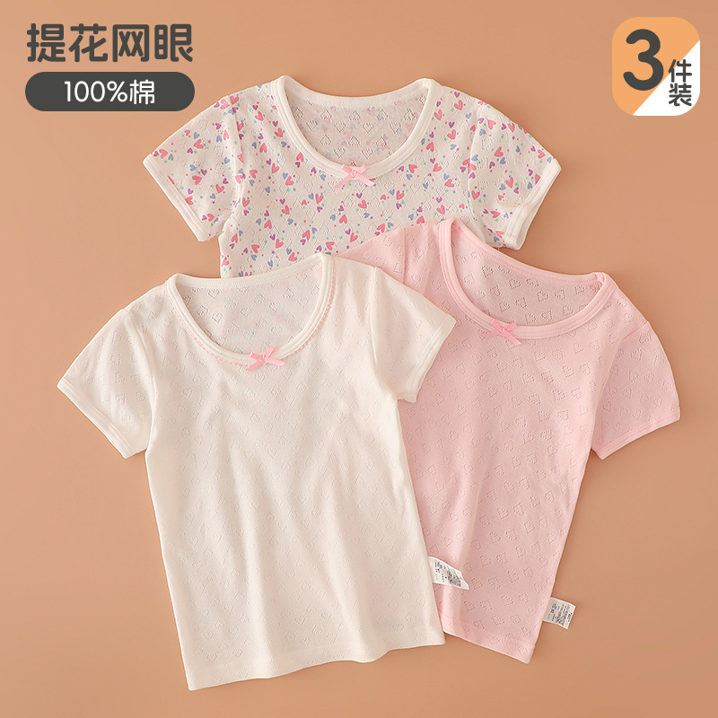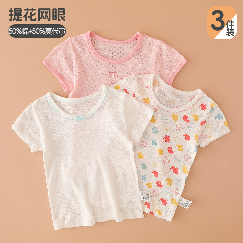 모달 코튼 여아 반팔 티셔츠 메쉬 여름 여아 반팔 카테고리 A 여아 하의 셔츠 베이비 탑 3개