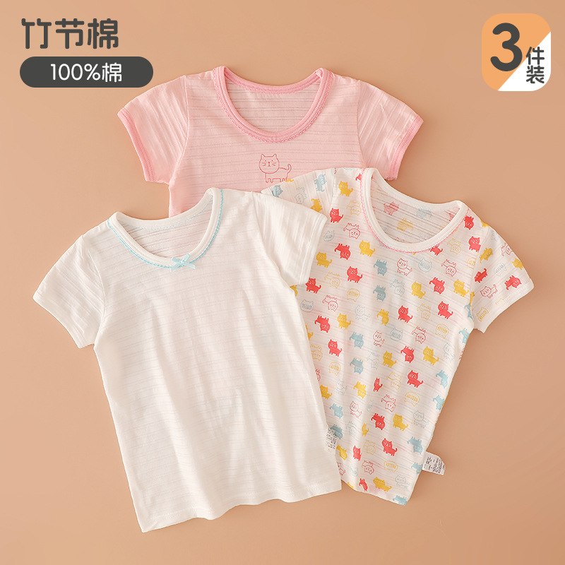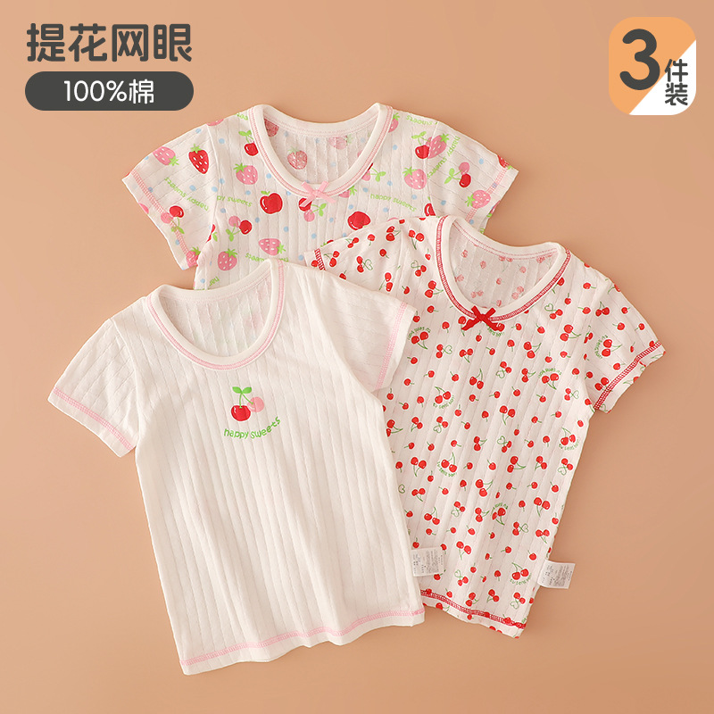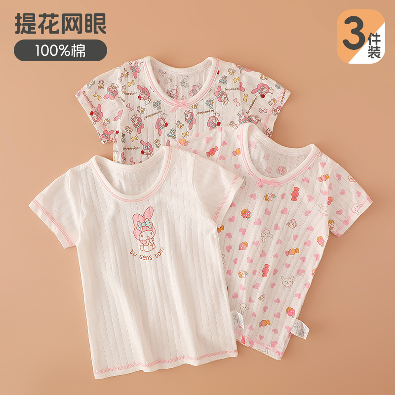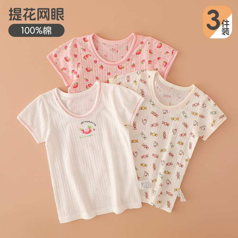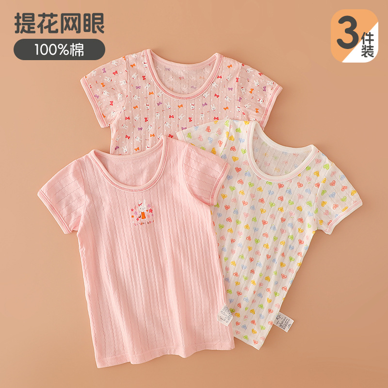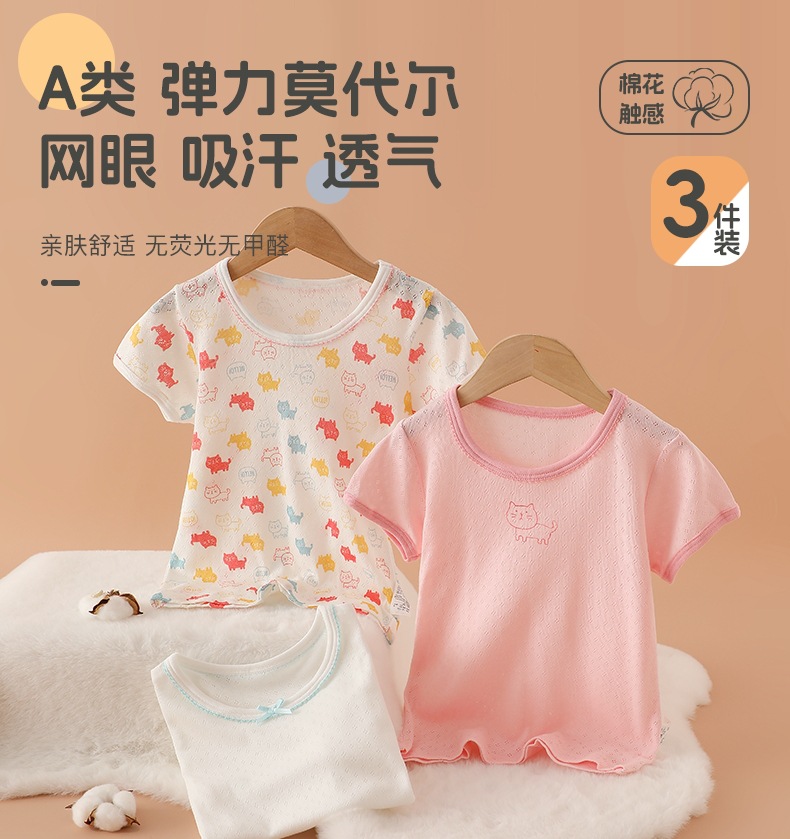 모달 코튼 여아 반팔 티셔츠 메쉬 여름 여아 반팔 카테고리 A 여아 하의 셔츠 베이비 탑 3개
