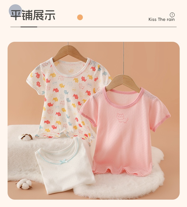 모달 코튼 여아 반팔 티셔츠 메쉬 여름 여아 반팔 카테고리 A 여아 하의 셔츠 베이비 탑 3개스토어 가기