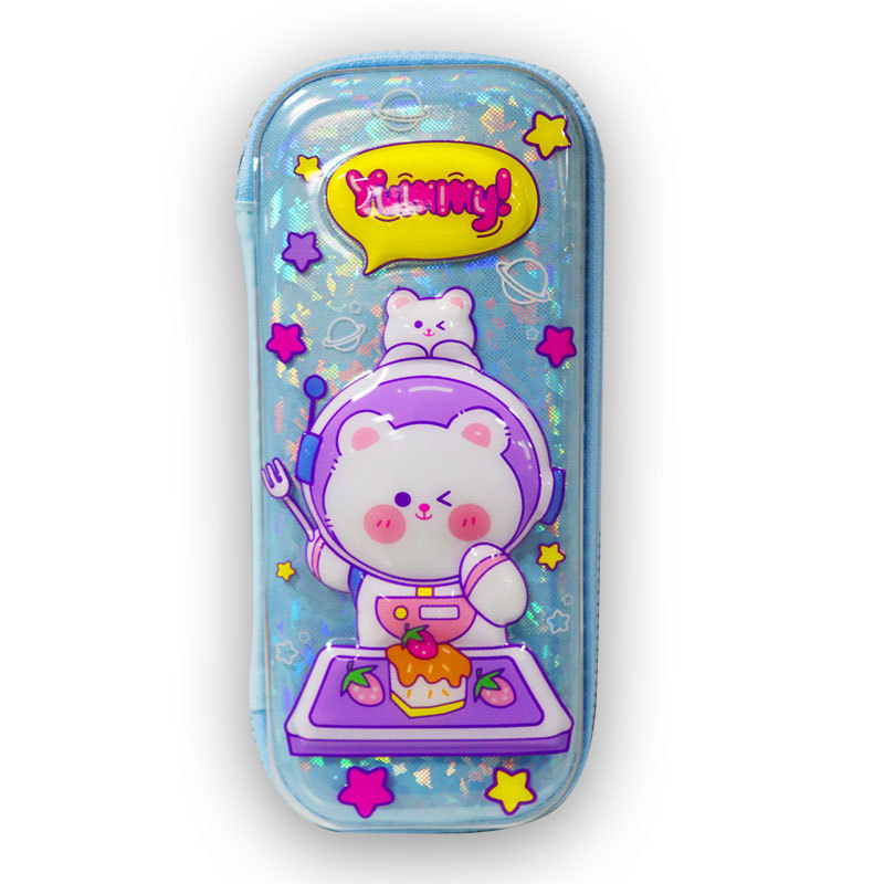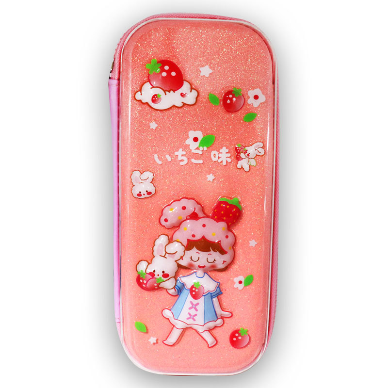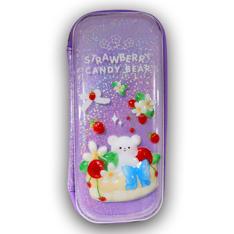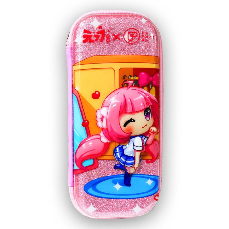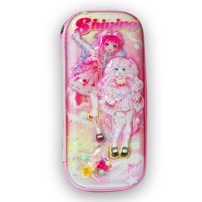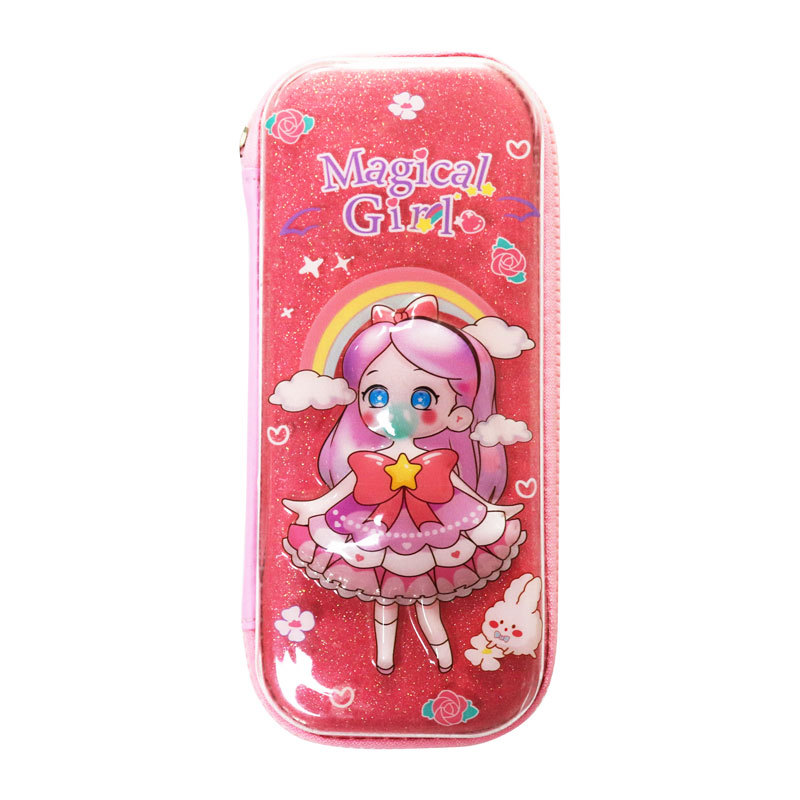 학생 만화 3D 입체 연필 가방 어린이 귀여운 글리터 문구 상자 유아 라운드 선물 대용량 연필 상자