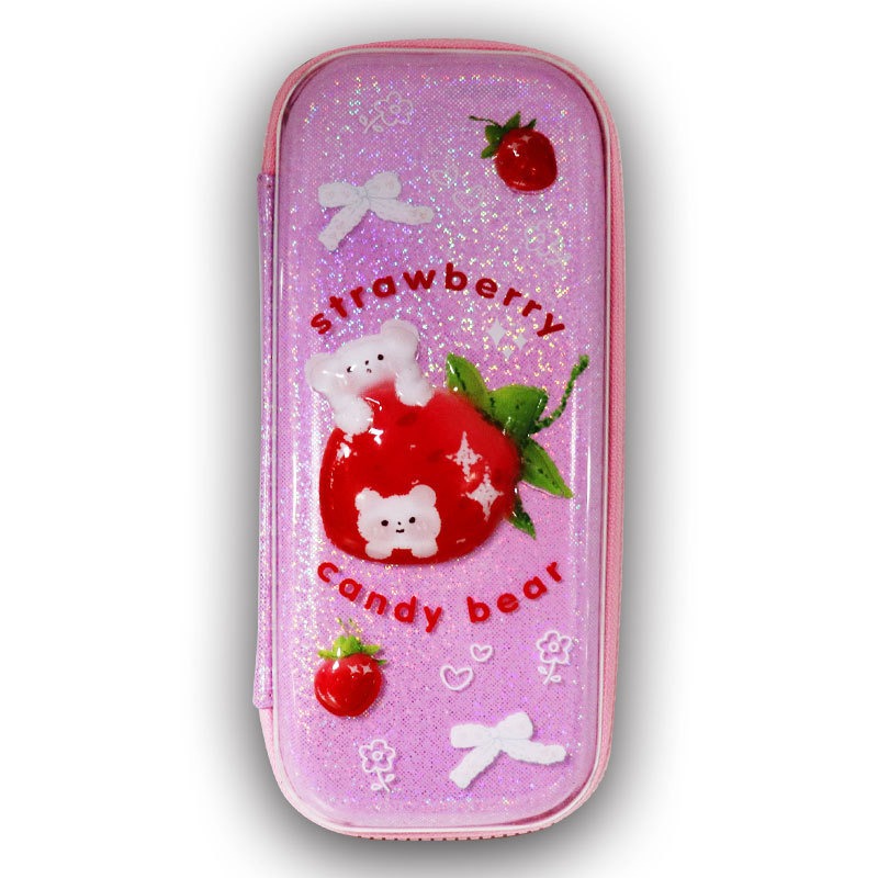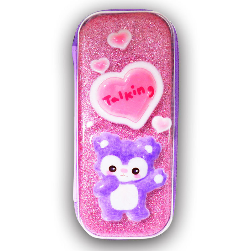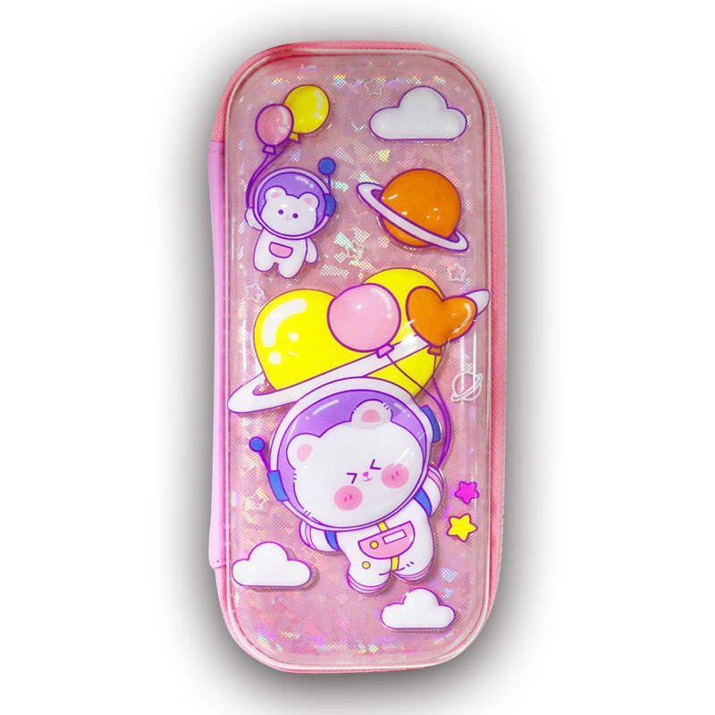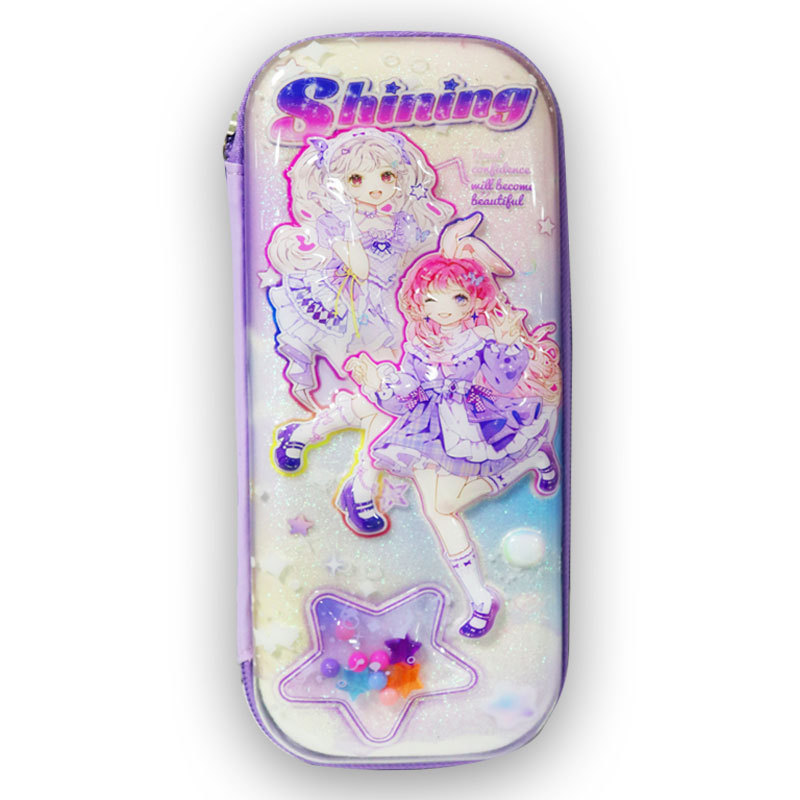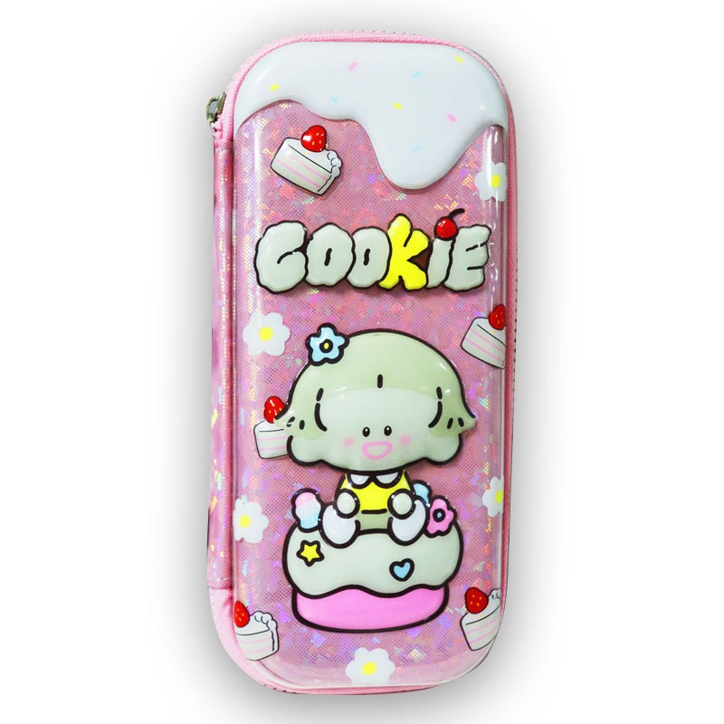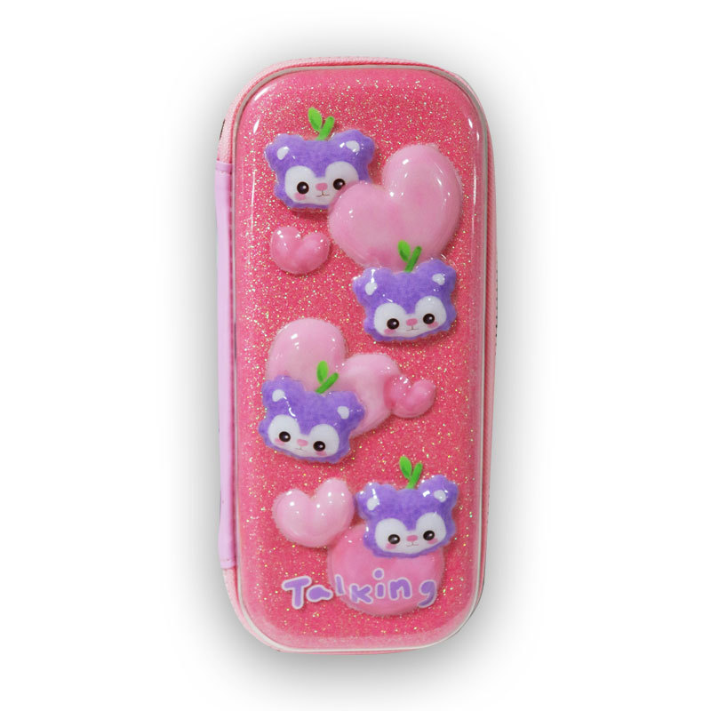 학생 만화 3D 입체 연필 가방 어린이 귀여운 글리터 문구 상자 유아 라운드 선물 대용량 연필 상자