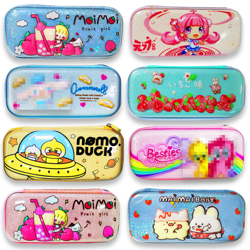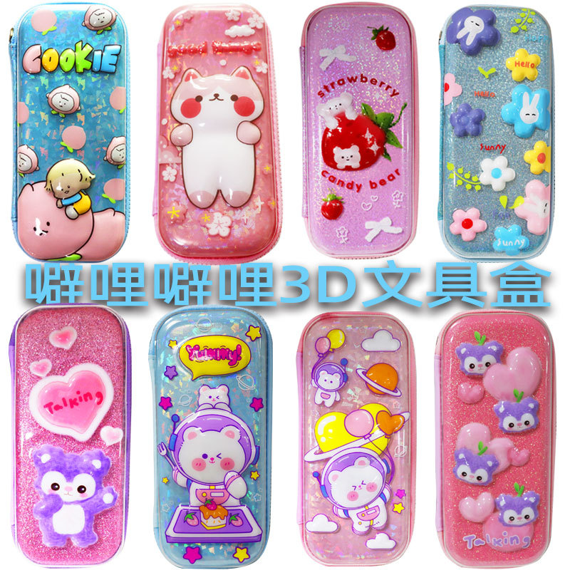 학생 만화 3D 입체 연필 가방 어린이 귀여운 글리터 문구 상자 유아 라운드 선물 대용량 연필 상자스토어 가기