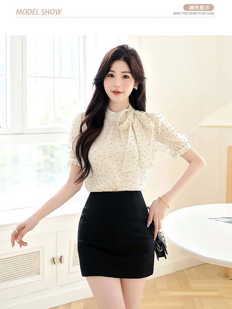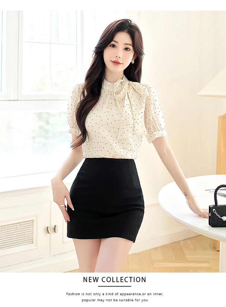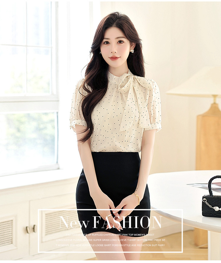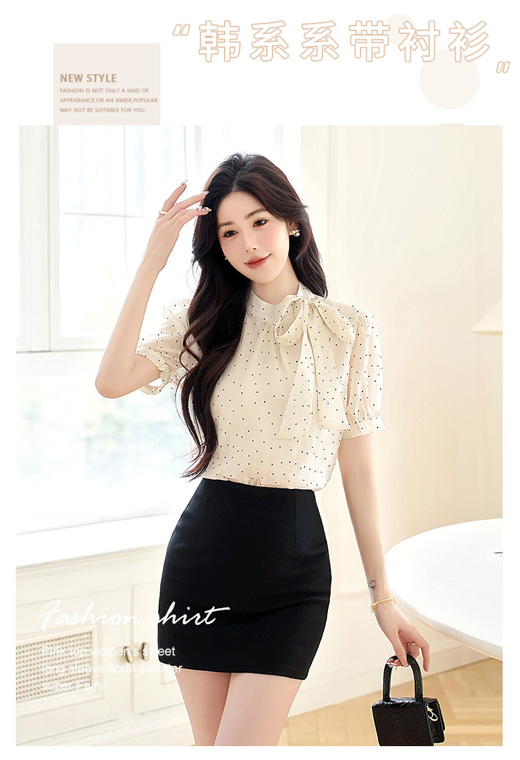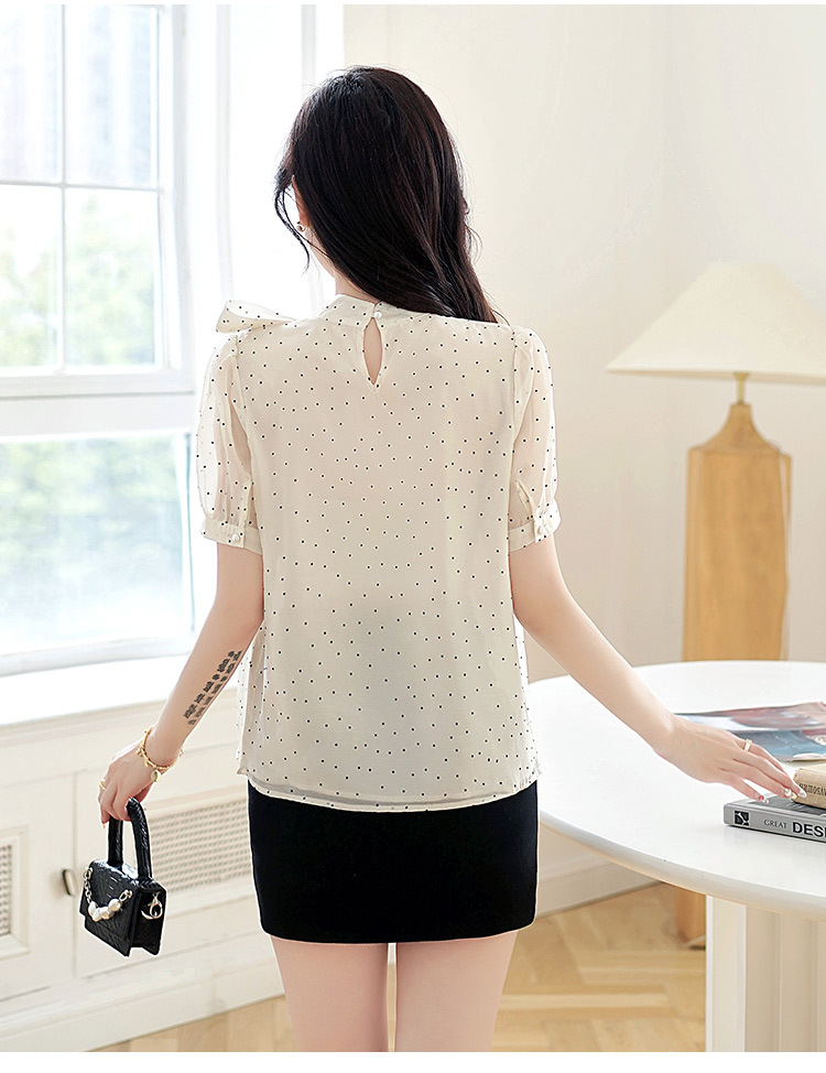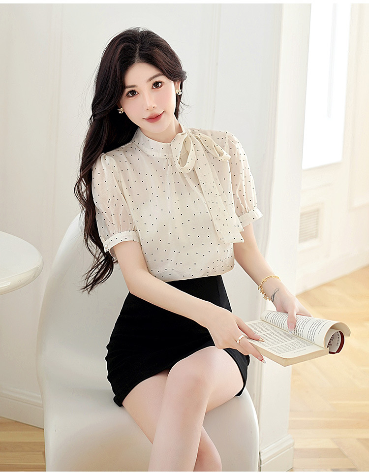 프랑스 달콤한 폴로 도트 활 짧은 소매 셔츠 여성의 2025 여름 새로운 패션 레이스 쉬폰 셔츠 탑 트렌디스토어 가기