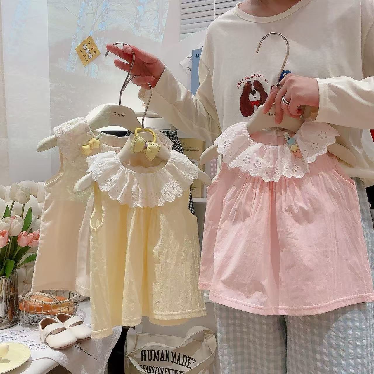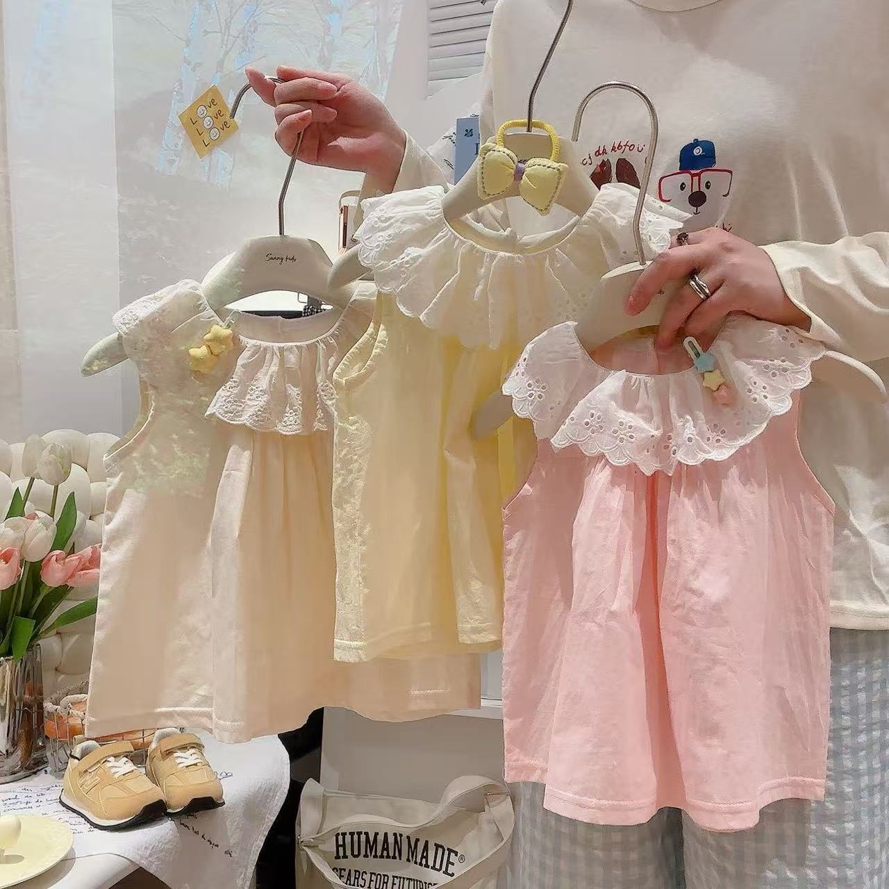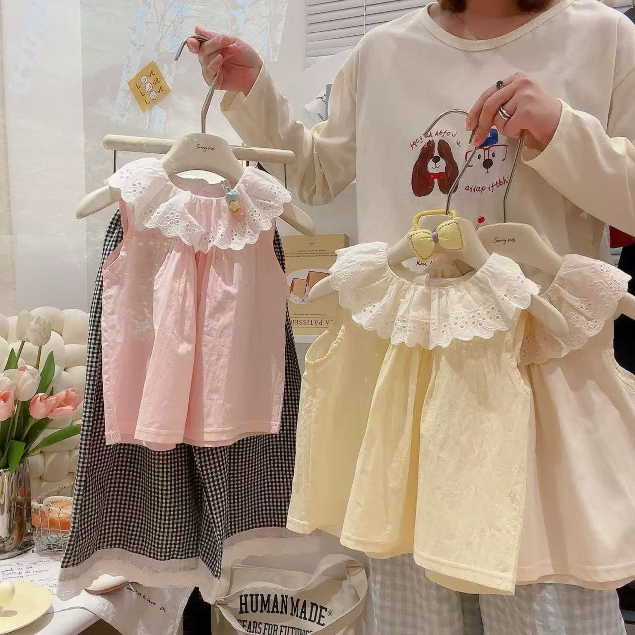 2025 여름 새로운 외국 스타일 조커 소녀 여름 인형 셔츠 얇은 통기성 어린이 의상 머리카락 세대스토어 가기