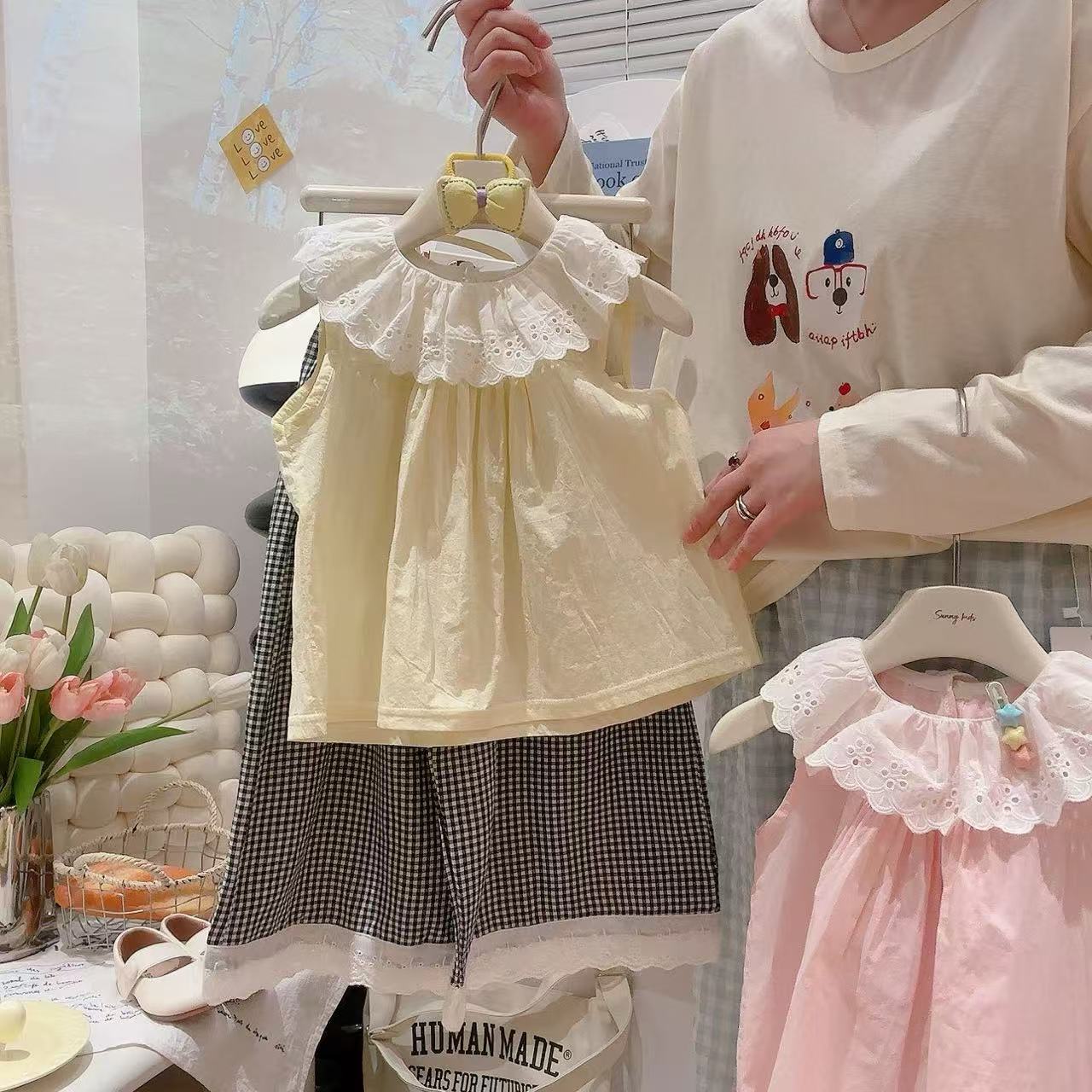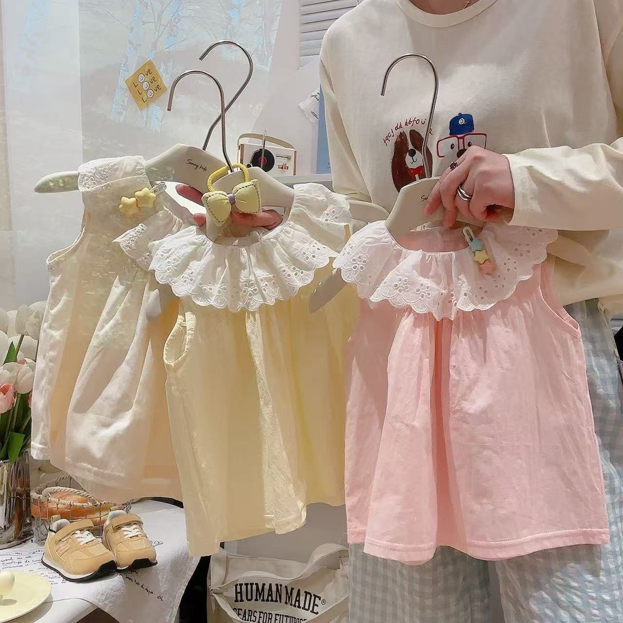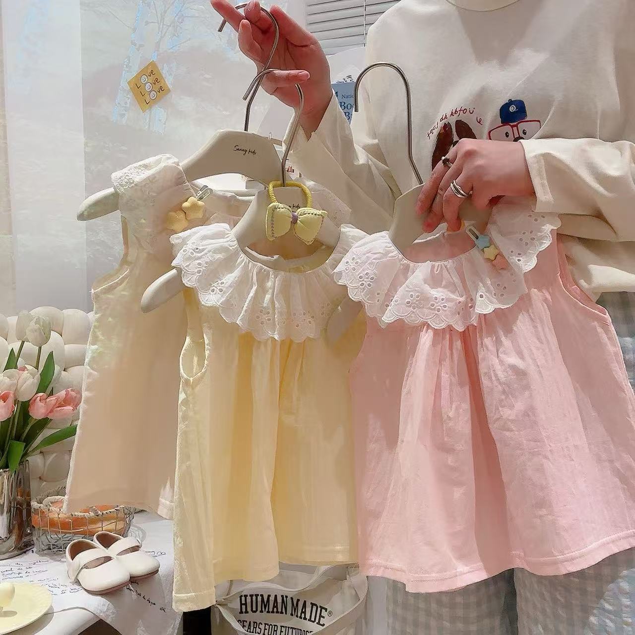 2025 여름 새로운 외국 스타일 조커 소녀 여름 인형 셔츠 얇은 통기성 어린이 의상 머리카락 세대스토어 가기