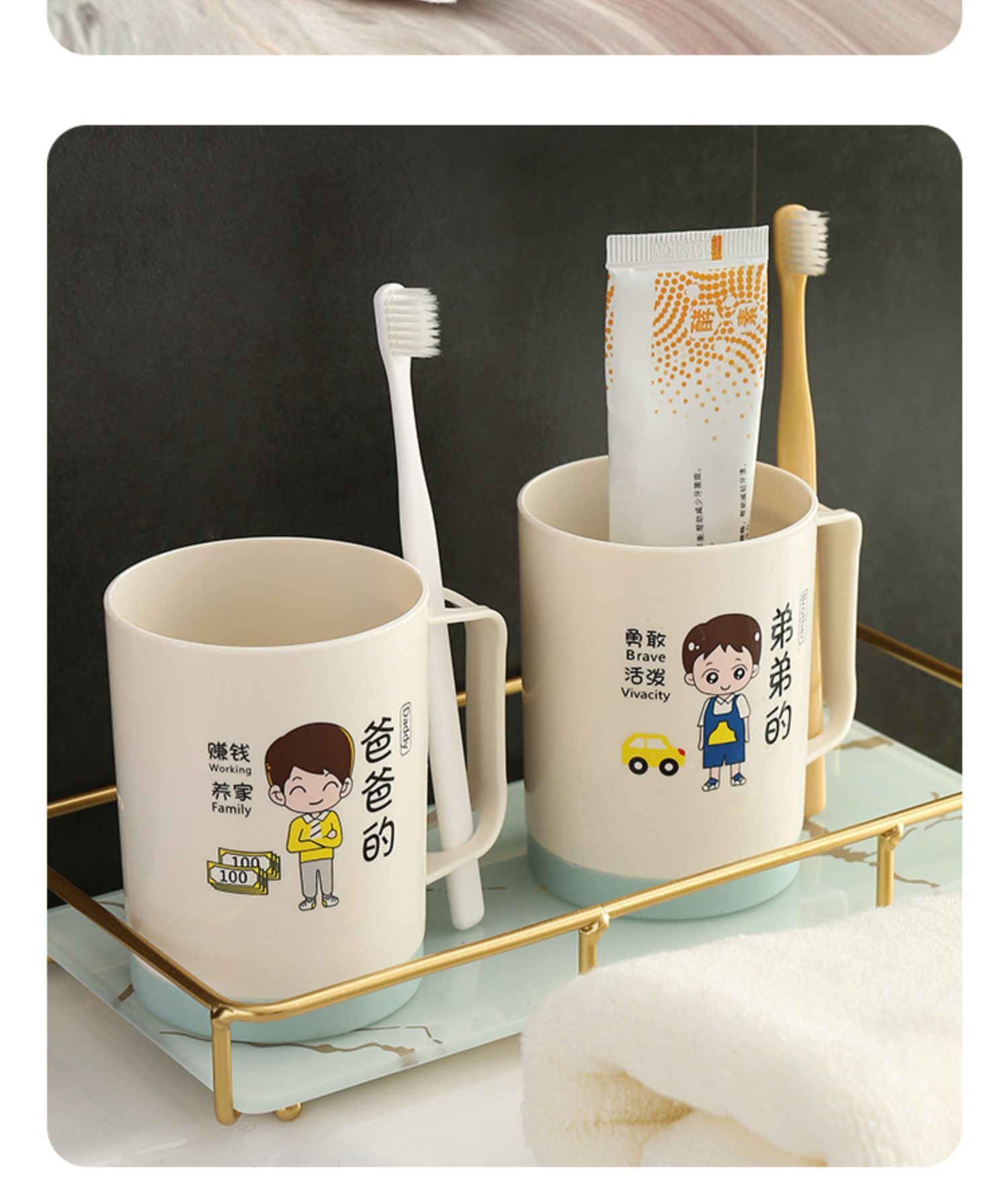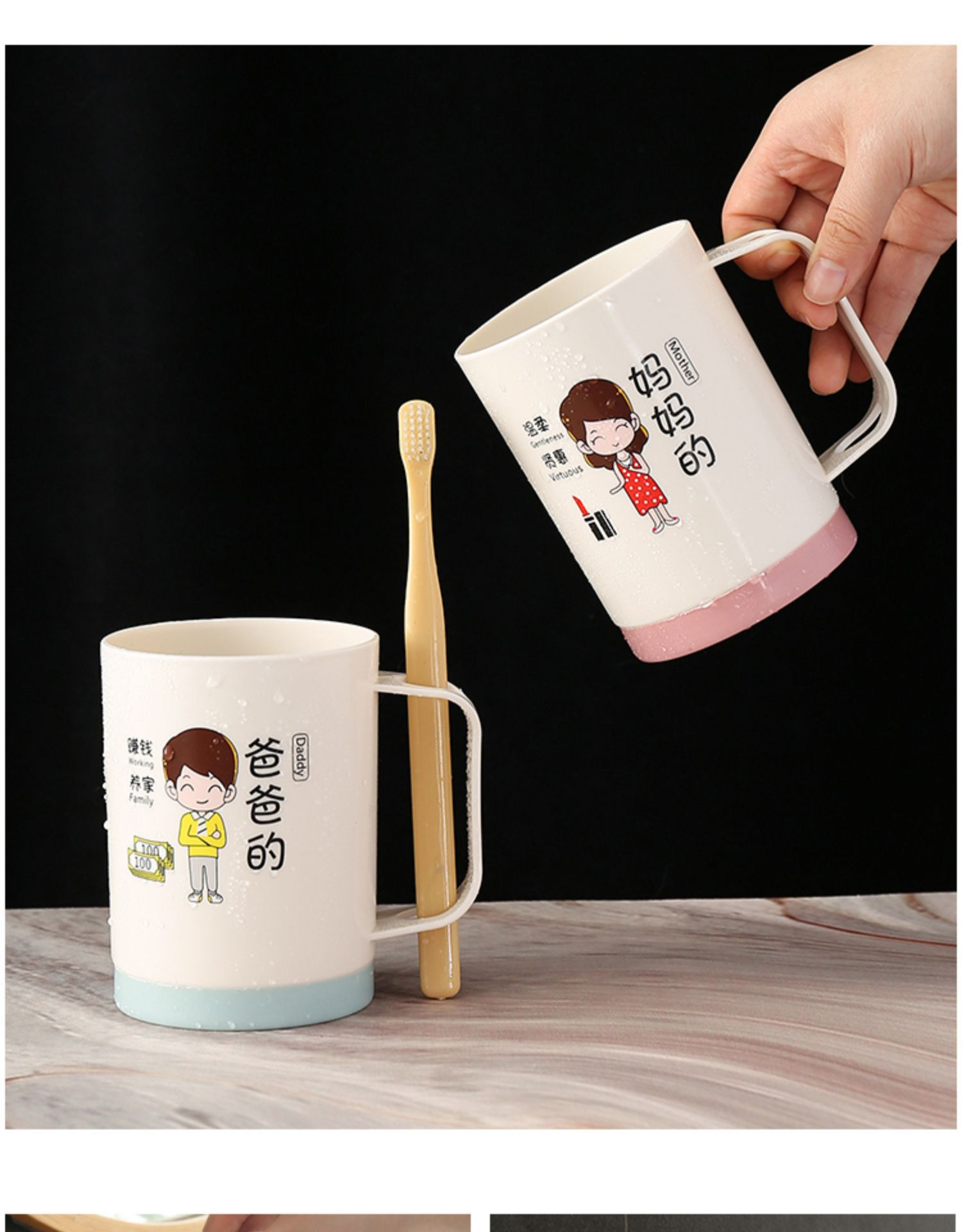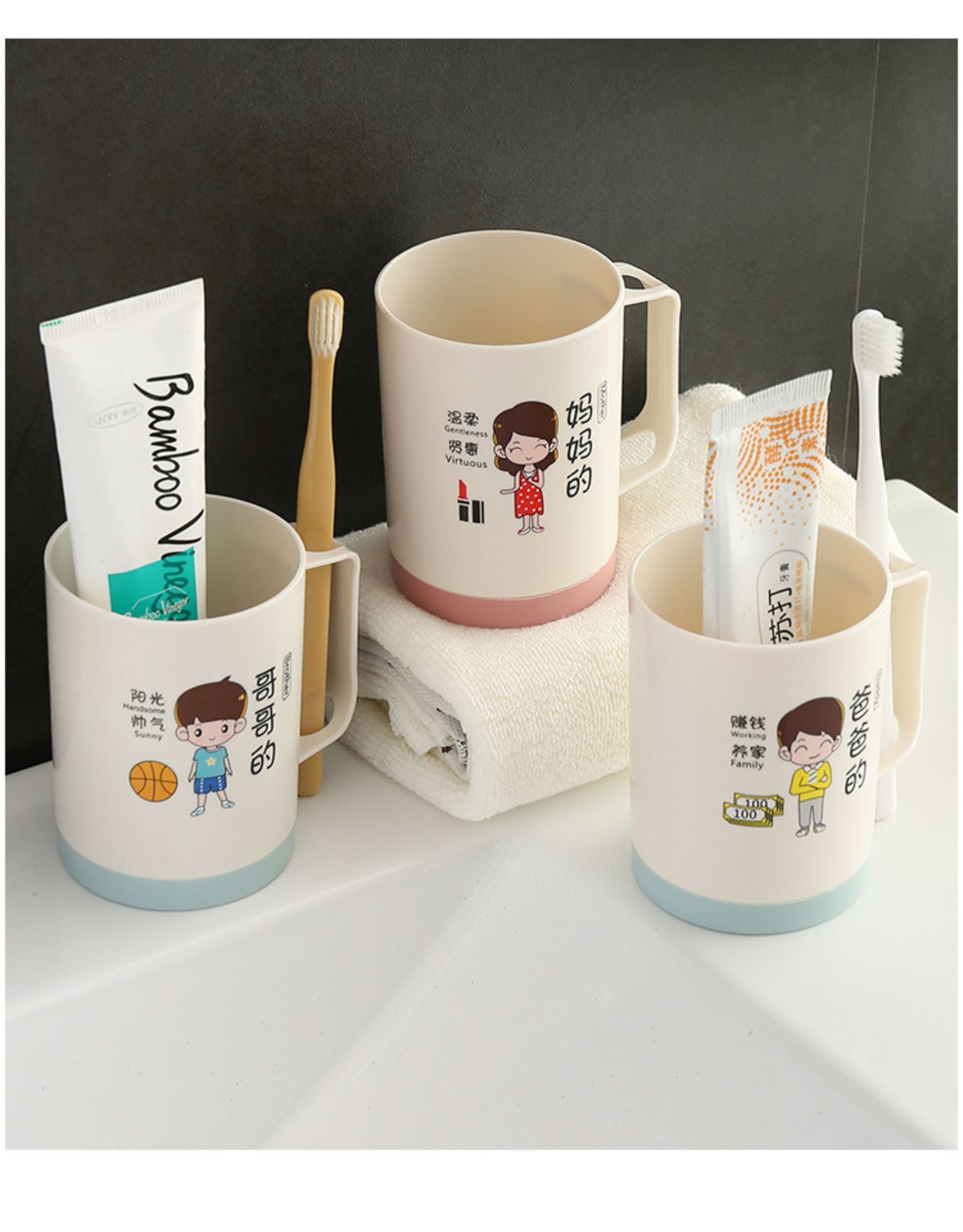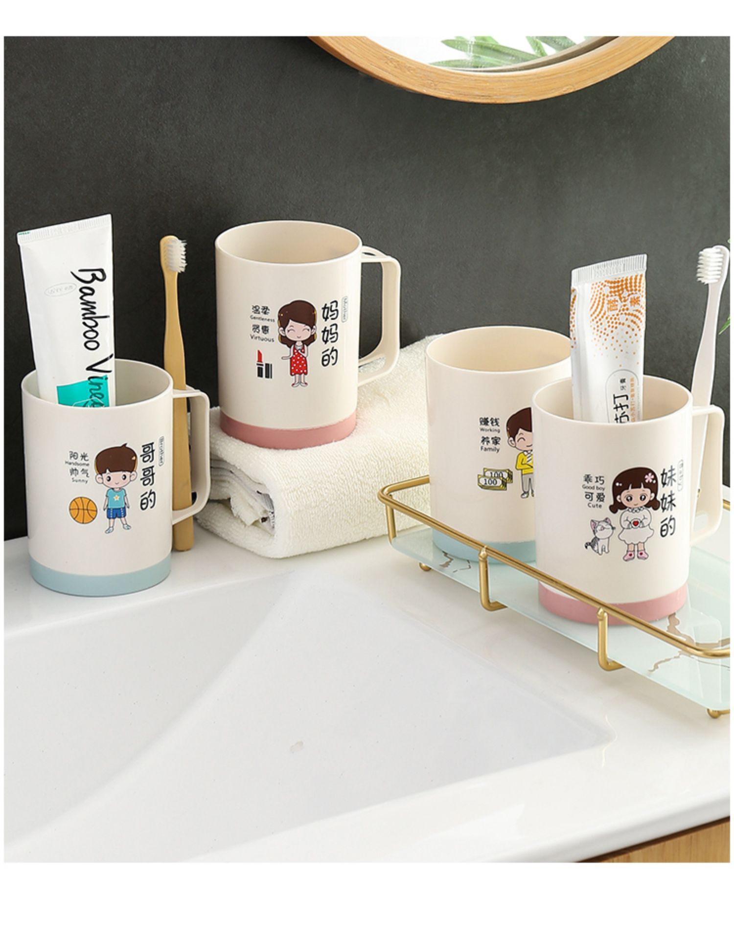 6인 가족을 위한 핫셀링 가족용 부모-자식 낙하 방지 칫솔 컵, 워시 컵, 홈 크리에이티브 칫솔, 칫솔, 구강 세정제 컵 세트