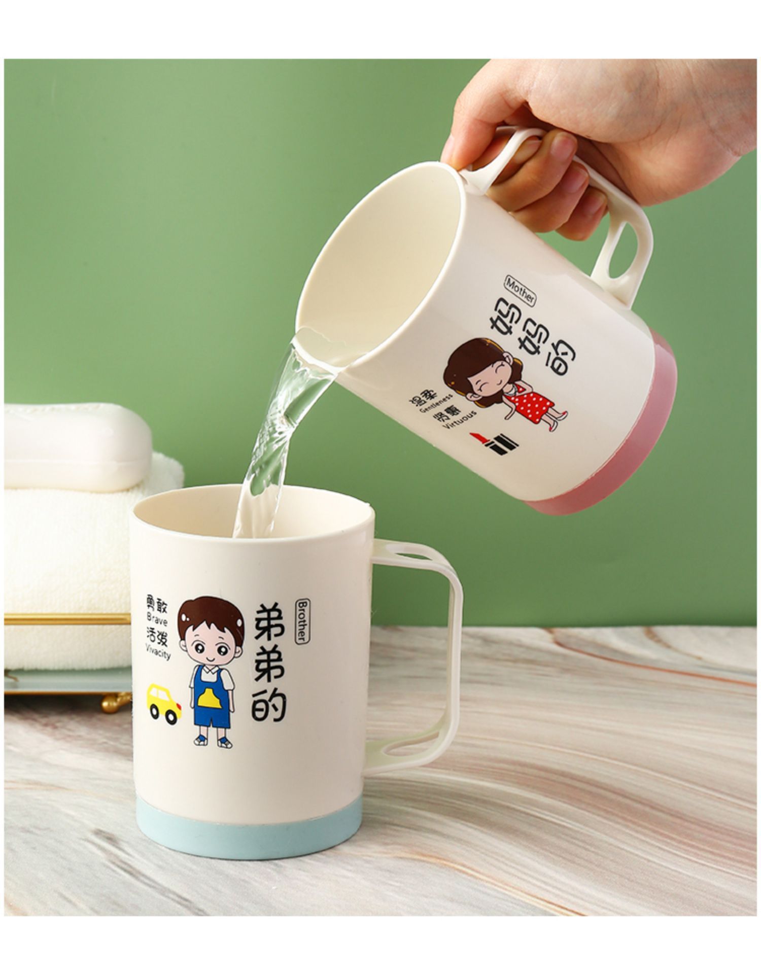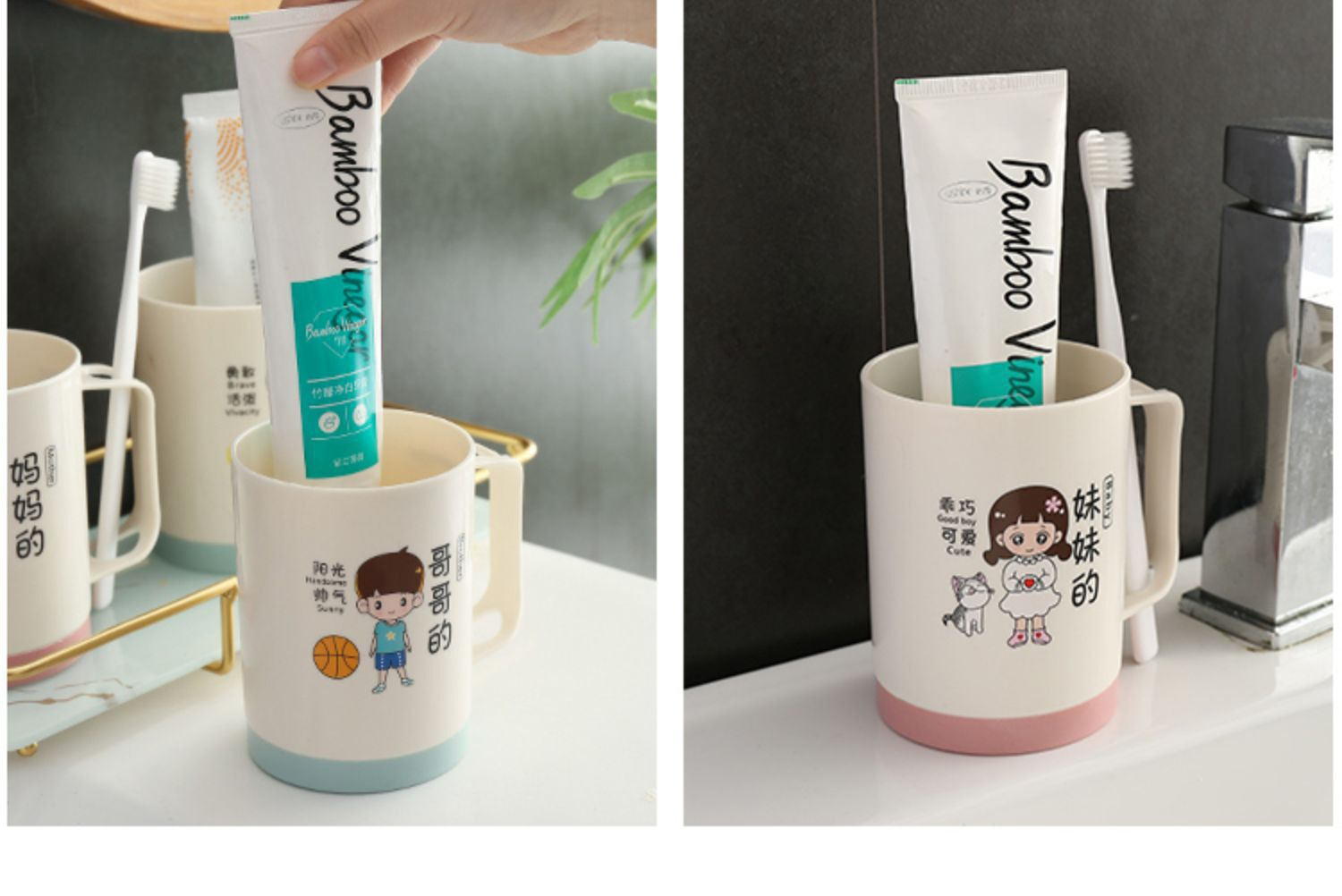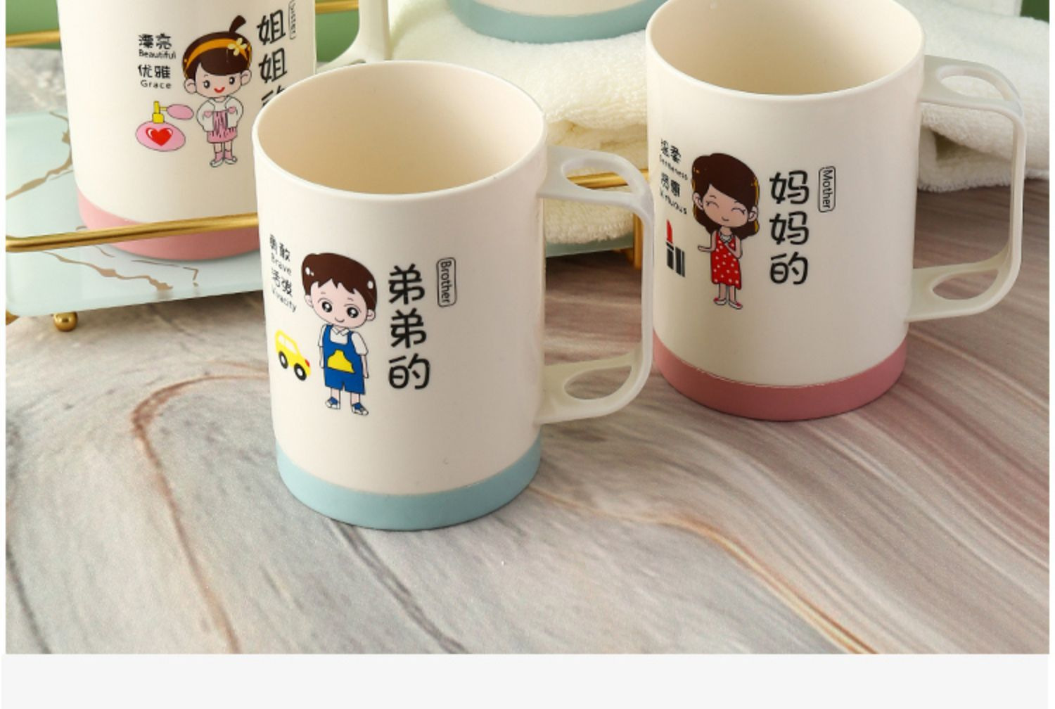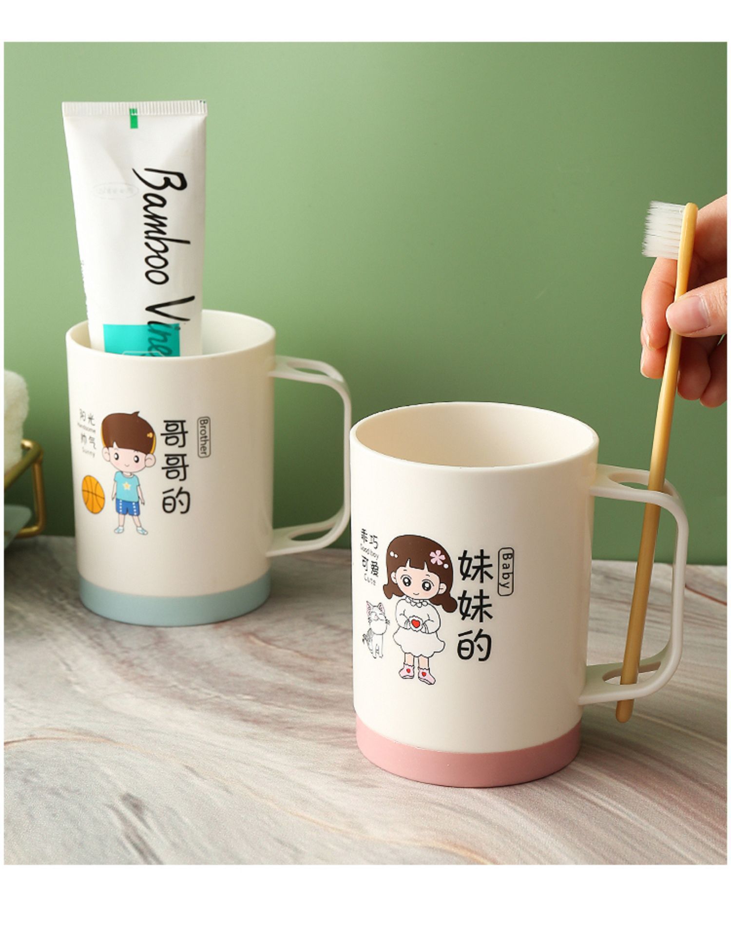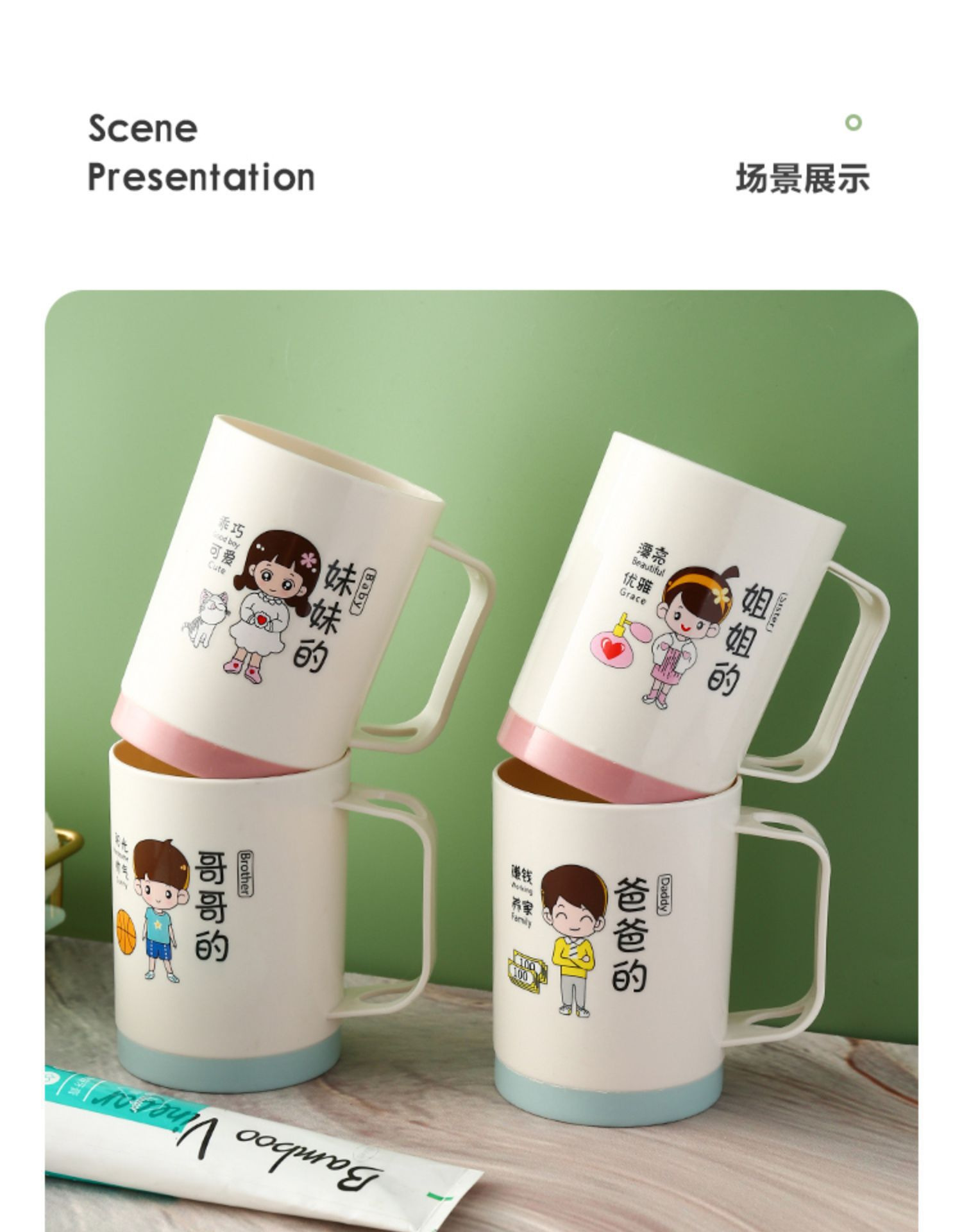 6인 가족을 위한 핫셀링 가족용 부모-자식 낙하 방지 칫솔 컵, 워시 컵, 홈 크리에이티브 칫솔, 칫솔, 구강 세정제 컵 세트