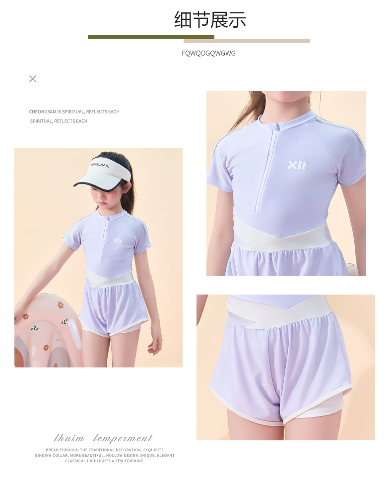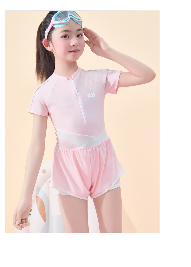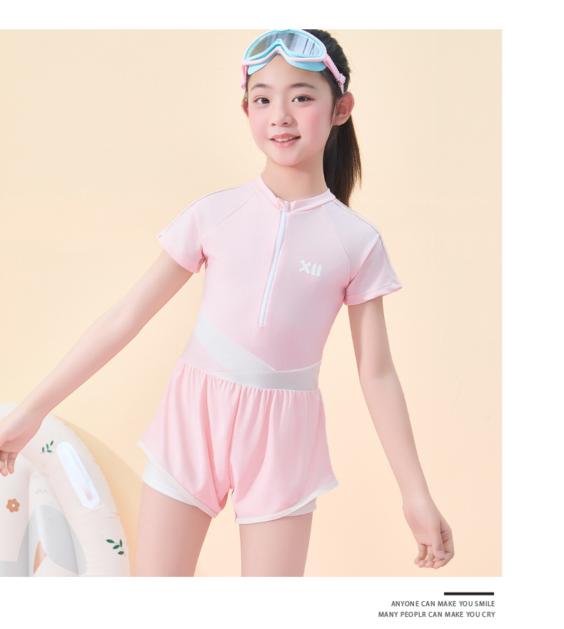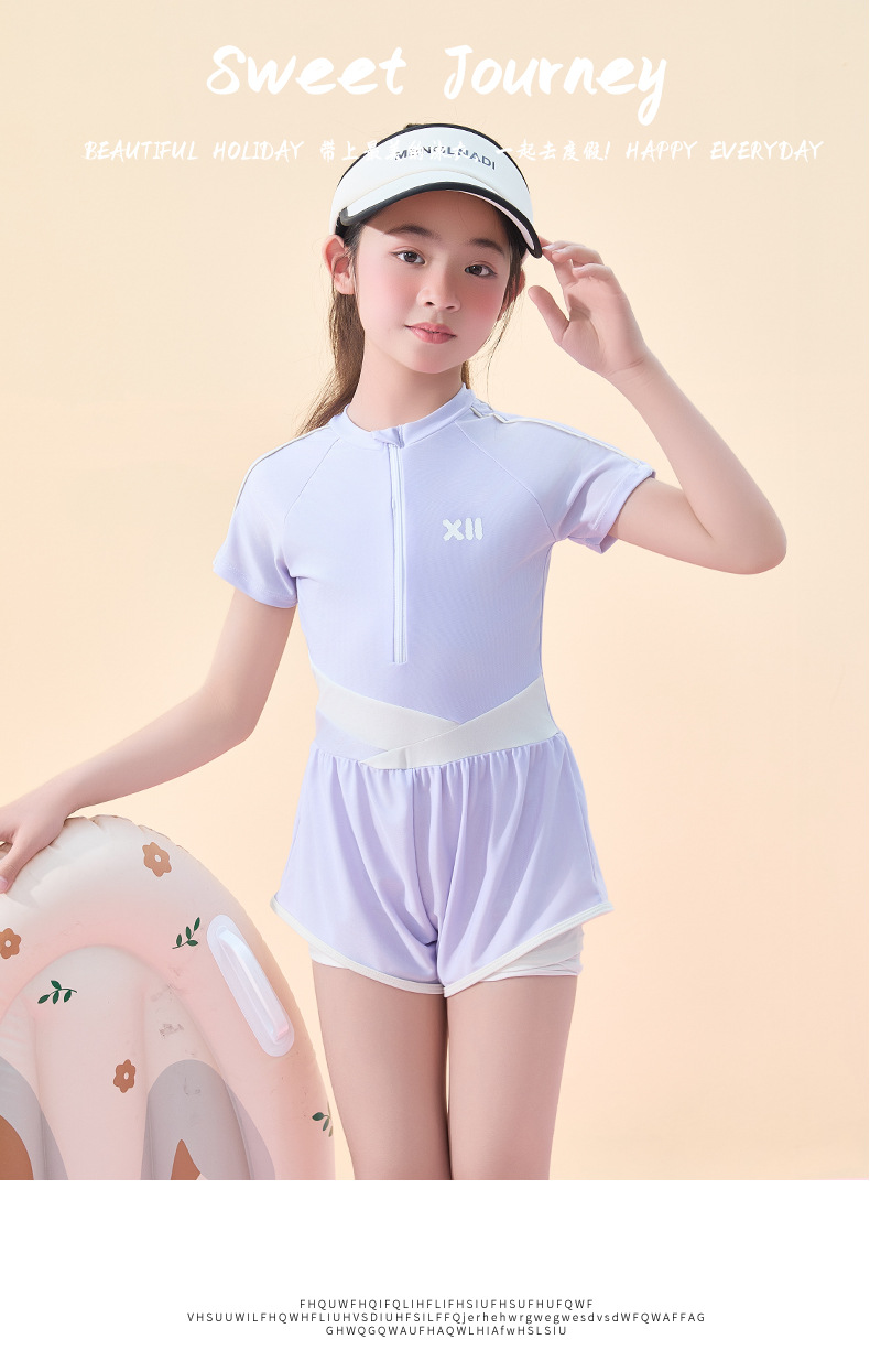 아동 수영복, 여아 스포츠 원피스, 중년 아동 한국식 신선한 폴리에스터 어린 소녀 휴가 온천 수영복 도매