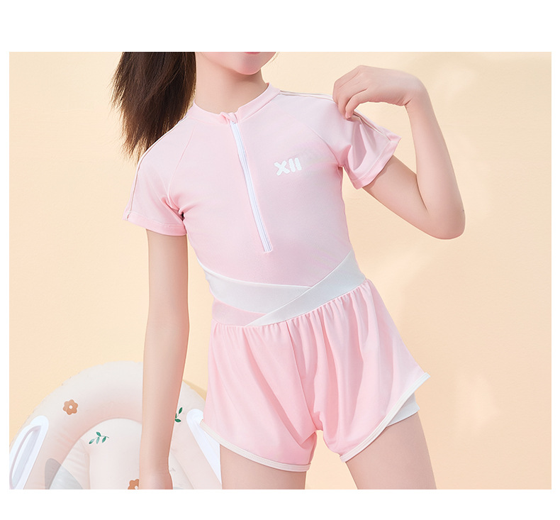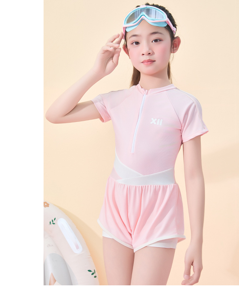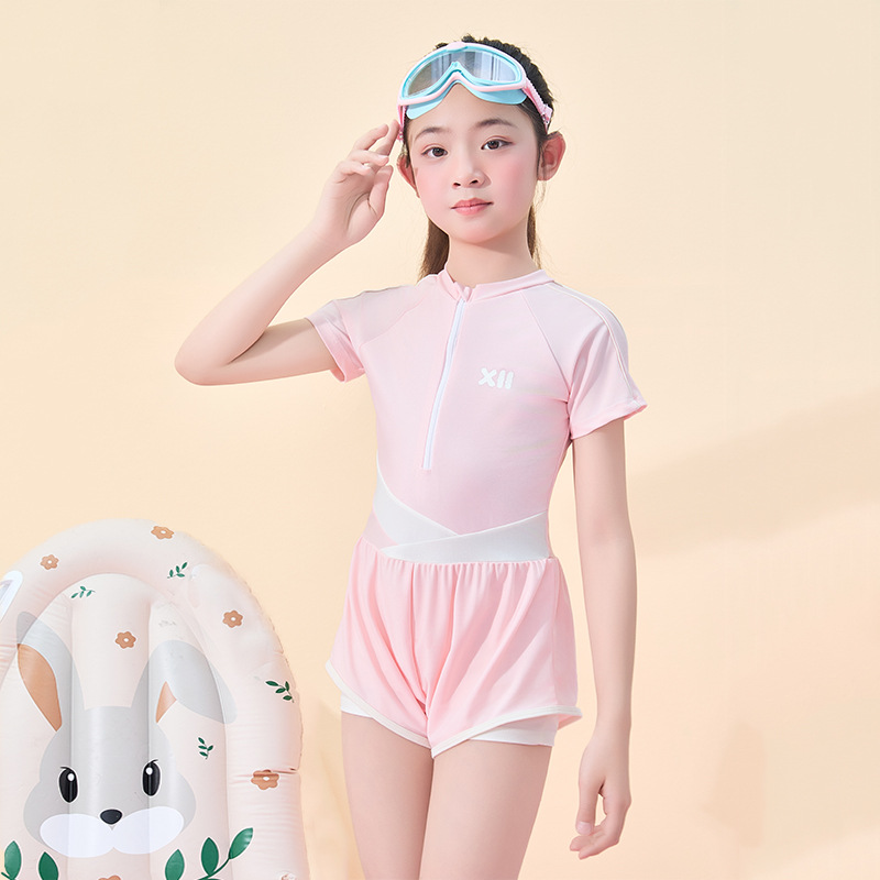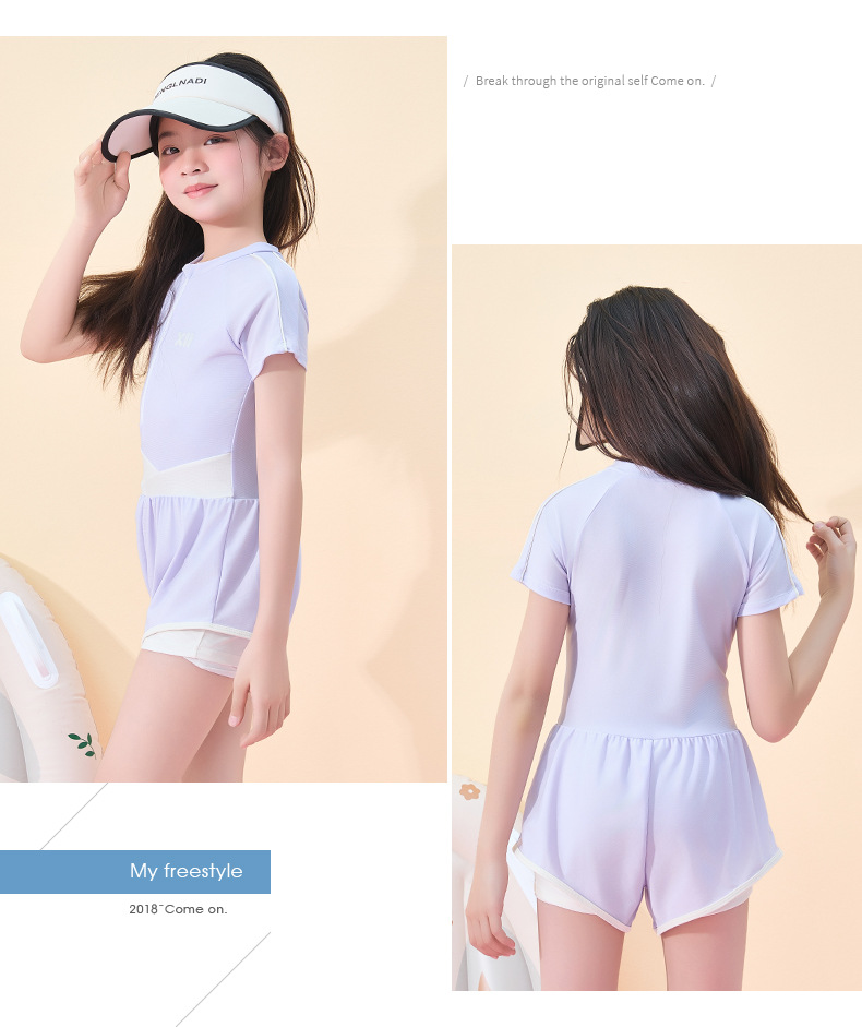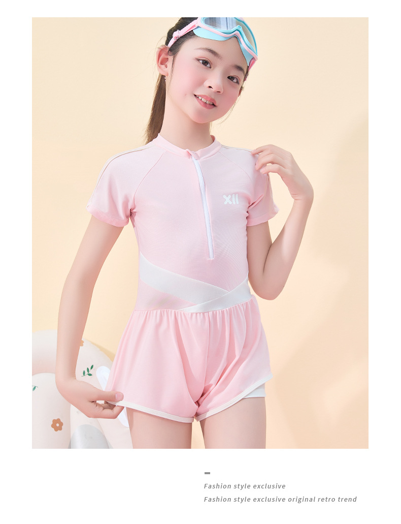아동 수영복, 여아 스포츠 원피스, 중년 아동 한국식 신선한 폴리에스터 어린 소녀 휴가 온천 수영복 도매