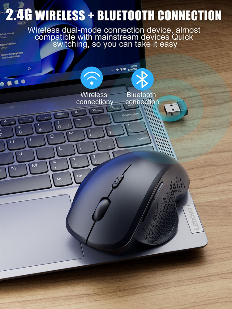 비타이 마우스 2.4G 무선 블루투스 듀얼 모드 충전식 무소음 마우스 사무용 노트북 액세서리 인체공학적 디자인
