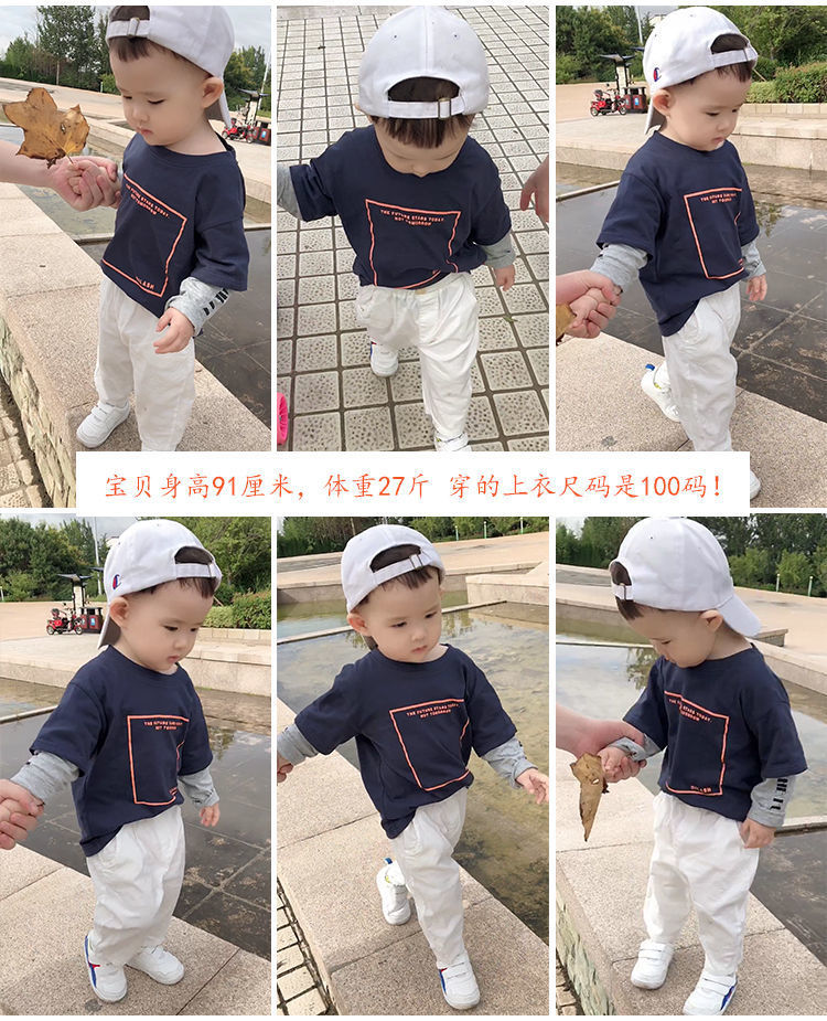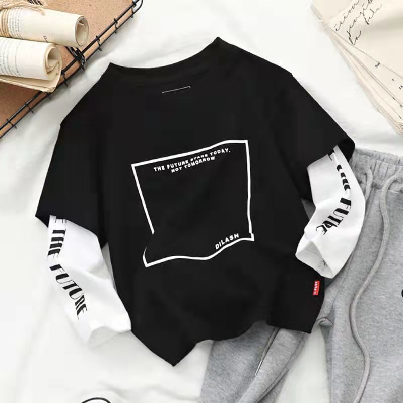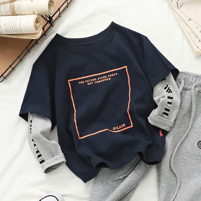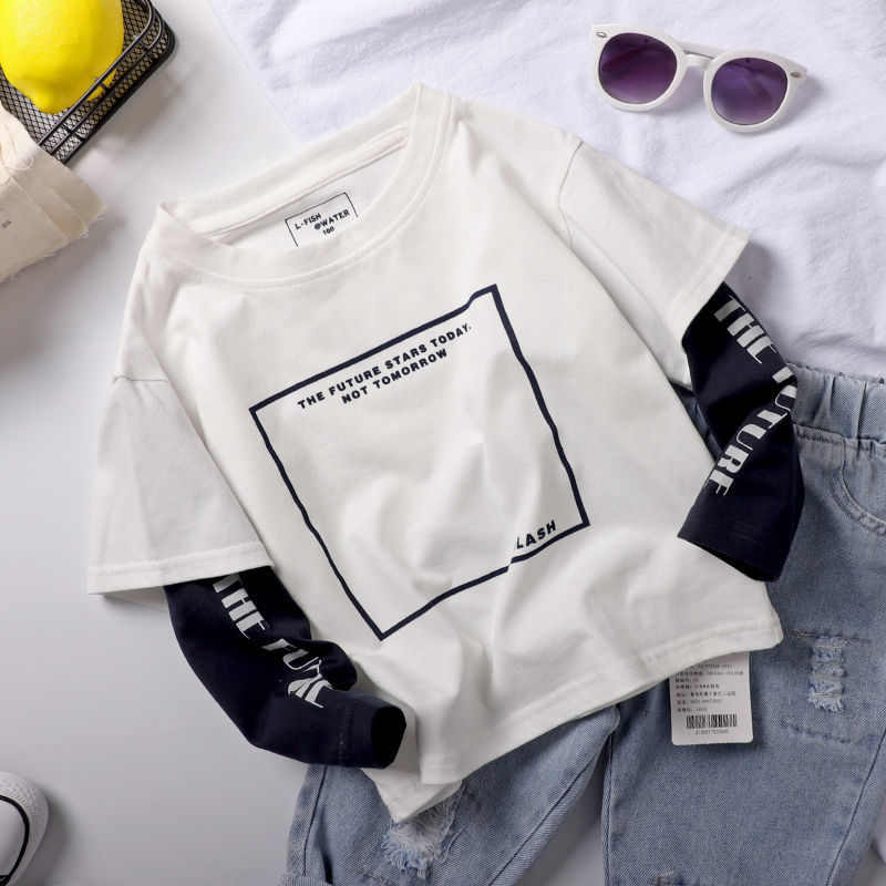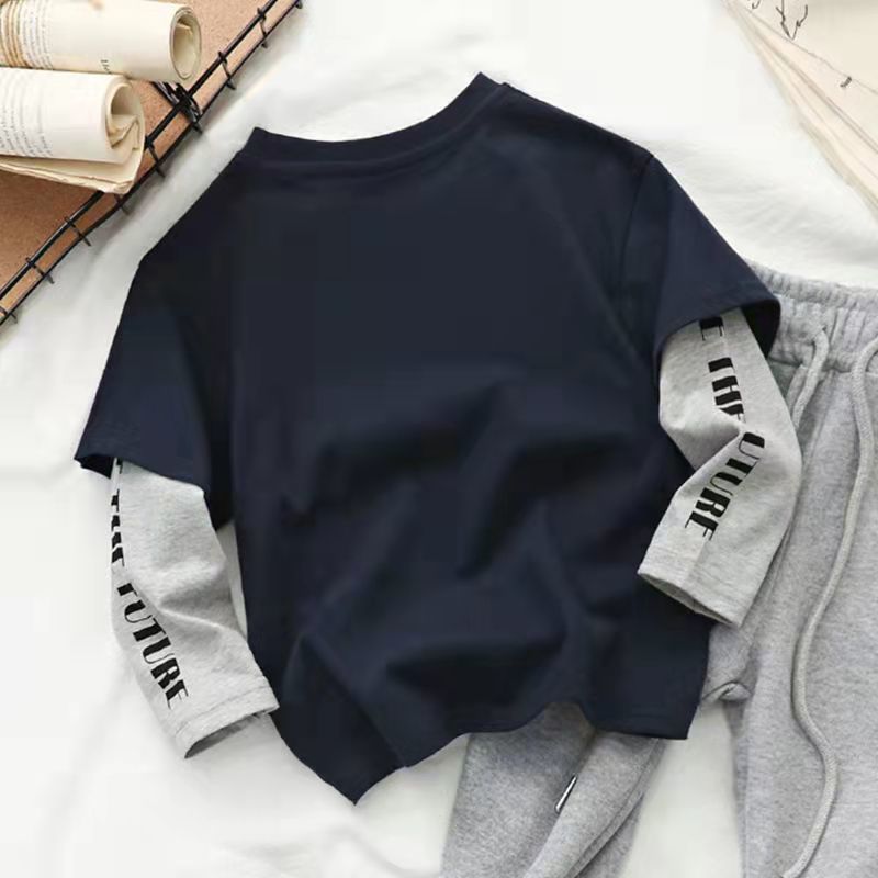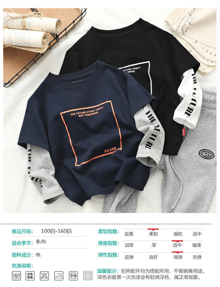 소년 가짜 투피스 티셔츠 2025 봄, 가을 새로운 스타일 아동용 긴팔 스타일 탑 소년 한국 스타일 티셔츠 유행스토어 가기