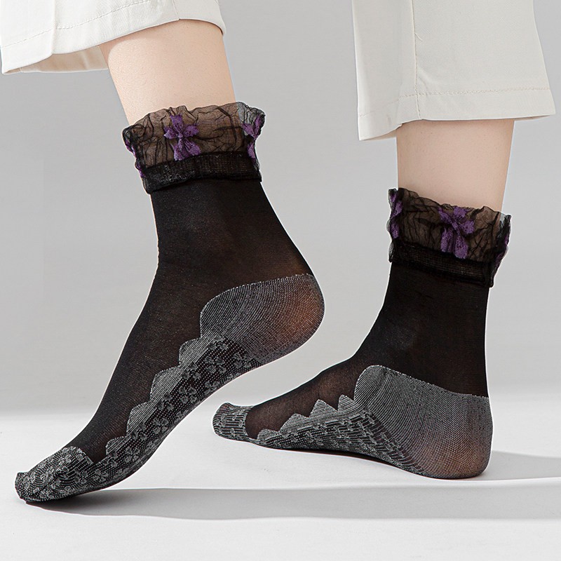 • 레이스 양말 - 블랙 퍼플 플라워