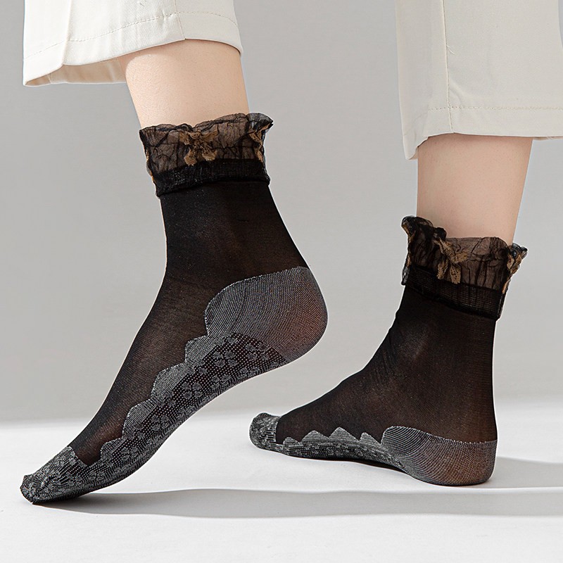 • 레이스 양말 - 블랙 커피 플라워