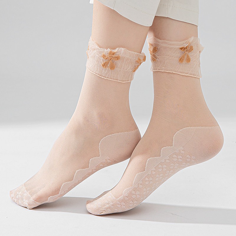 • 레이스 양말 - 스킨톤 커피 플라워