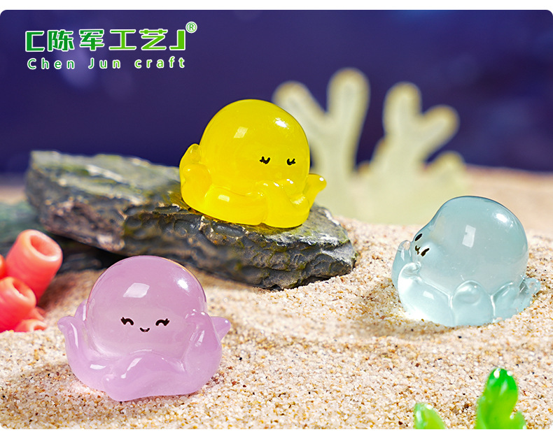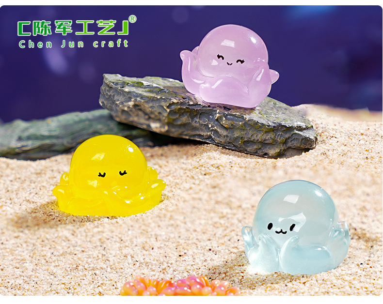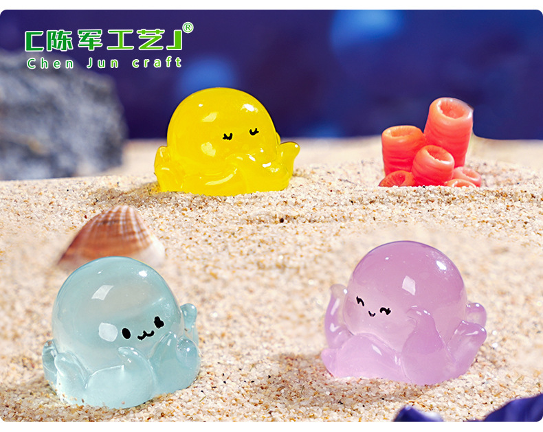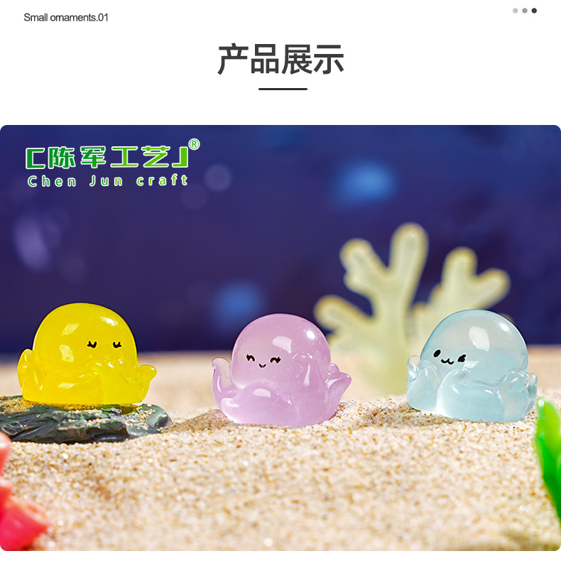 마이크로 풍경 귀여운 빛나는 문어 귀여운 곡물 인형 바다 물고기 탱크 조경 DIY 장식 액세서리 작은 장식품