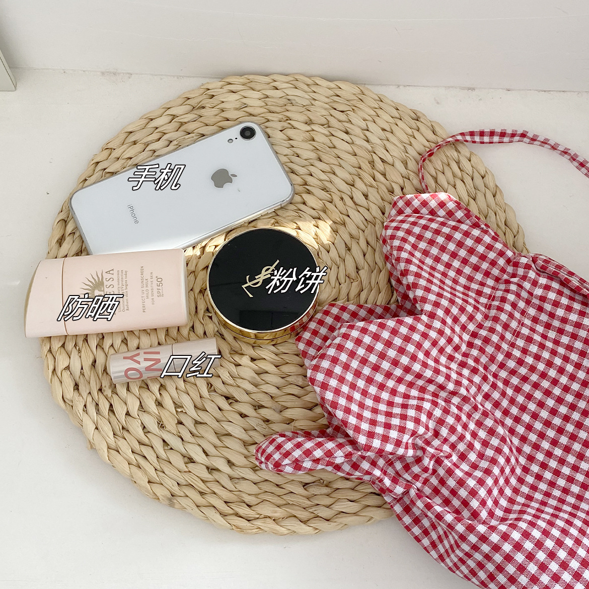 귀여운 크로스 바디 작은 꽃 가방 작은 신선한 휴대 전화 가방 간단한 운반 체크 무늬 워킹 백 통근 잡화 저장 헝겊 가방