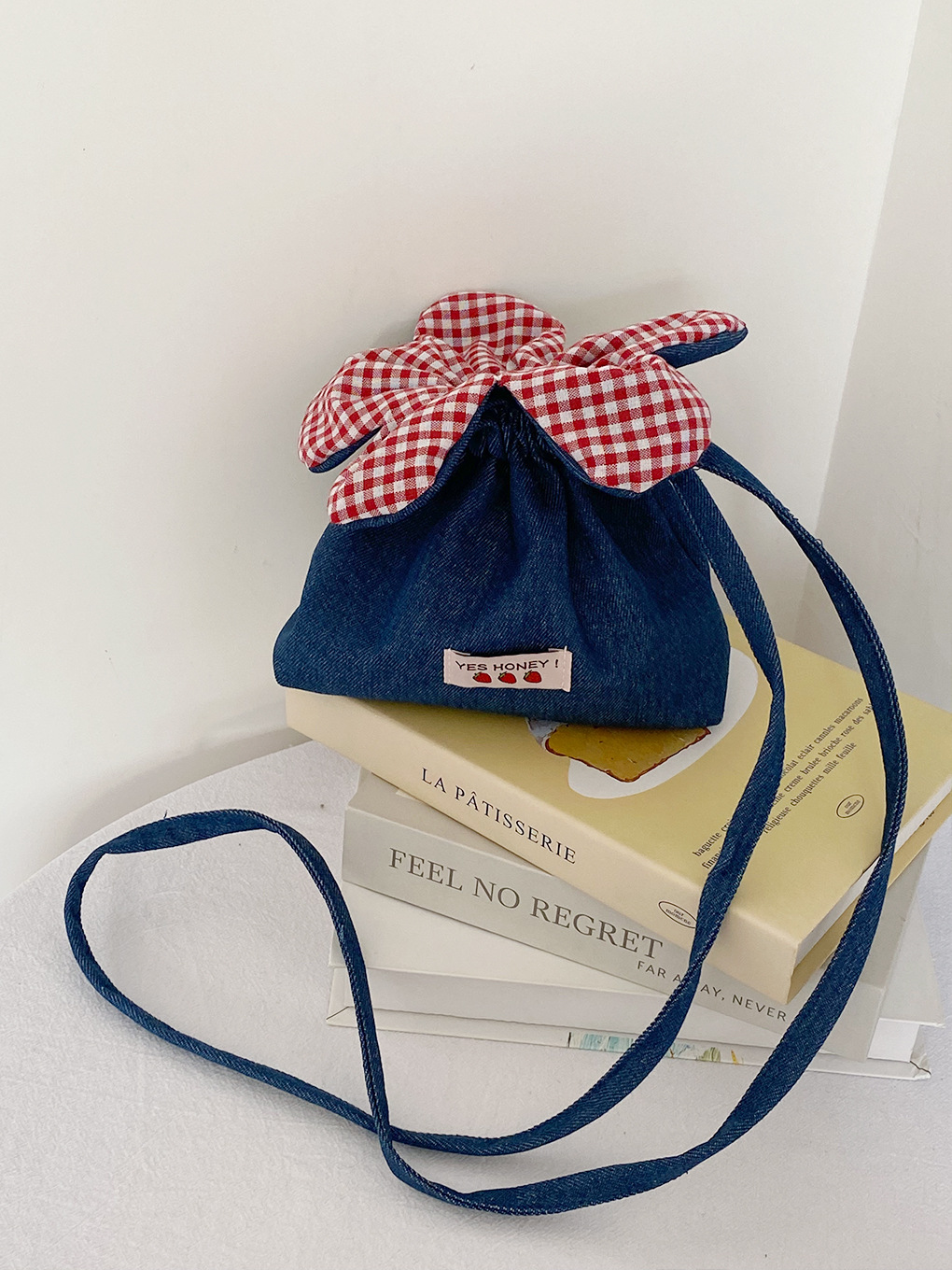 • 크로스바디 드로스트링 플라워 백 - 다크 블루 데님