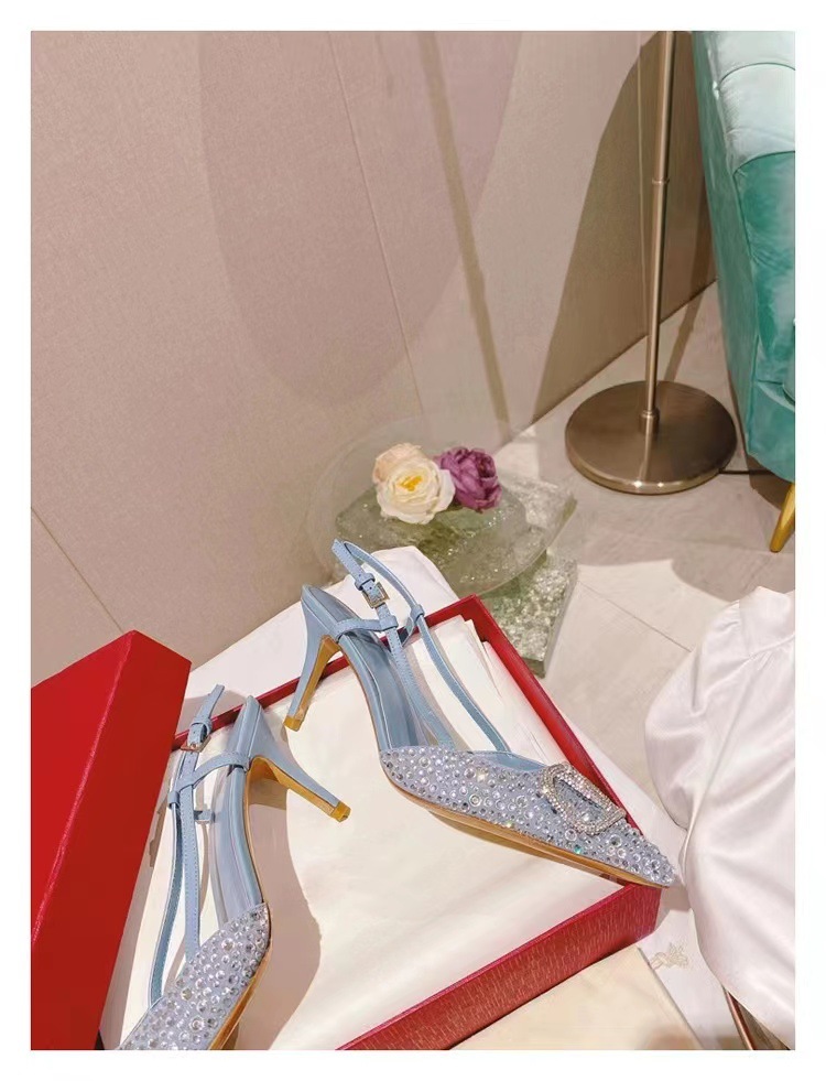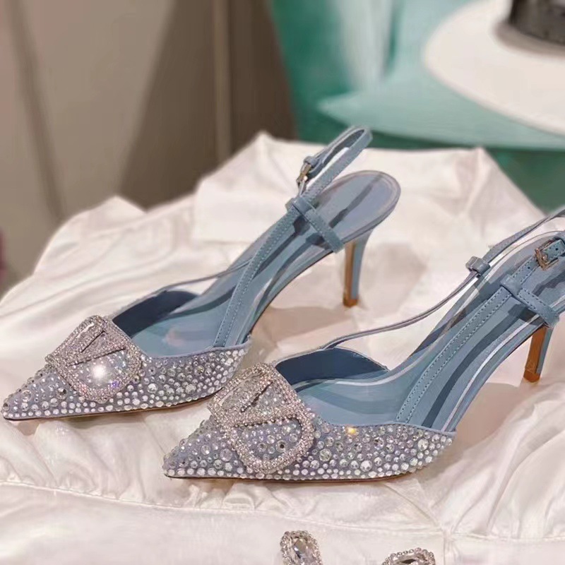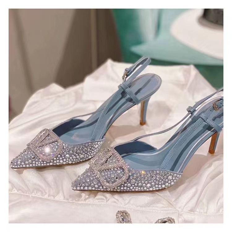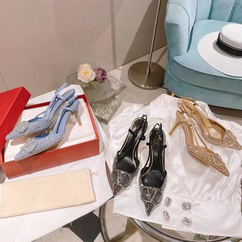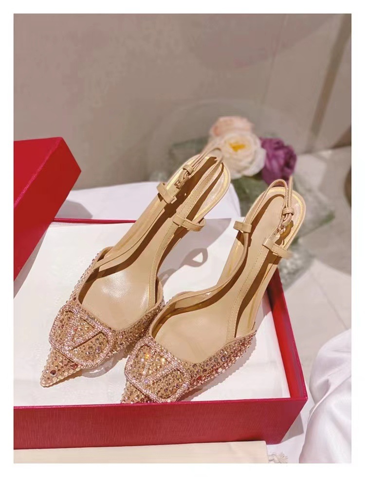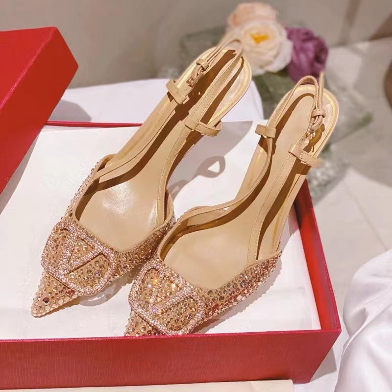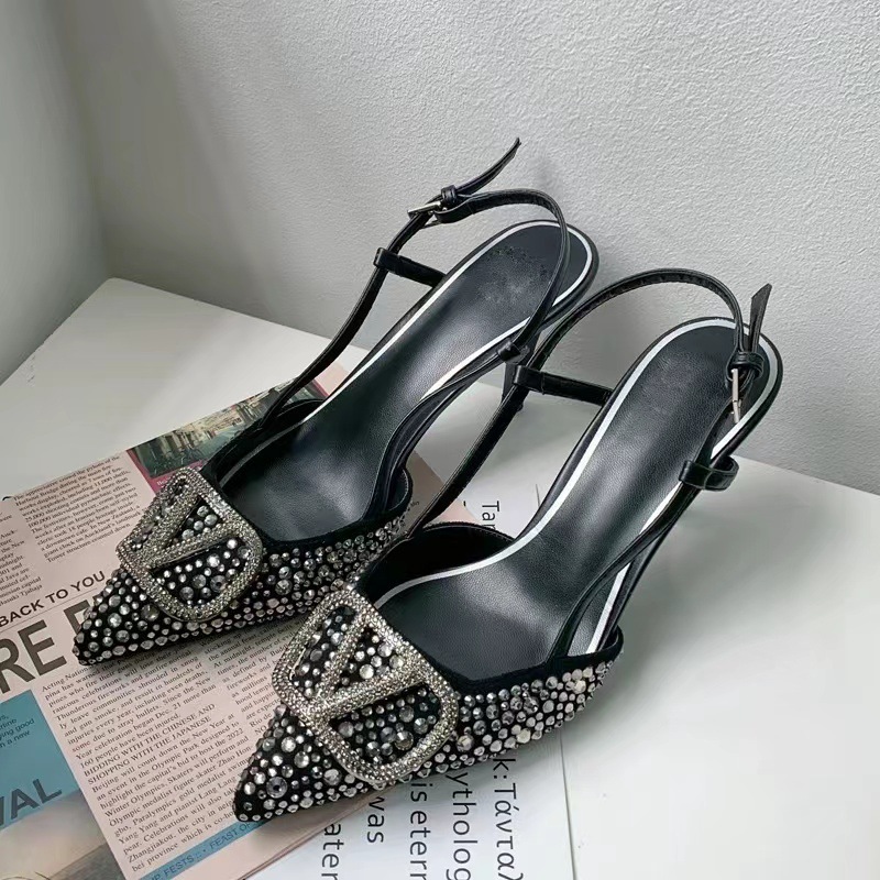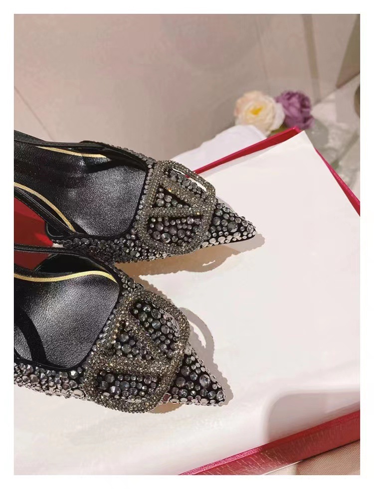 하이 버전 25 새로운 금속 V-버클 라인스톤 버클 버클-Baotou 샌들 여성용 스틸레토 힐 포인팅 힐스토어 가기