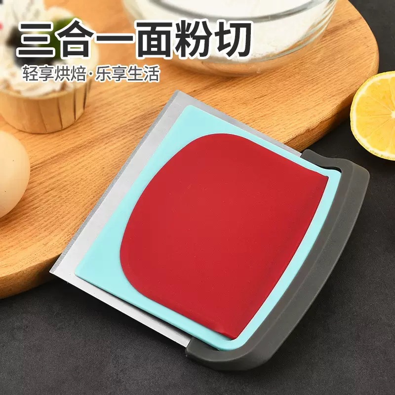 제조 업체 도매 새로운 3-in-1 반죽 칼 스테인레스 스틸 반죽 절단 밀가루 스크레이퍼 3 피스 베이킹 크림 스크레이퍼