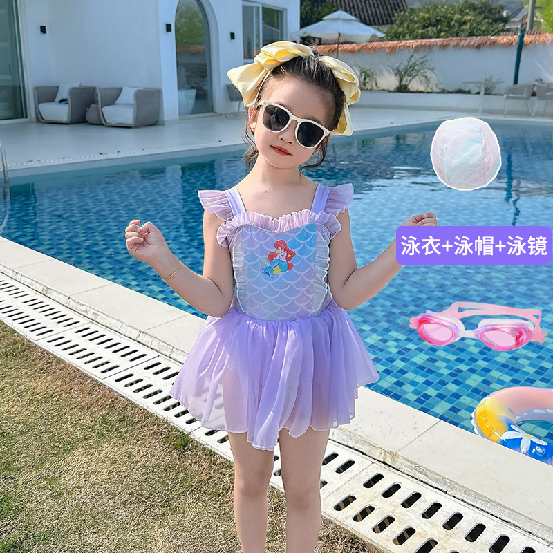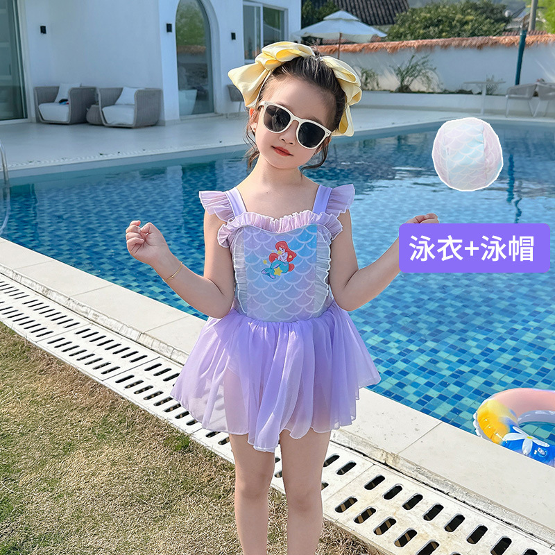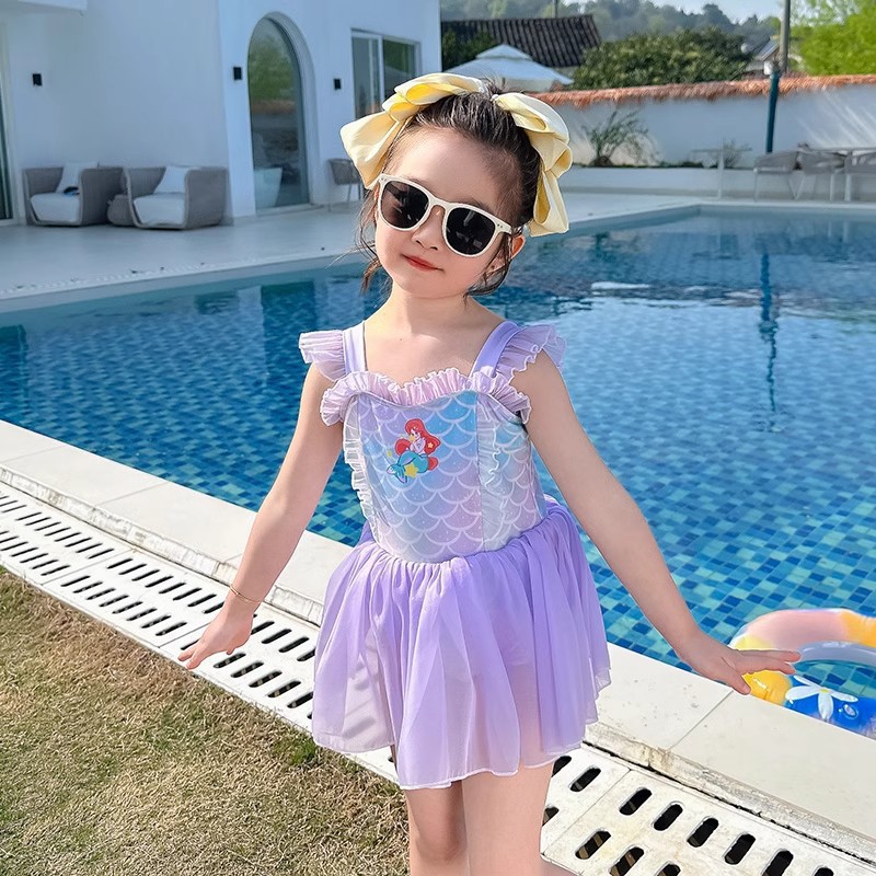 2026년 신상 아동 수영복 여아 귀여운 만화 인어공주 스타일 원피스 수영복