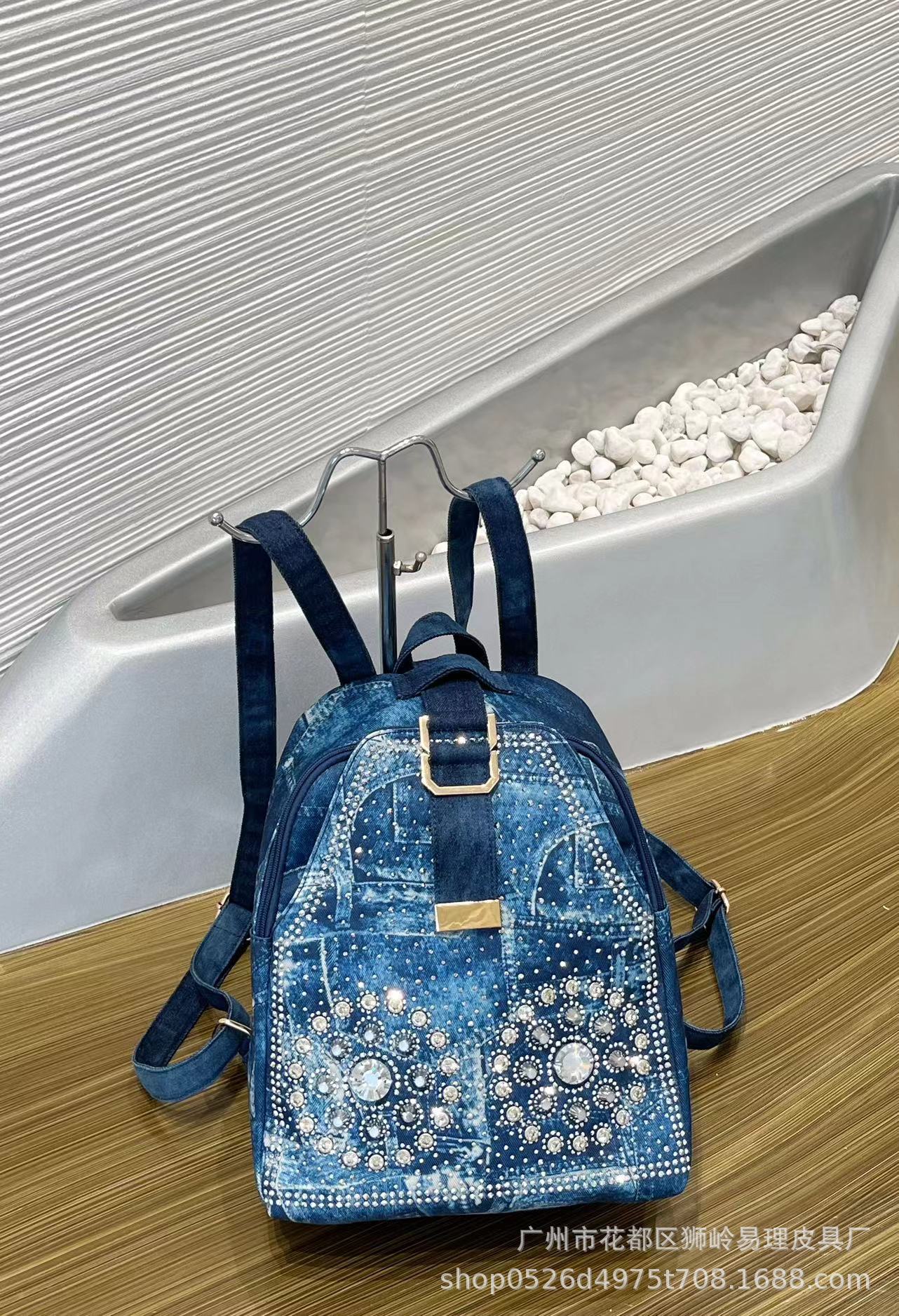 Yili Shiling 2025 새로운 대외 무역 여성용 가방 다이아몬드 라인스톤 헤비 데님 가방 휴대용 어깨 크로스 바디 백스토어 가기