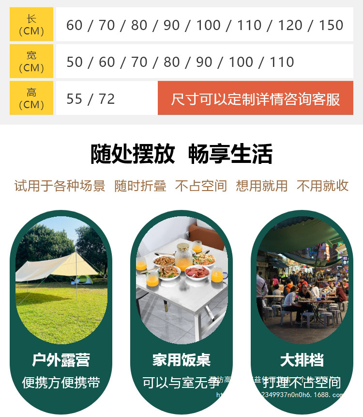 야시장 스테인레스 스틸 접이식 테이블 휴대용 바베큐 테이블 야외 스톨 상업 야시장 간단한 식탁 작은 광장 테이블스토어 가기