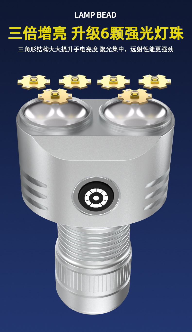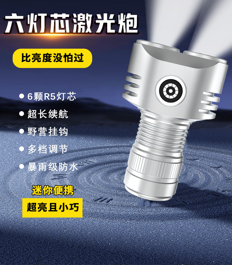 새로운 LED 6 눈 강한 빛 미니 손전등 알루미늄 합금 자기 휴대용 작업 조명 후크 펜 클립 야외 조명