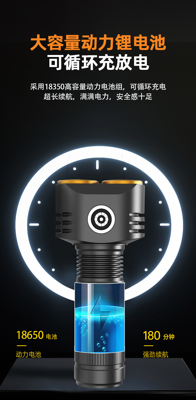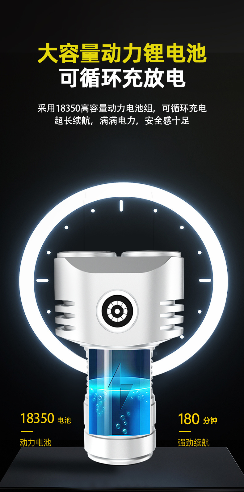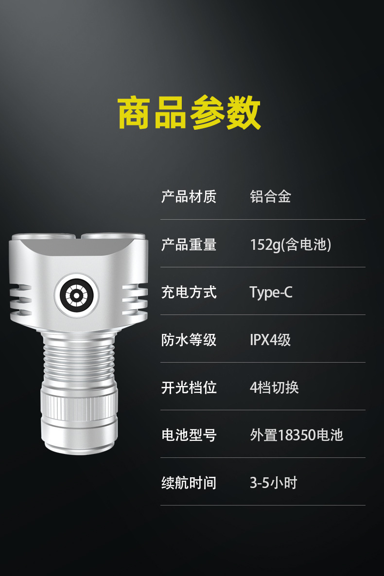 • SD228 손전등 실버 + 1 18350 리튬 배터리 + 충전 케이블 + 컬러 박스