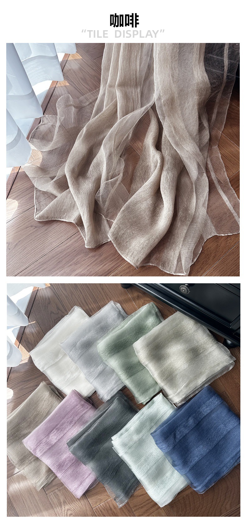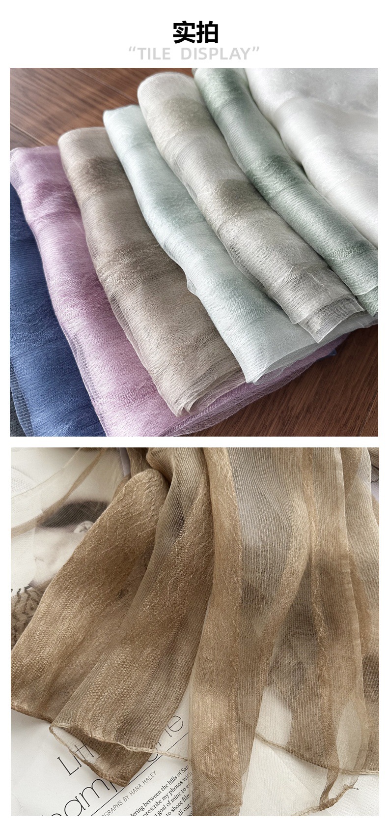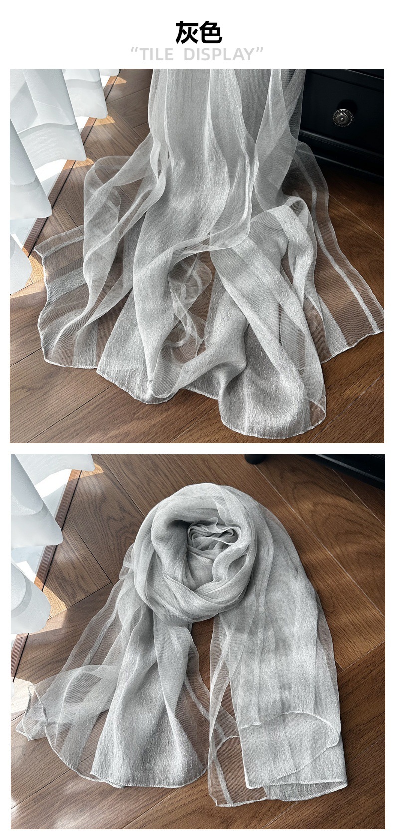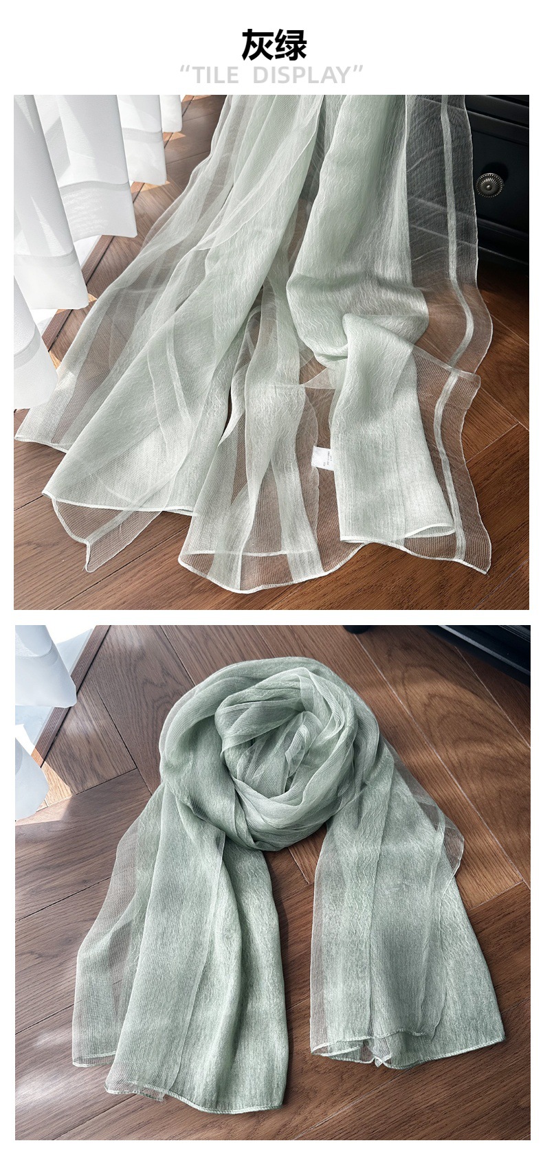 재고 국경 여름 실크 스카프 여성의 선 스크린 단색 고급 감각 뽕나무 실크 스카프 물 파문 긴 목도리스토어 가기