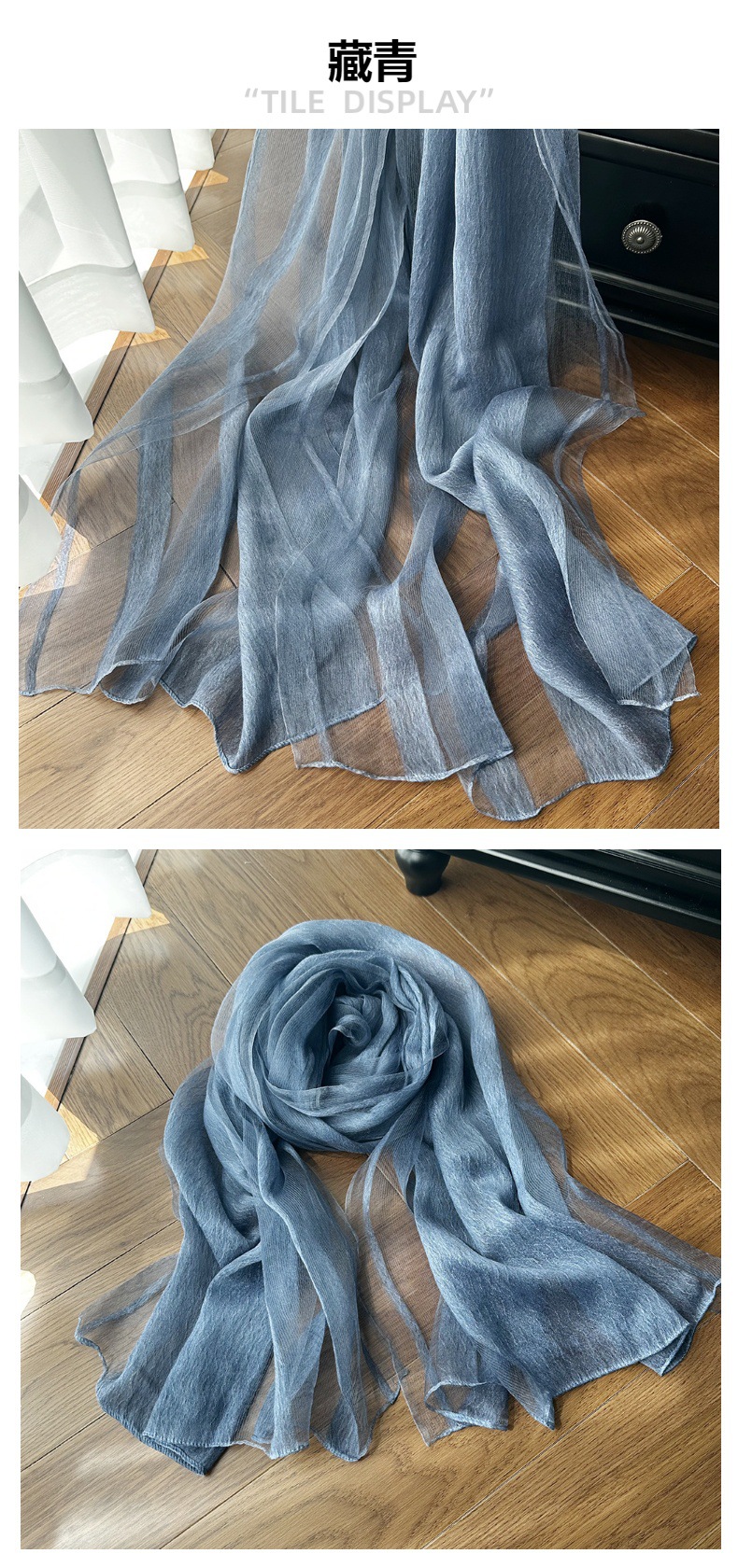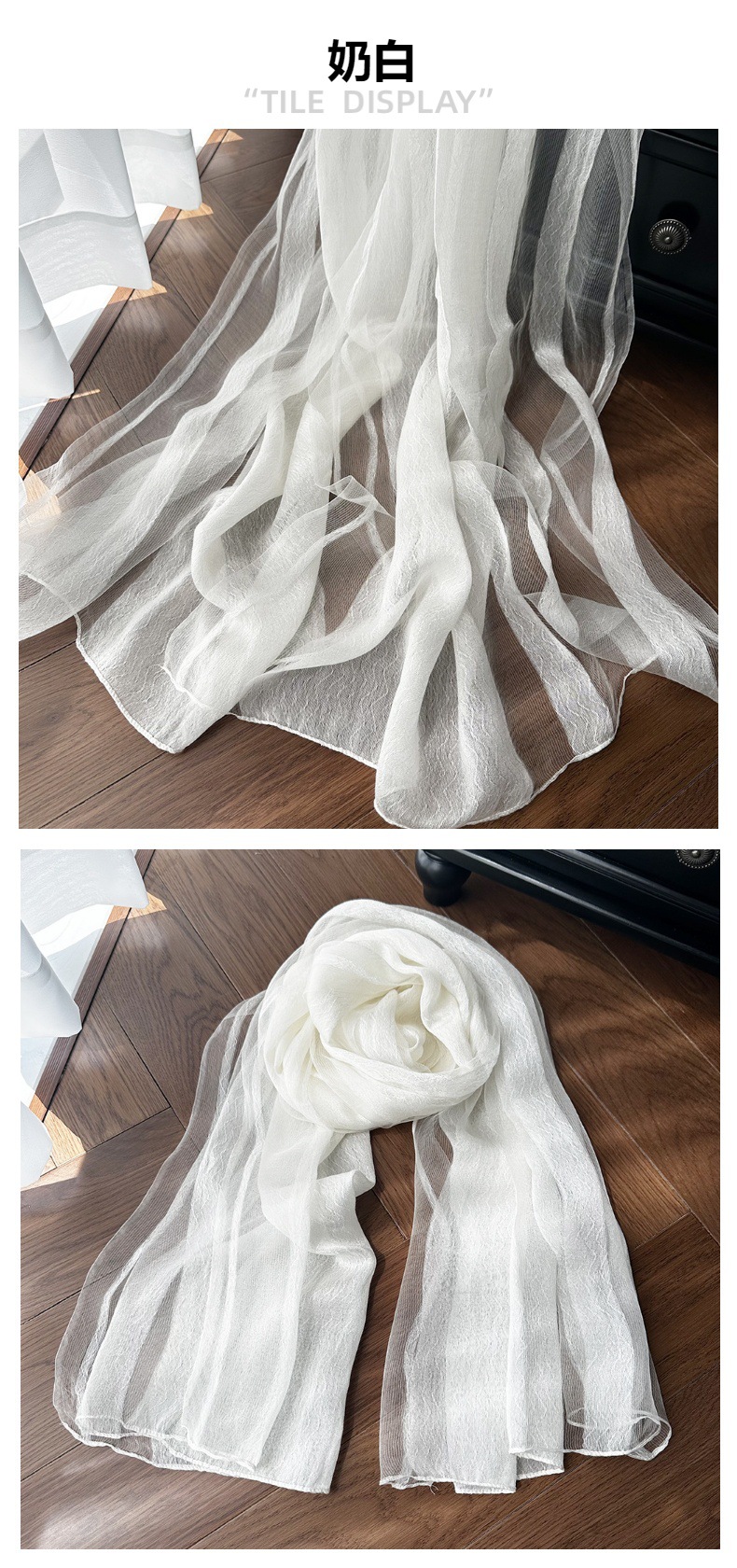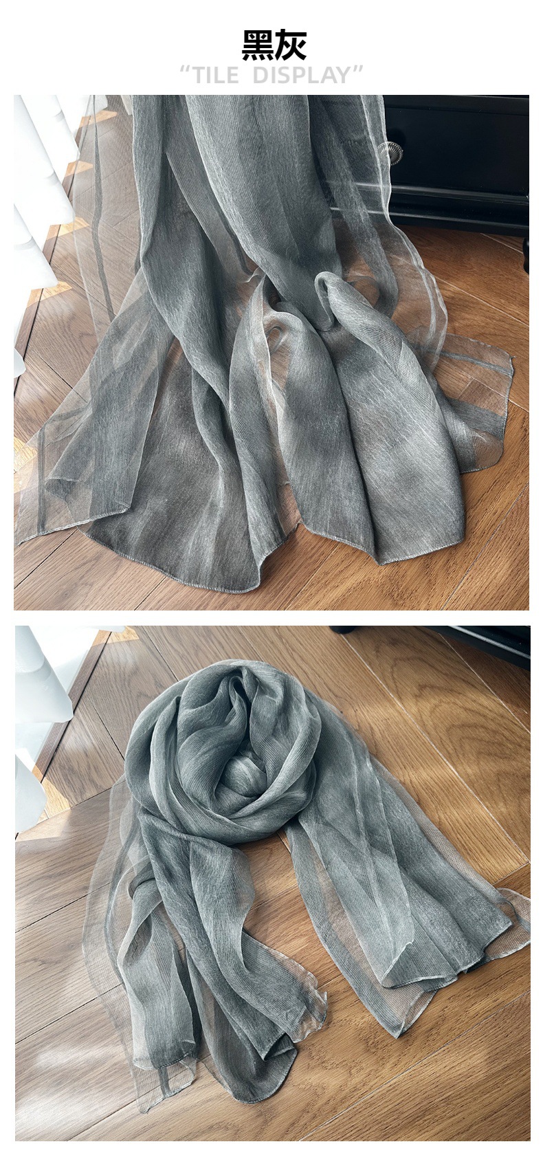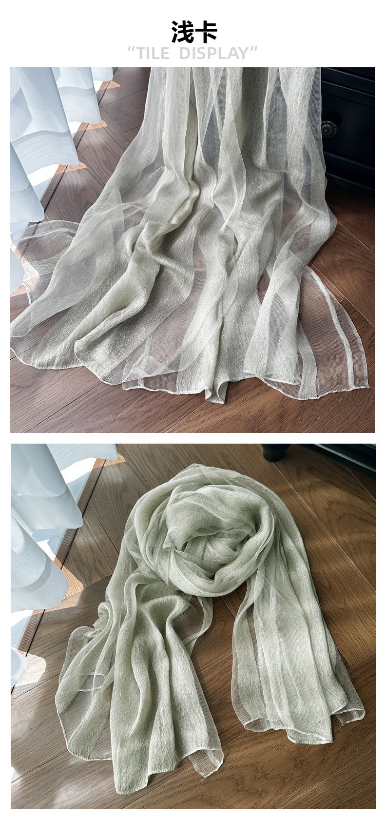 재고 국경 여름 실크 스카프 여성의 선 스크린 단색 고급 감각 뽕나무 실크 스카프 물 파문 긴 목도리스토어 가기