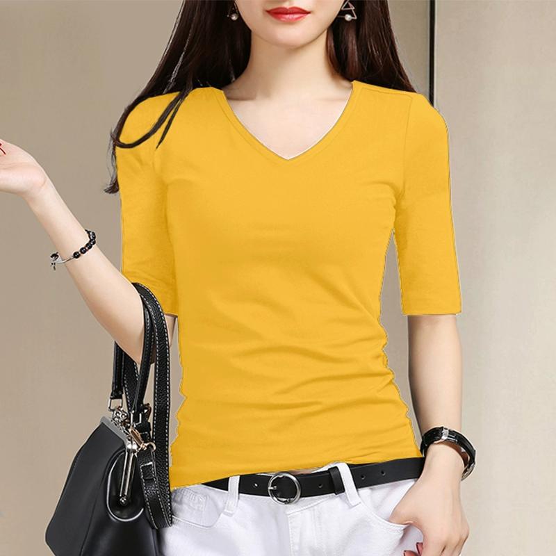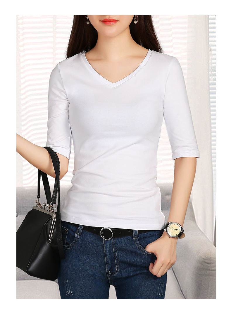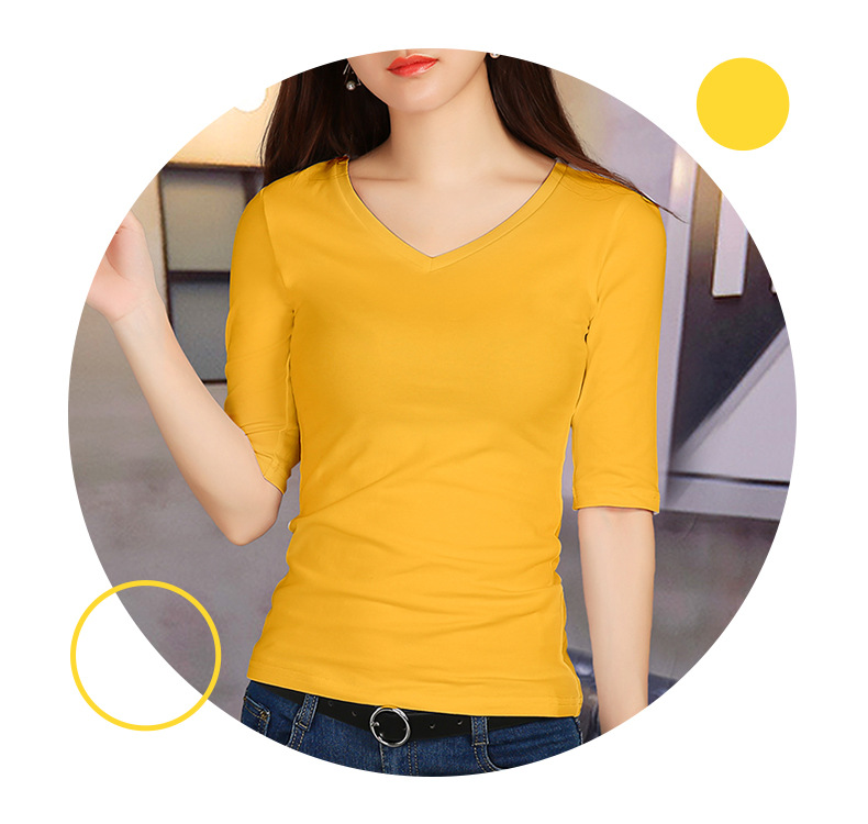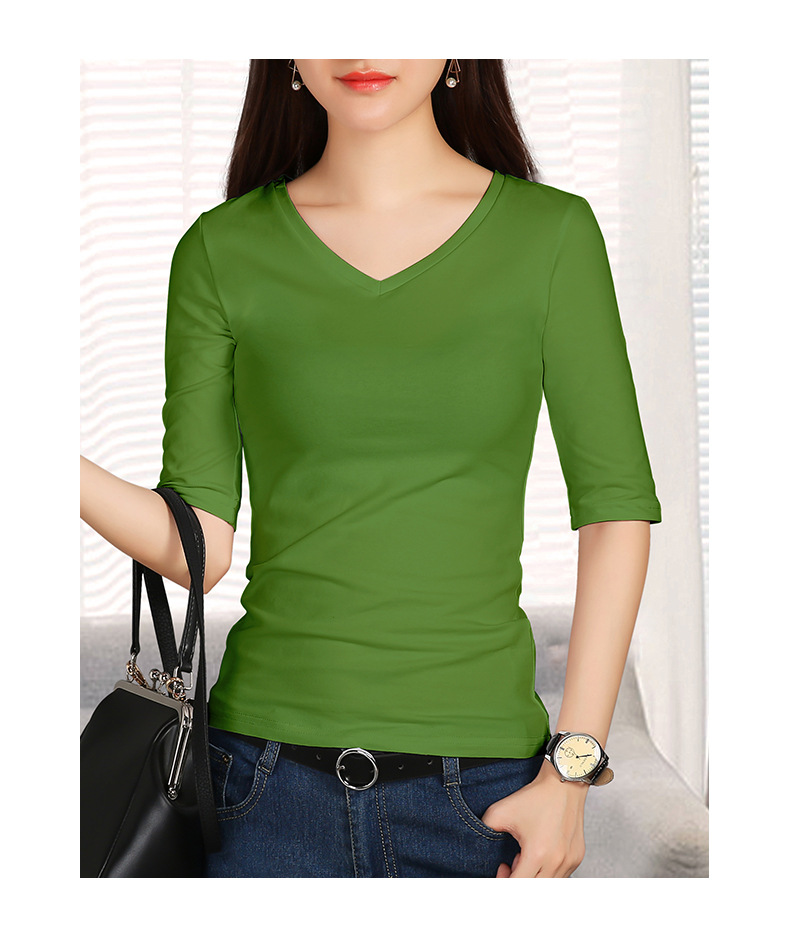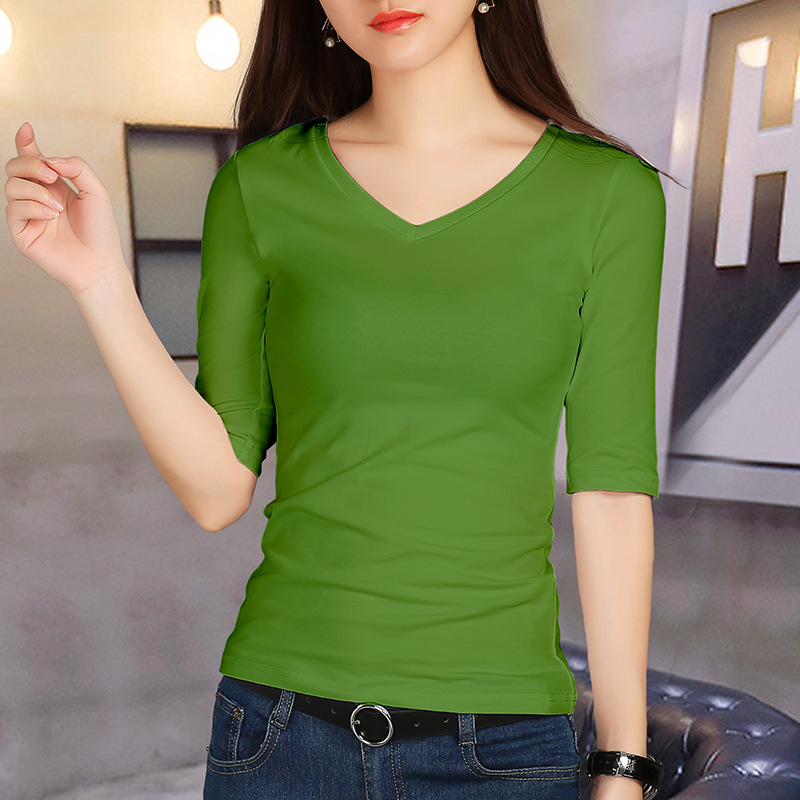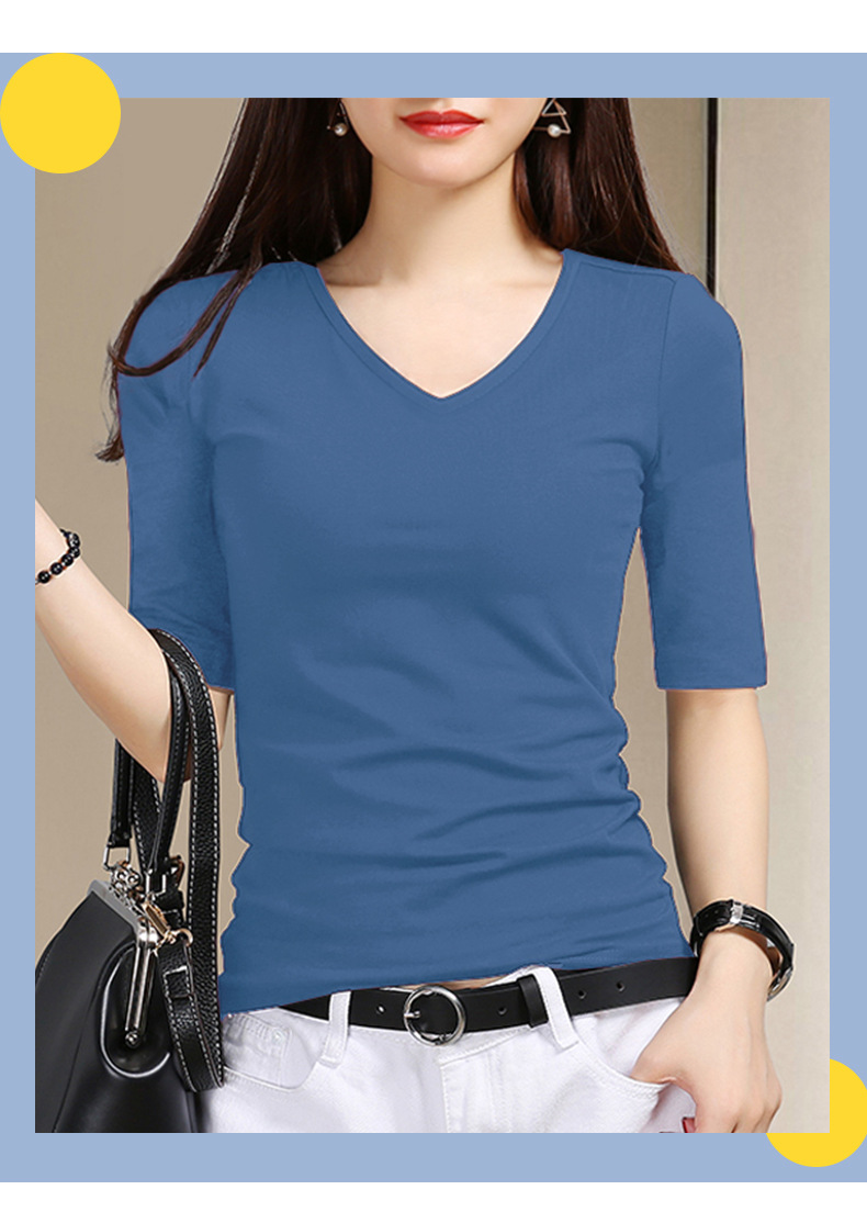 여성용 스모크 그레이 미드 슬리브 티셔츠 2025 봄과 가을을위한 새로운 솔리드 컬러 5부 소매 v 넥 탑 슬림 블랙 바닥 셔츠스토어 가기