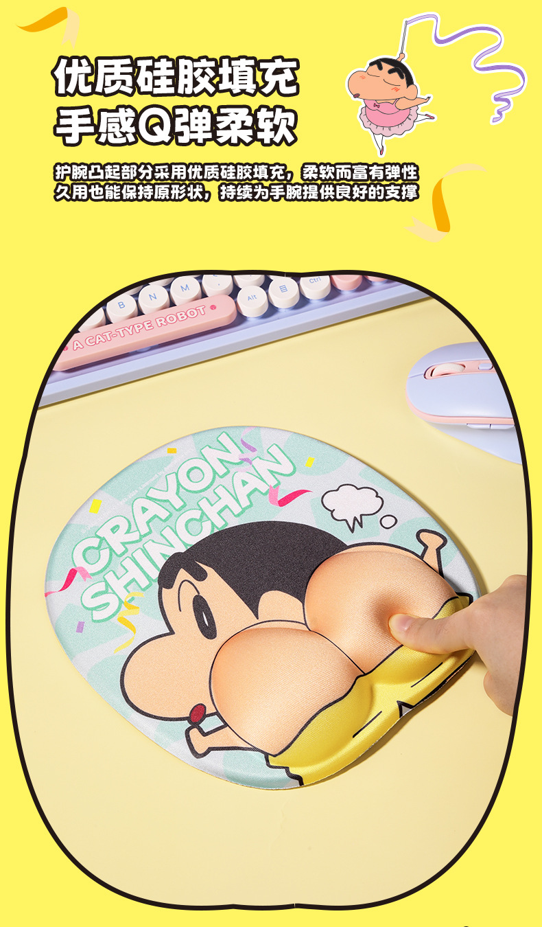 크레용 신짱 실리콘 손목 마우스 패드 만화 귀여운 오피스 게임 손목 패드 3차원 두꺼운 미끄럼 방지 테이블 매트