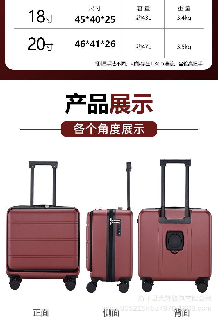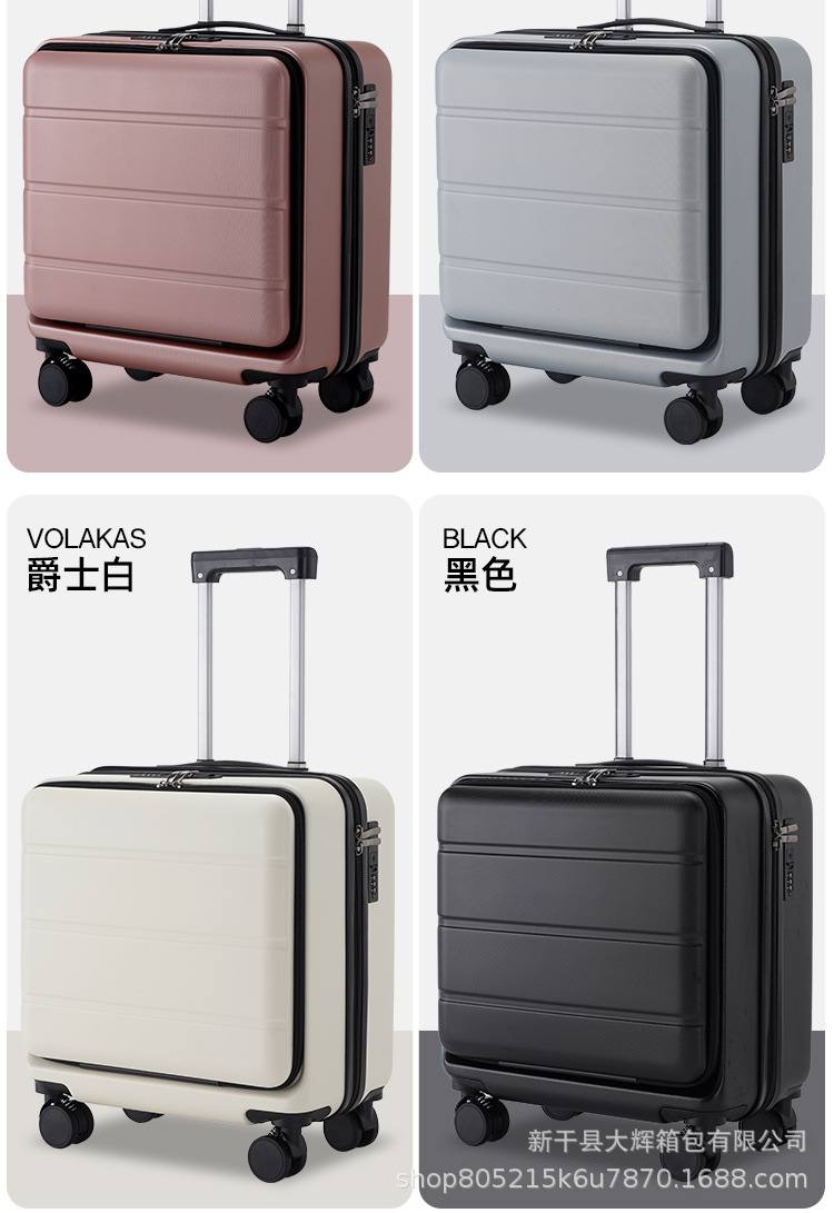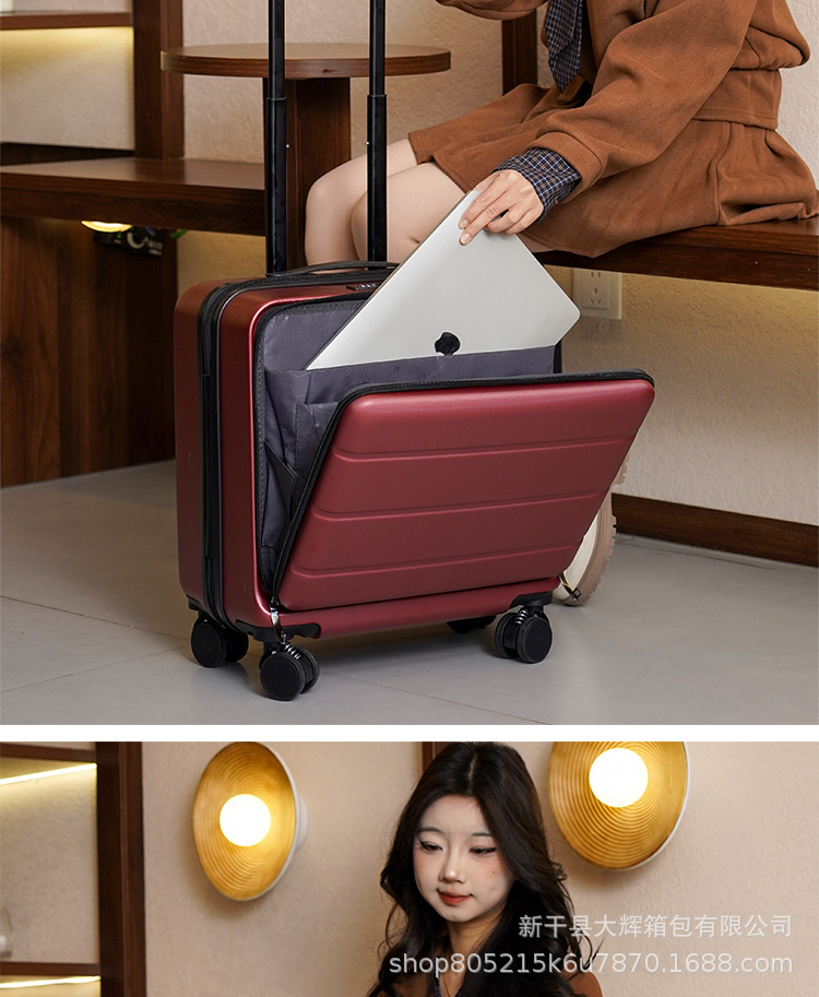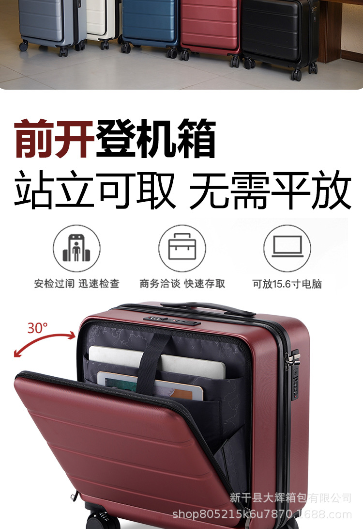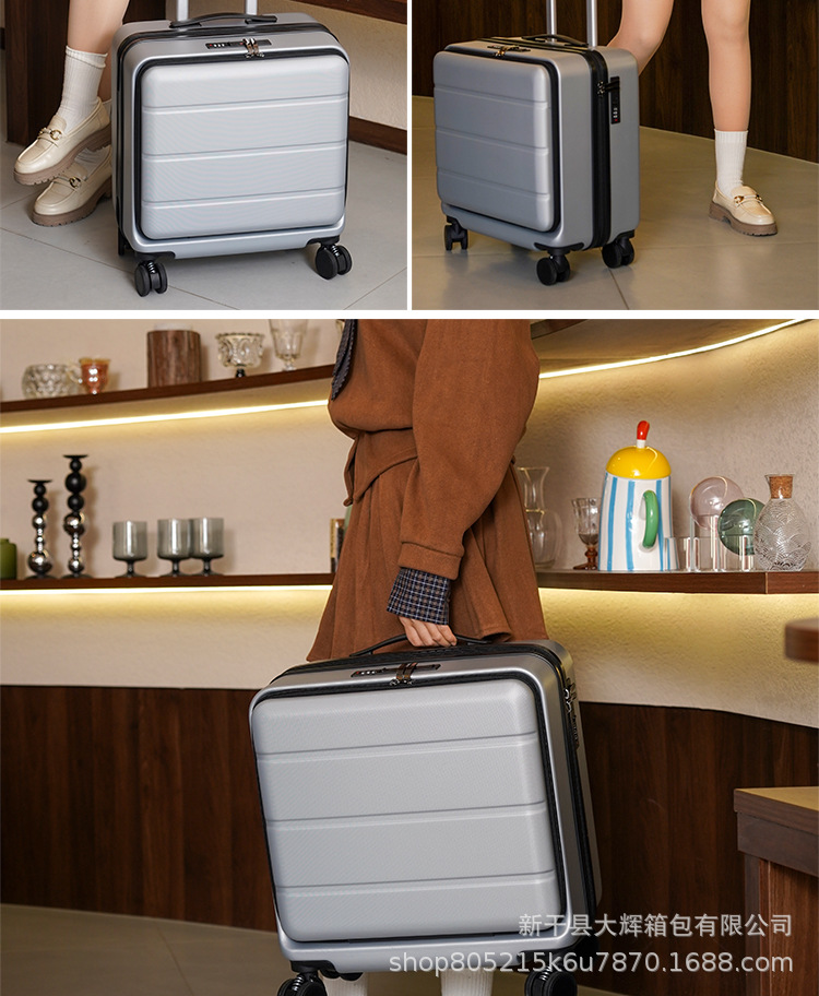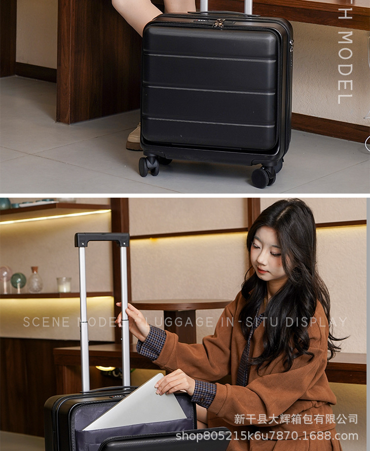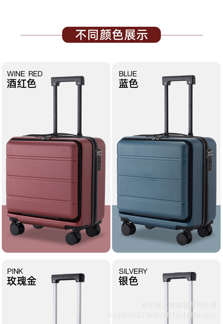 탑승 가능 여행가방 18inch 여행가방 전면 개방형 트롤리 가방 남성용 비밀번호 상자 범용 휠 충격 흡수 브레이크