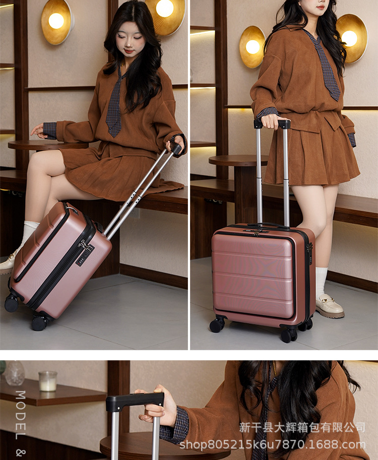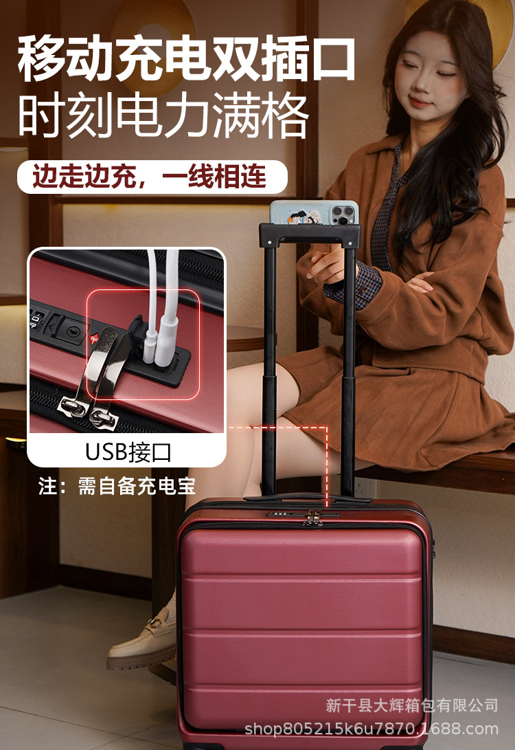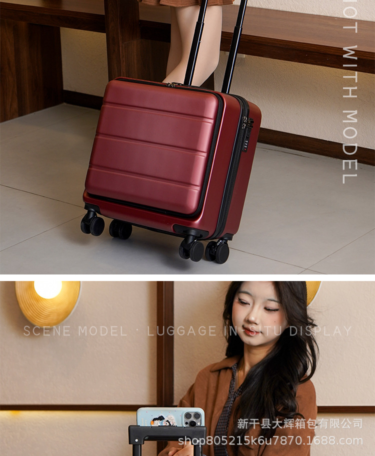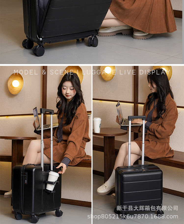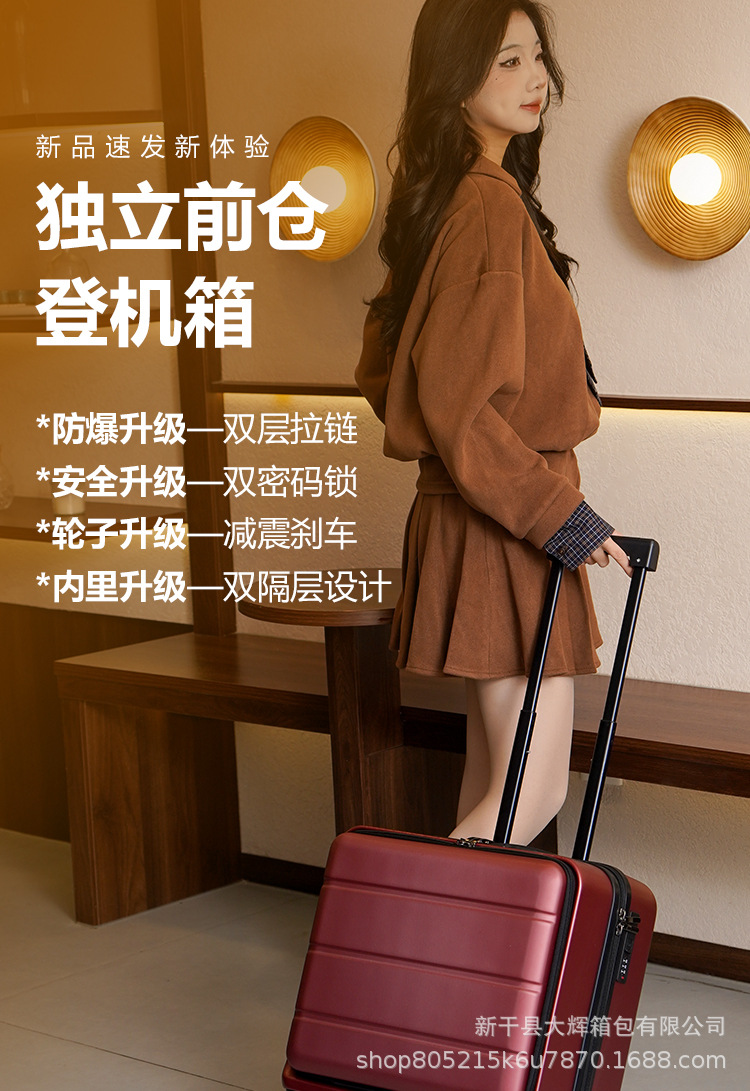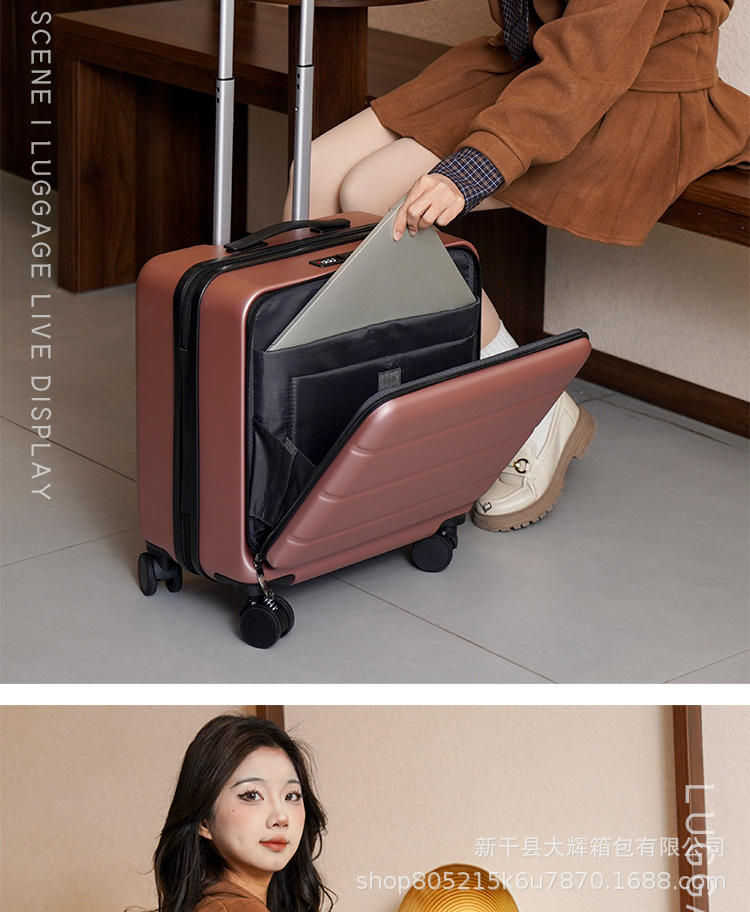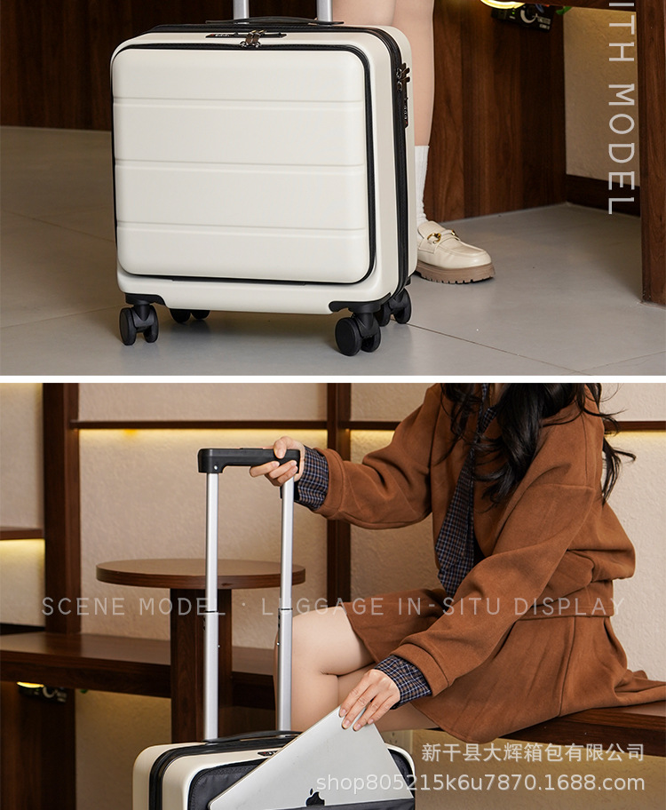 탑승 가능 여행가방 18inch 여행가방 전면 개방형 트롤리 가방 남성용 비밀번호 상자 범용 휠 충격 흡수 브레이크
