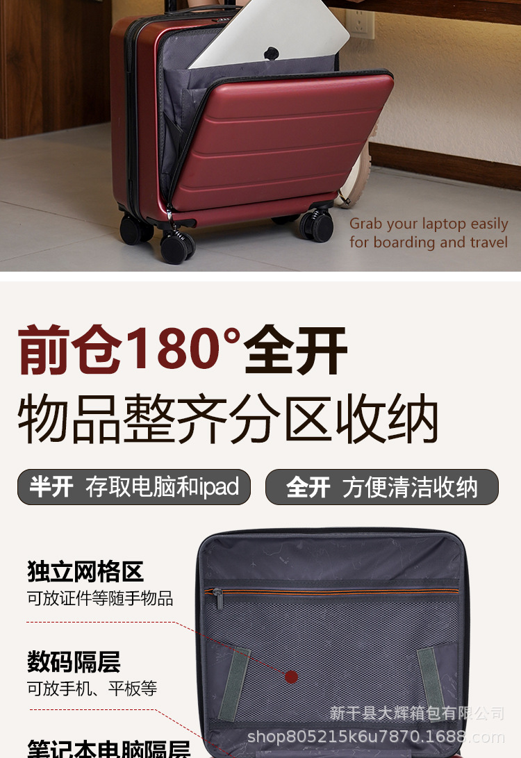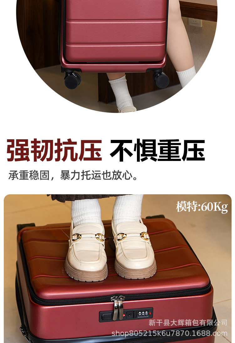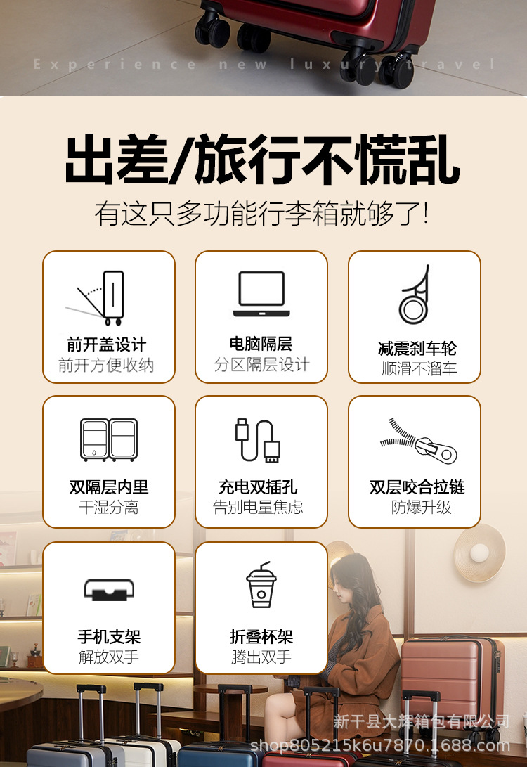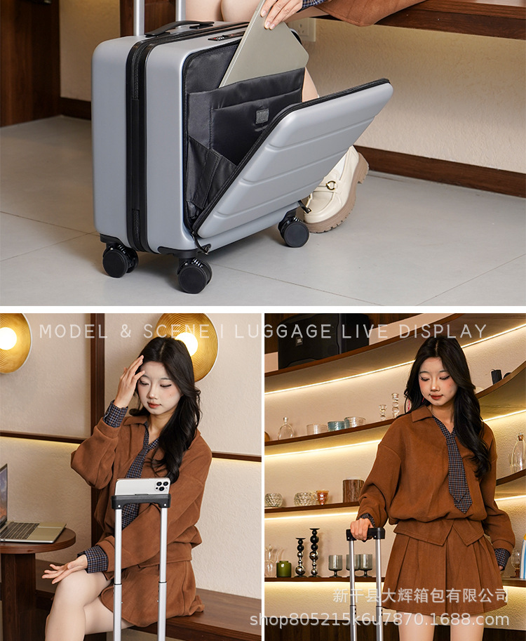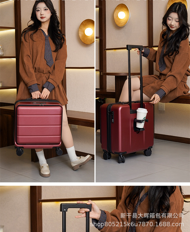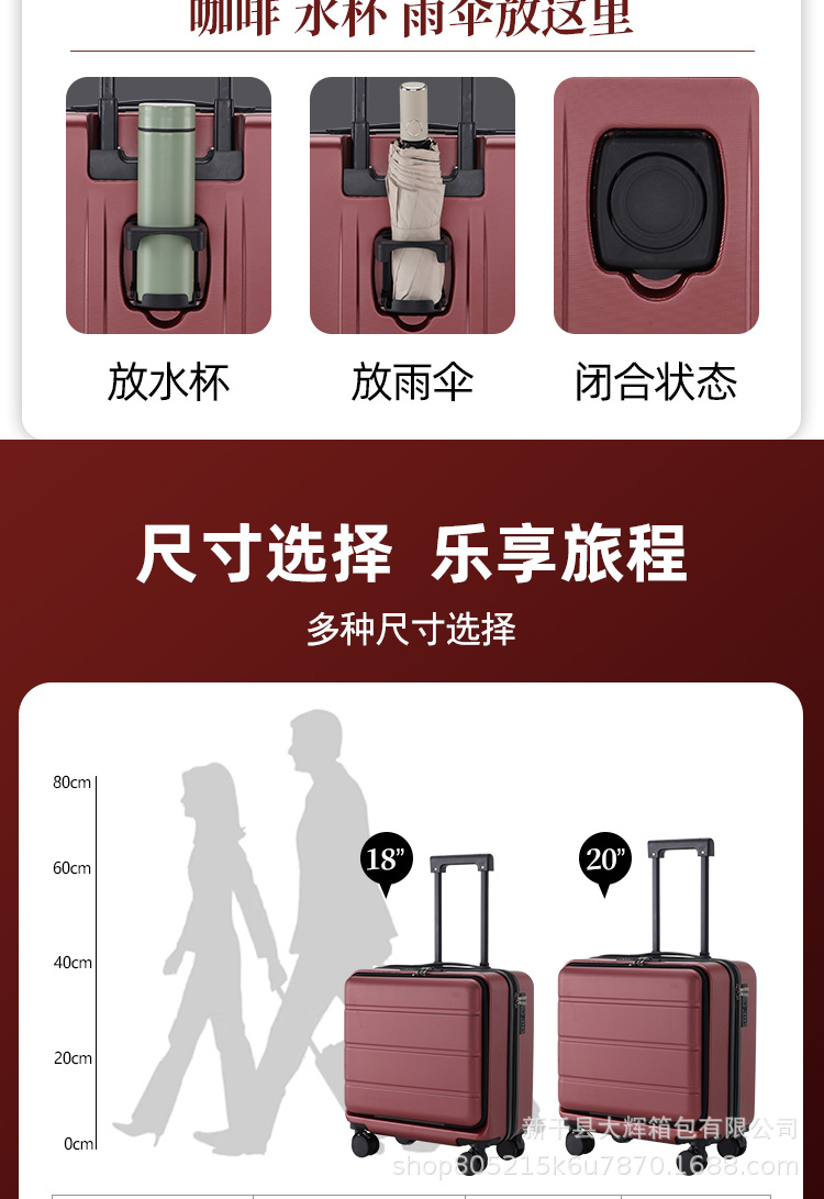 탑승 가능 여행가방 18inch 여행가방 전면 개방형 트롤리 가방 남성용 비밀번호 상자 범용 휠 충격 흡수 브레이크