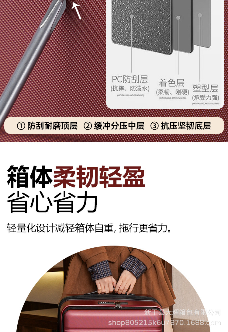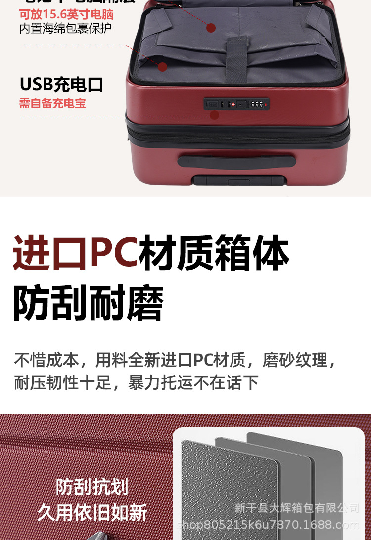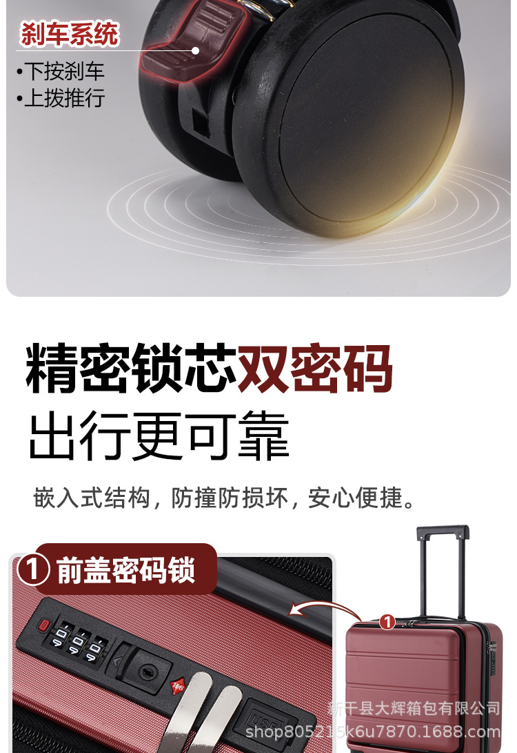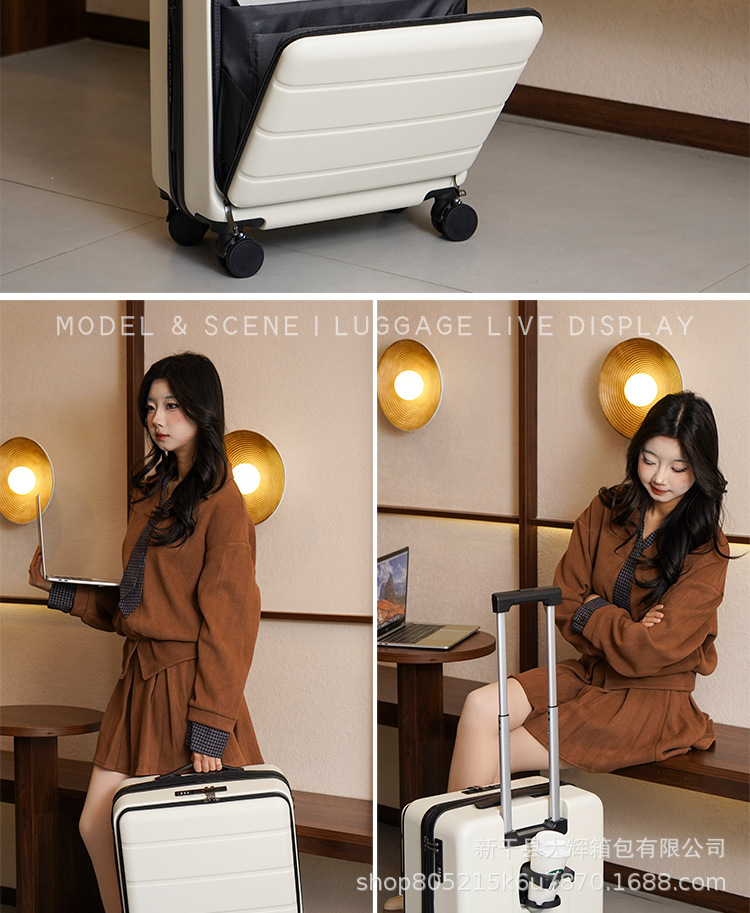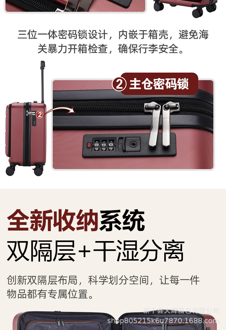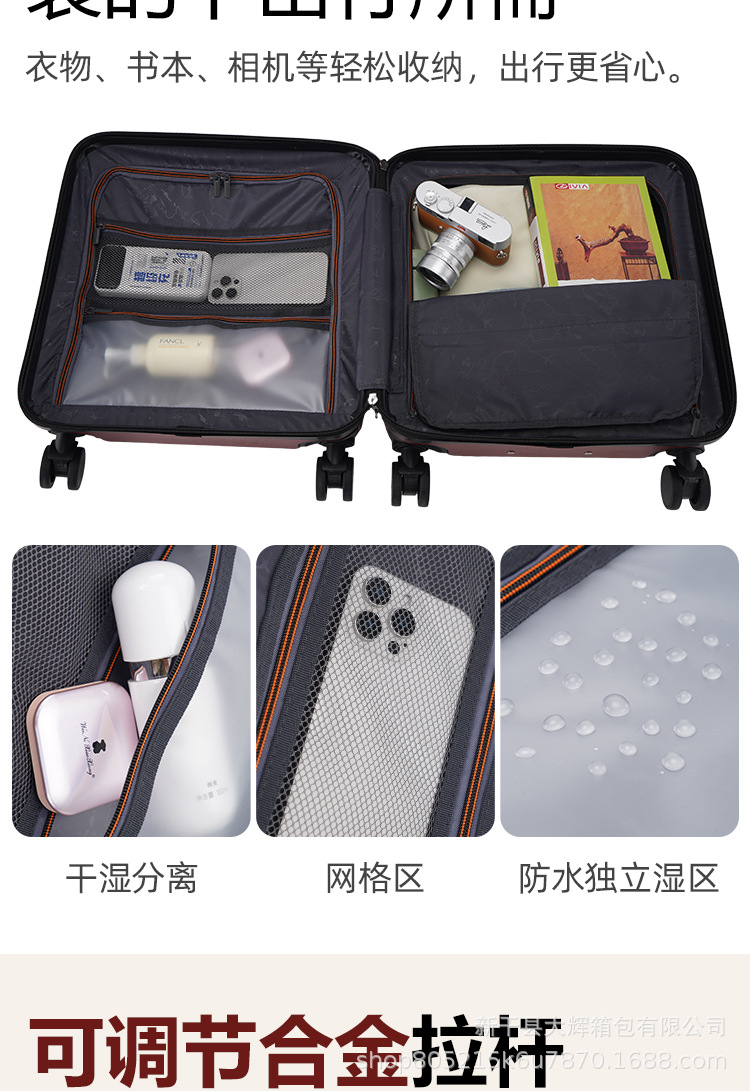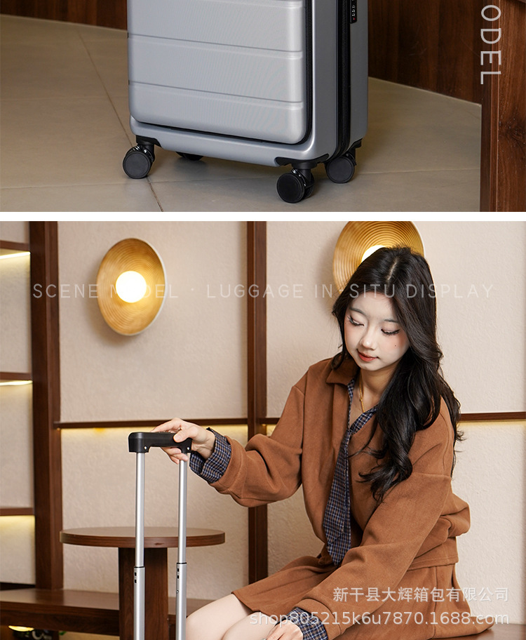 탑승 가능 여행가방 18inch 여행가방 전면 개방형 트롤리 가방 남성용 비밀번호 상자 범용 휠 충격 흡수 브레이크