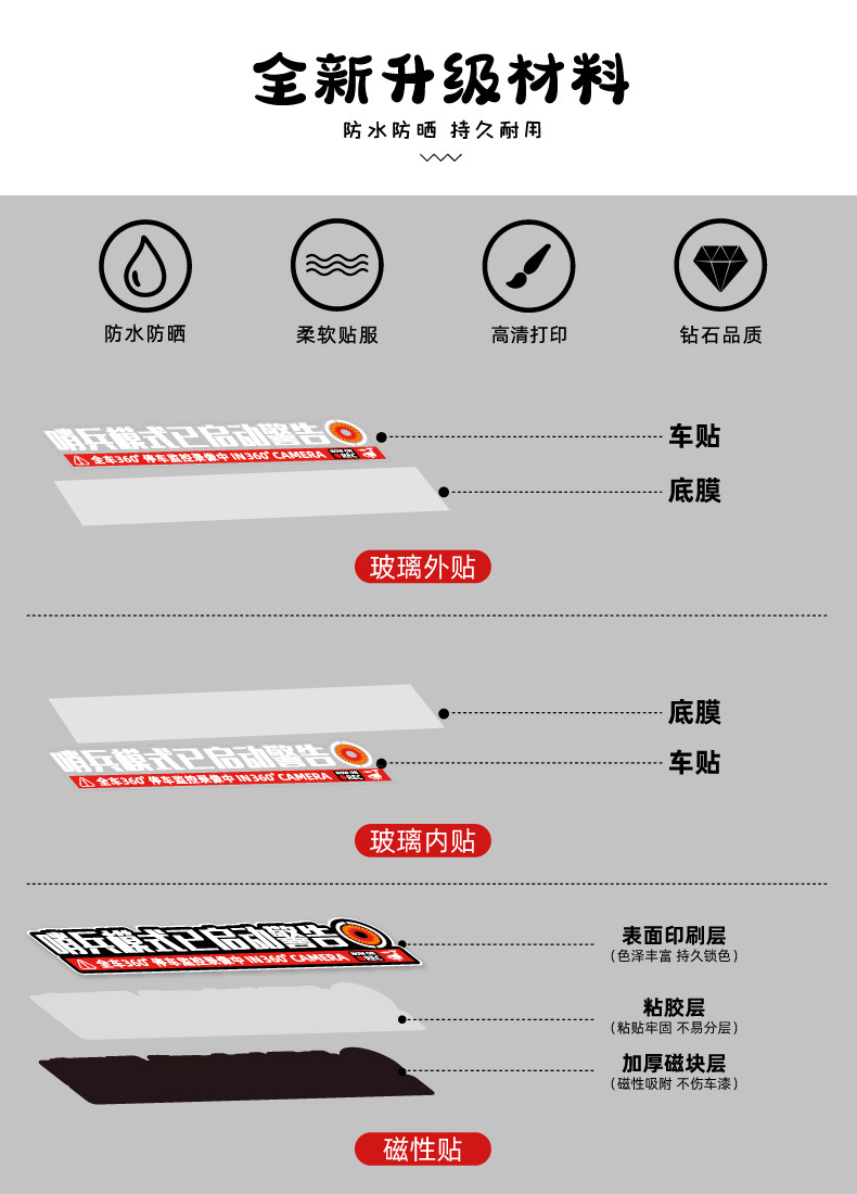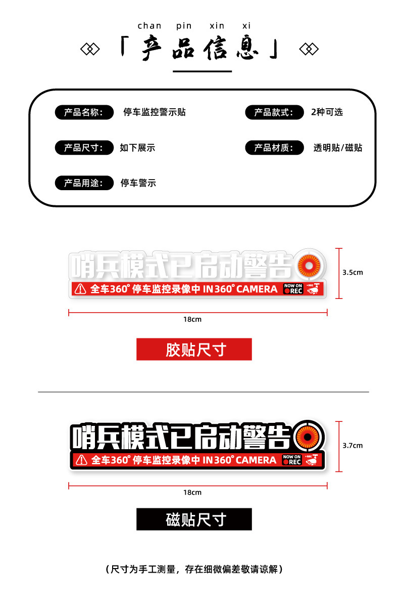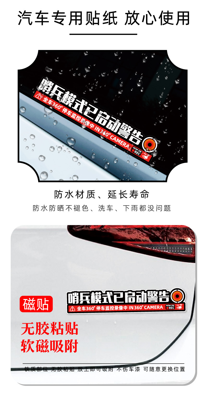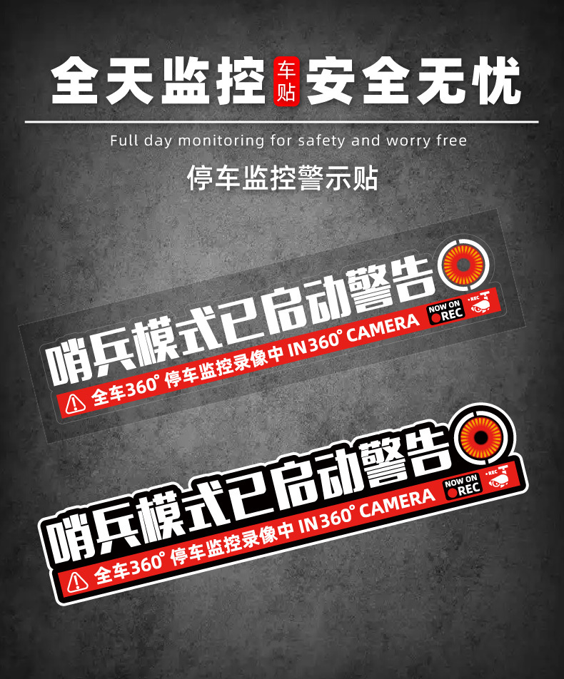경비원 모드가 시작되었습니다. 감시 자동차 스티커 주차 모니터링 기록 경고 도난 방지 스크래치 자동차 스티커 자석
