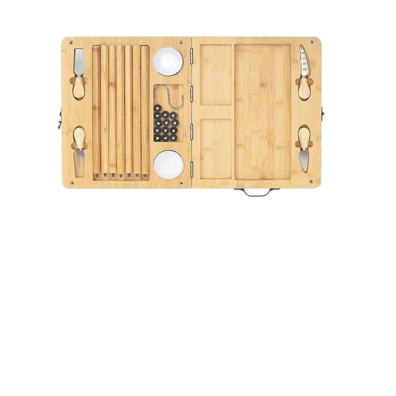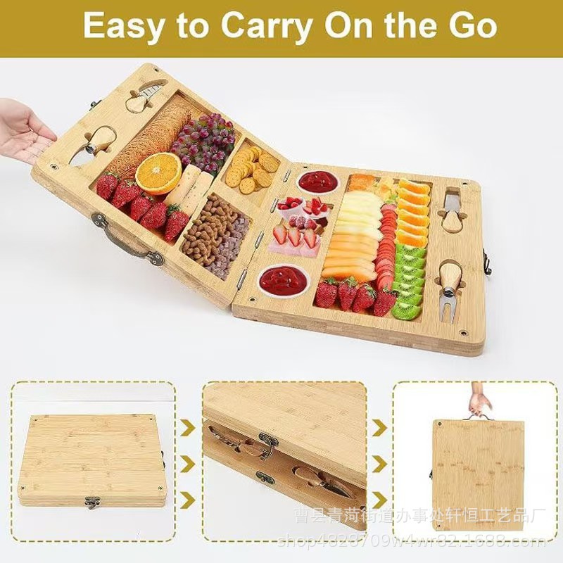 대나무 휴대용 치즈 트레이 단단한 나무 도마 홈 휴대용 접이식 트레이 치즈 빵 보관 상자스토어 가기