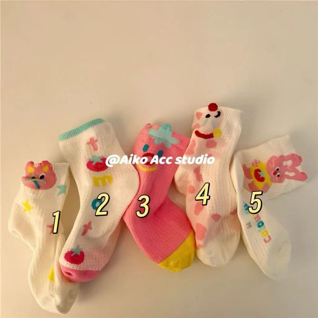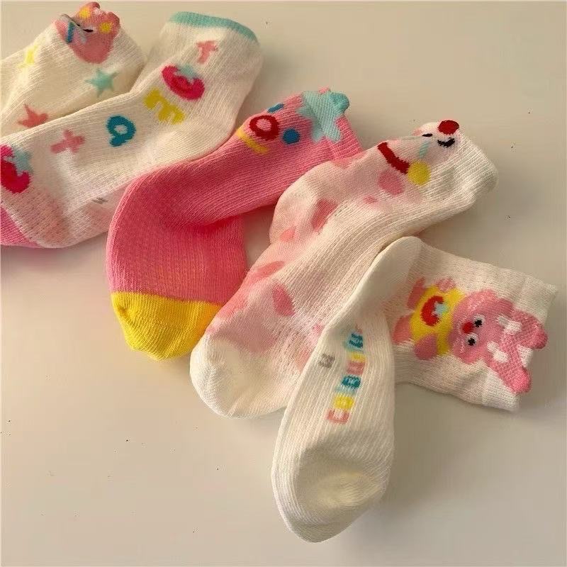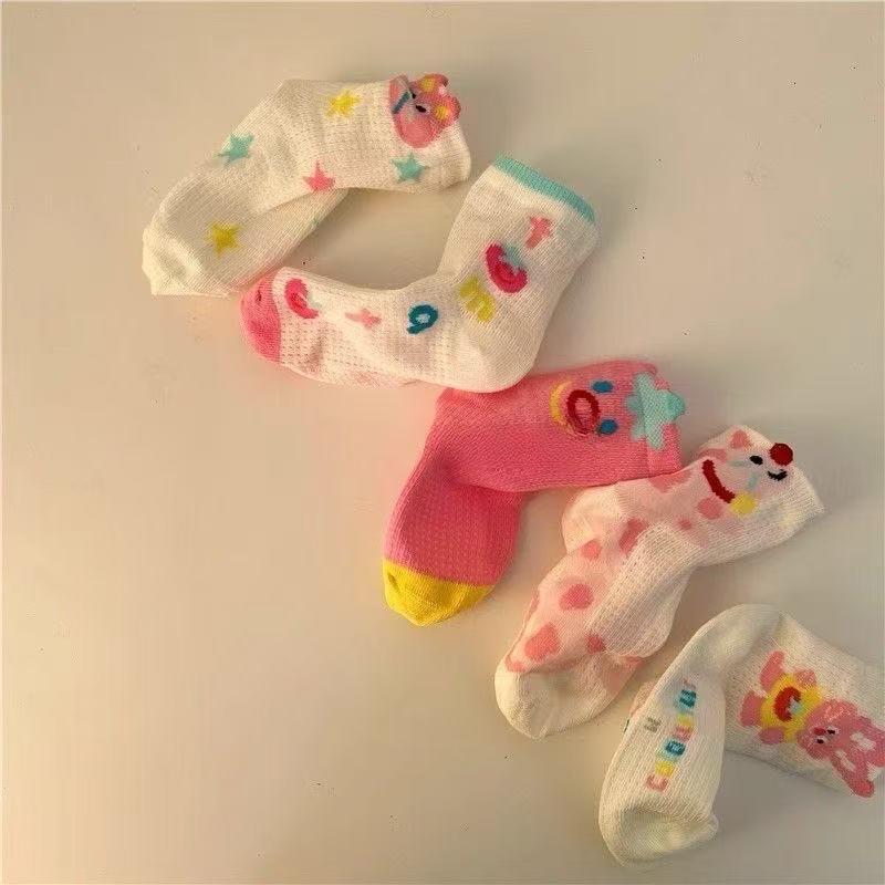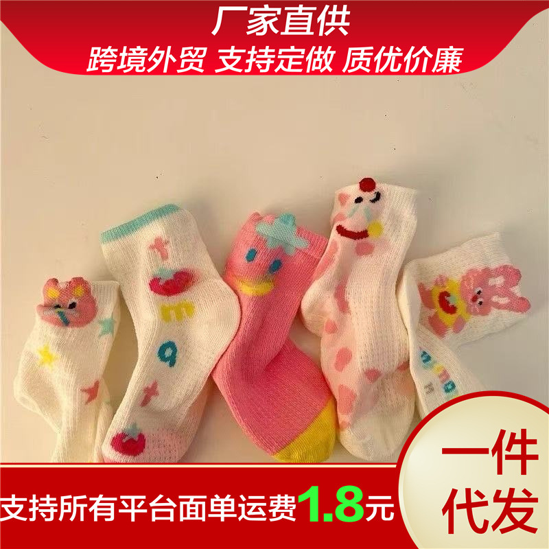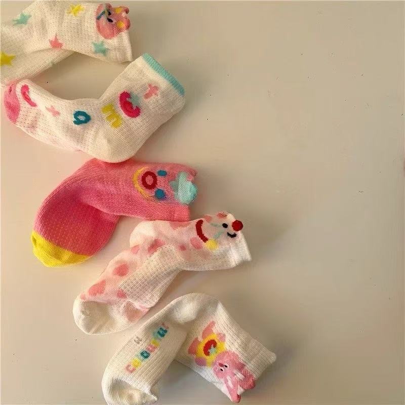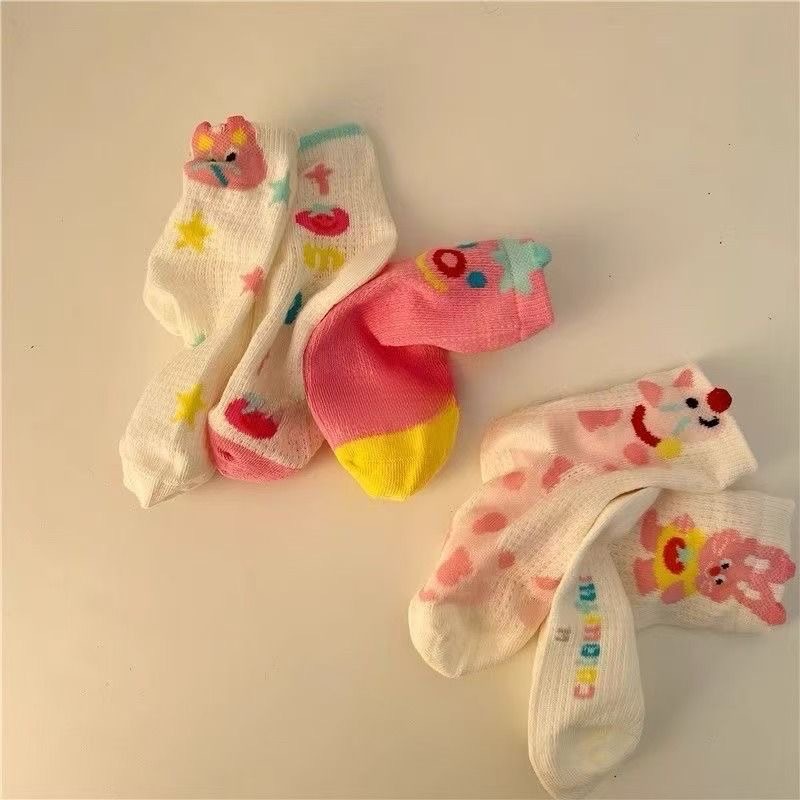 봄과 여름 얇은 어린이 양말 소녀 통기성 메쉬 중간 튜브 양말 소녀 코튼 만화 발견 토끼 양말스토어 가기