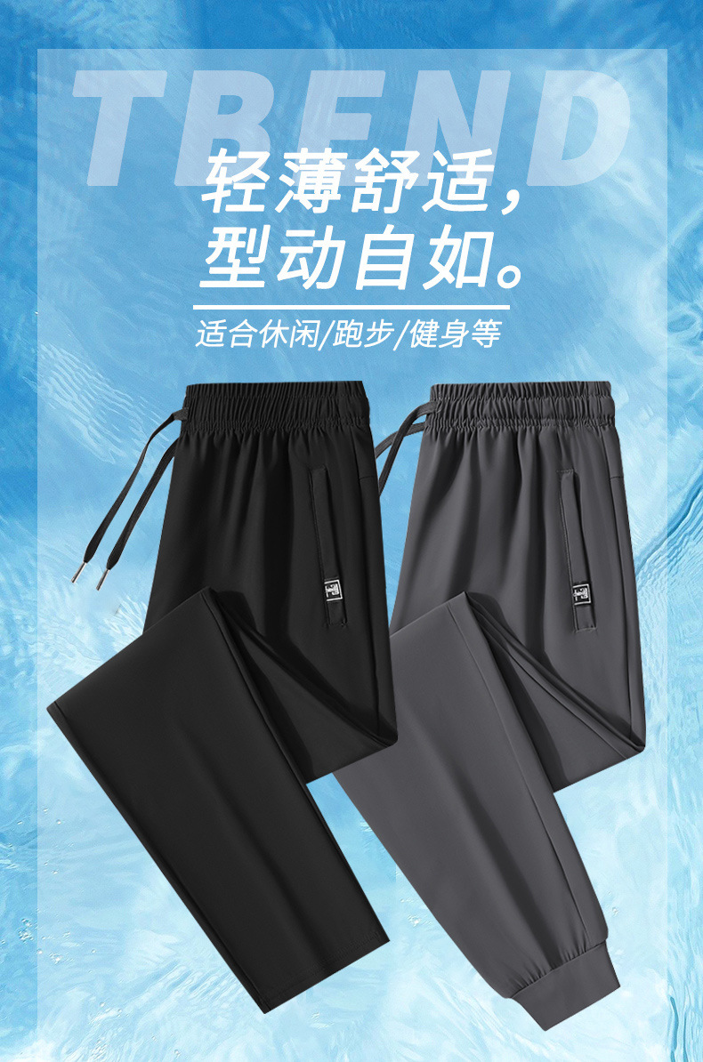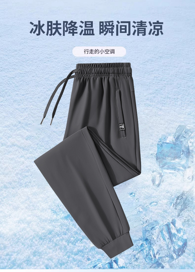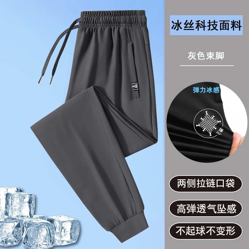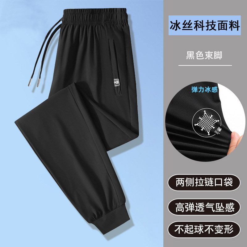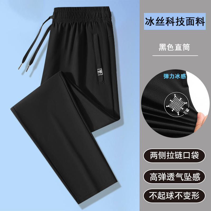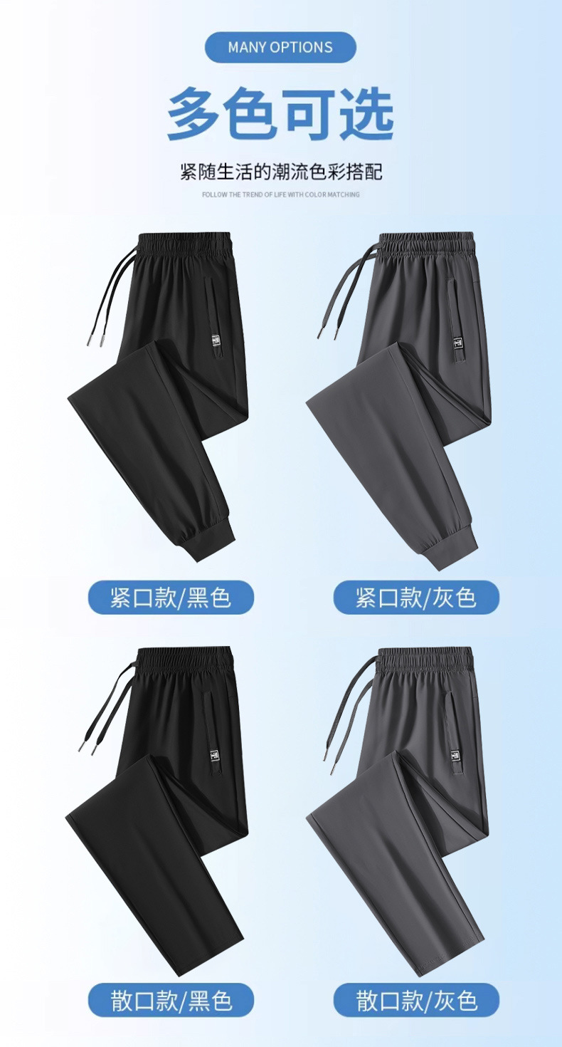 아이스 실크 바지 남자 여름 얇은 빠른 건조 스포츠 바지 느슨한 스트레이트 유행 브랜드 남성 바지 남자 캐주얼 바지