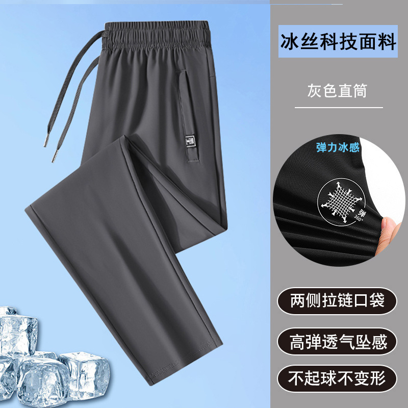 아이스 실크 바지 남자 여름 얇은 빠른 건조 스포츠 바지 느슨한 스트레이트 유행 브랜드 남성 바지 남자 캐주얼 바지스토어 가기