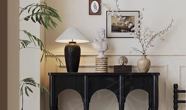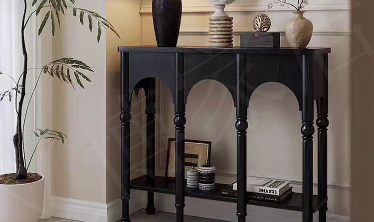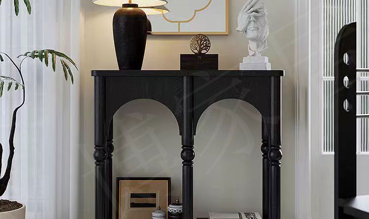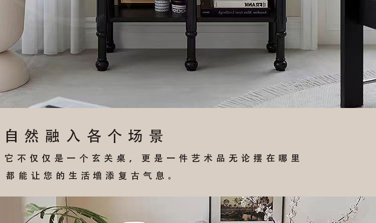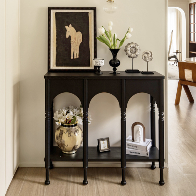 프렌치 스타일 현관 캐비닛 단단한 나무 다리 복고풍 배경 장식 캐비닛 입구 문 현관 복도 보관 검정색스토어 가기