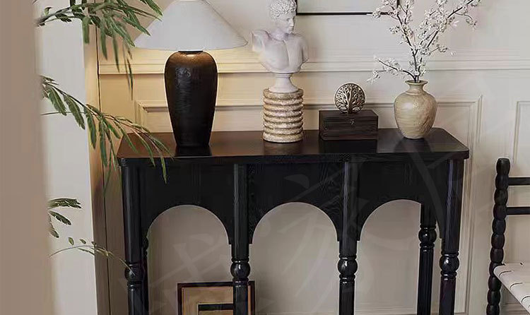 프렌치 스타일 현관 캐비닛 단단한 나무 다리 복고풍 배경 장식 캐비닛 입구 문 현관 복도 보관 검정색
