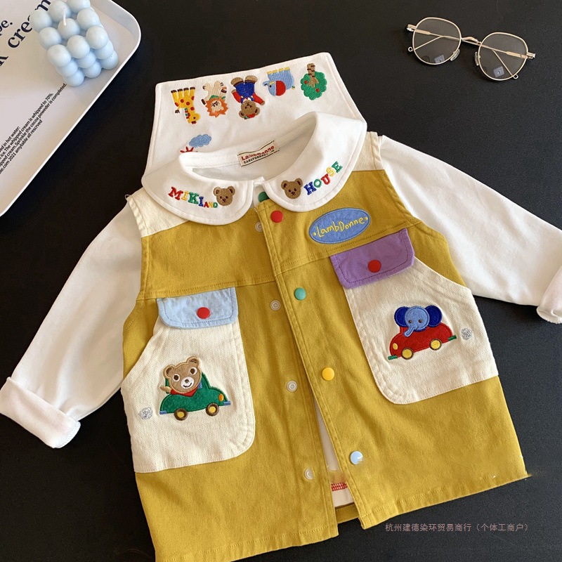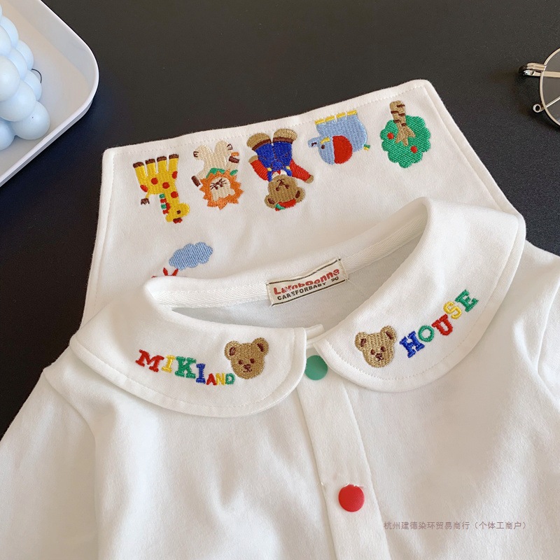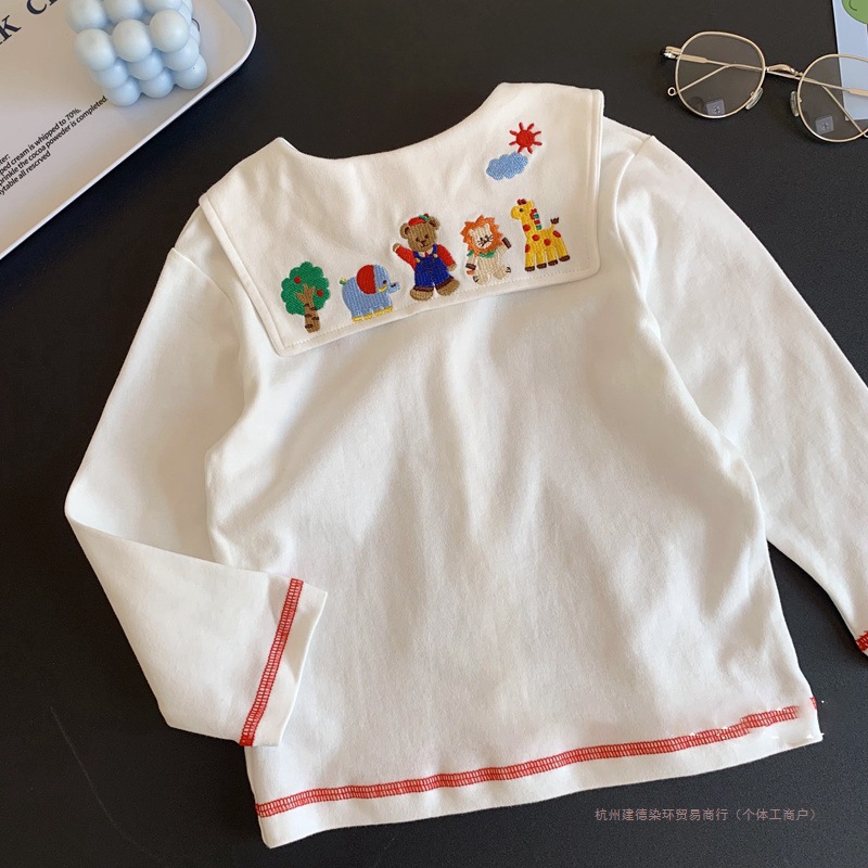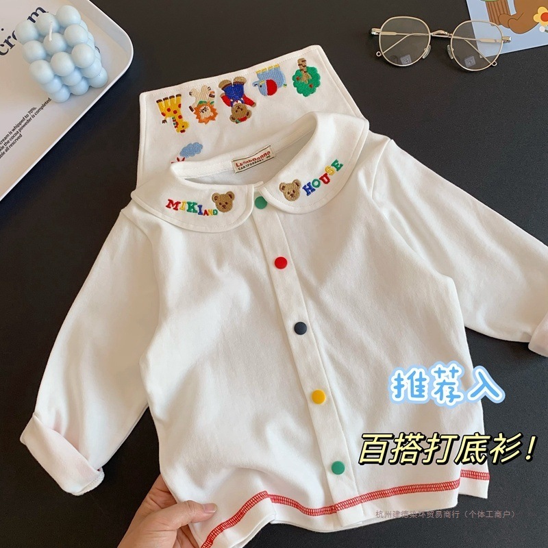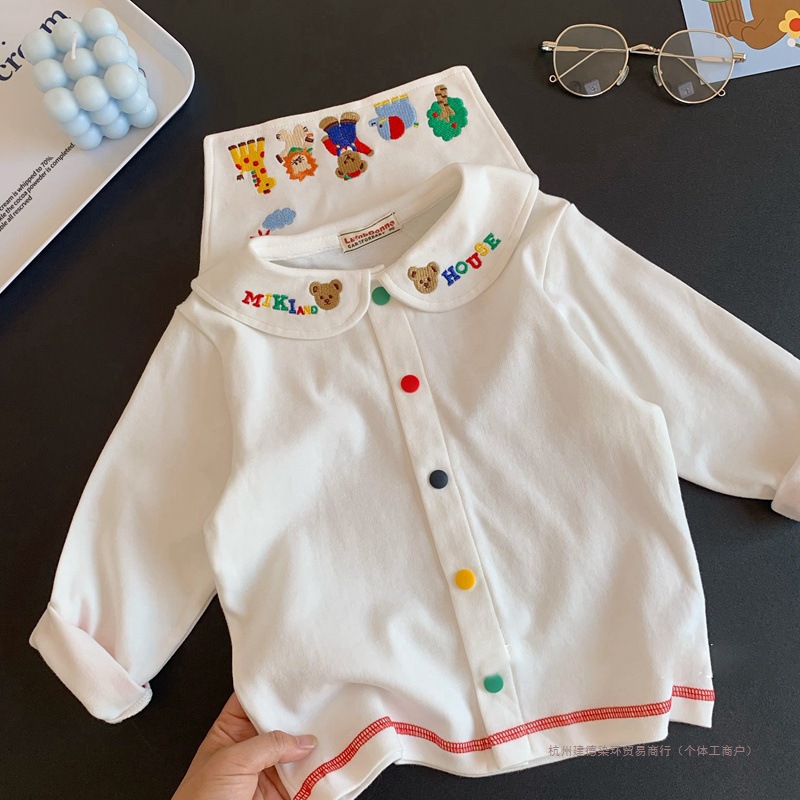 일본 신상 긴팔 티셔츠!어린이와 아기를 위한 귀여운 만화 자수 라펠 셔츠 탑 티셔츠 염색 링