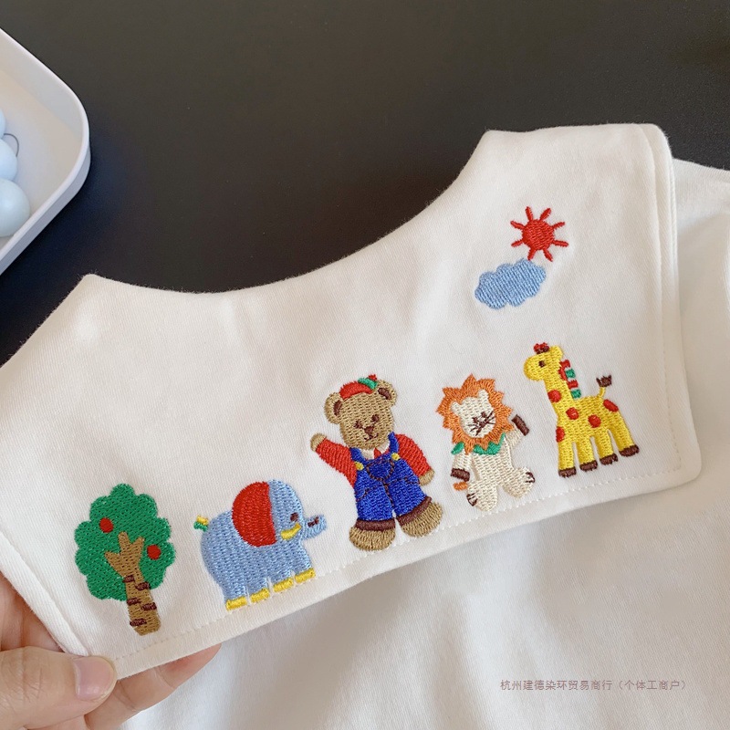 일본 신상 긴팔 티셔츠!어린이와 아기를 위한 귀여운 만화 자수 라펠 셔츠 탑 티셔츠 염색 링스토어 가기