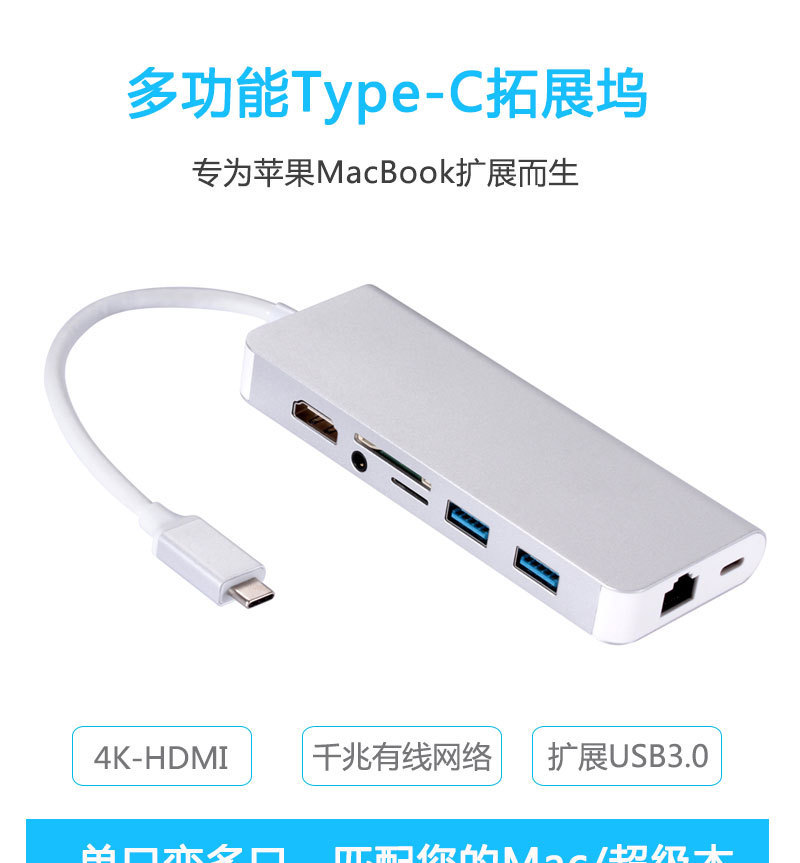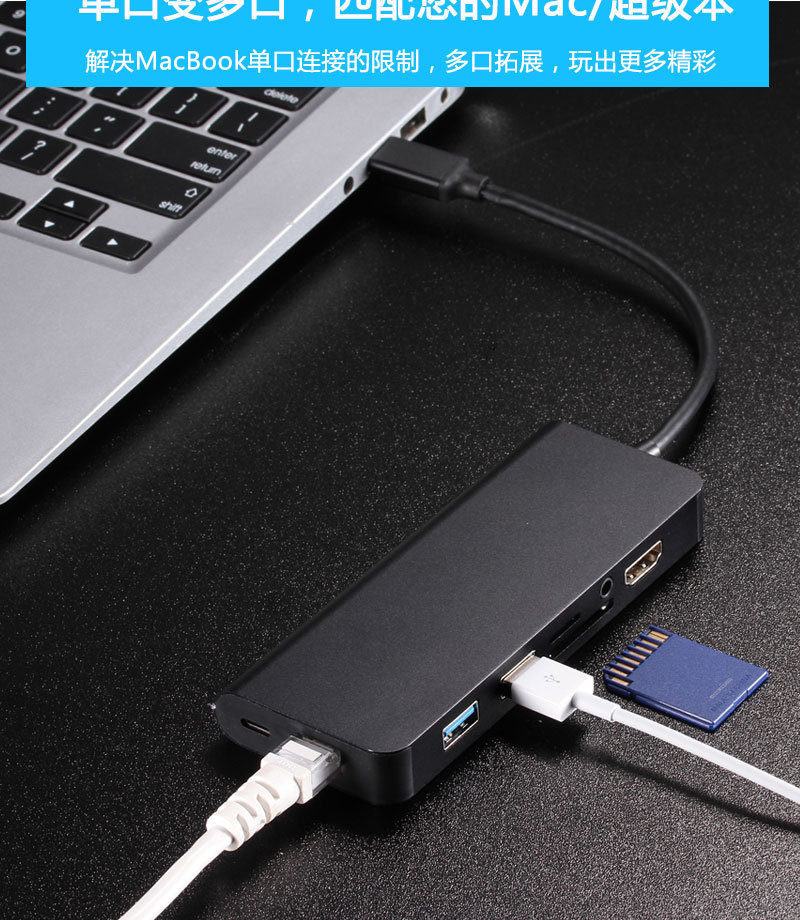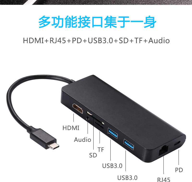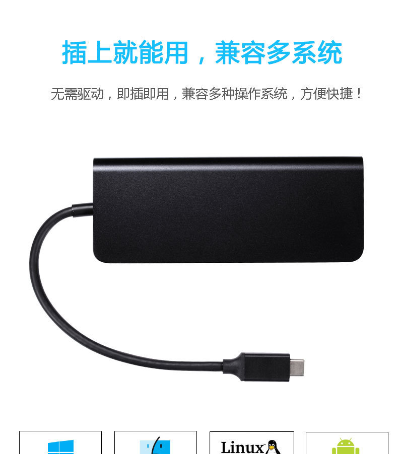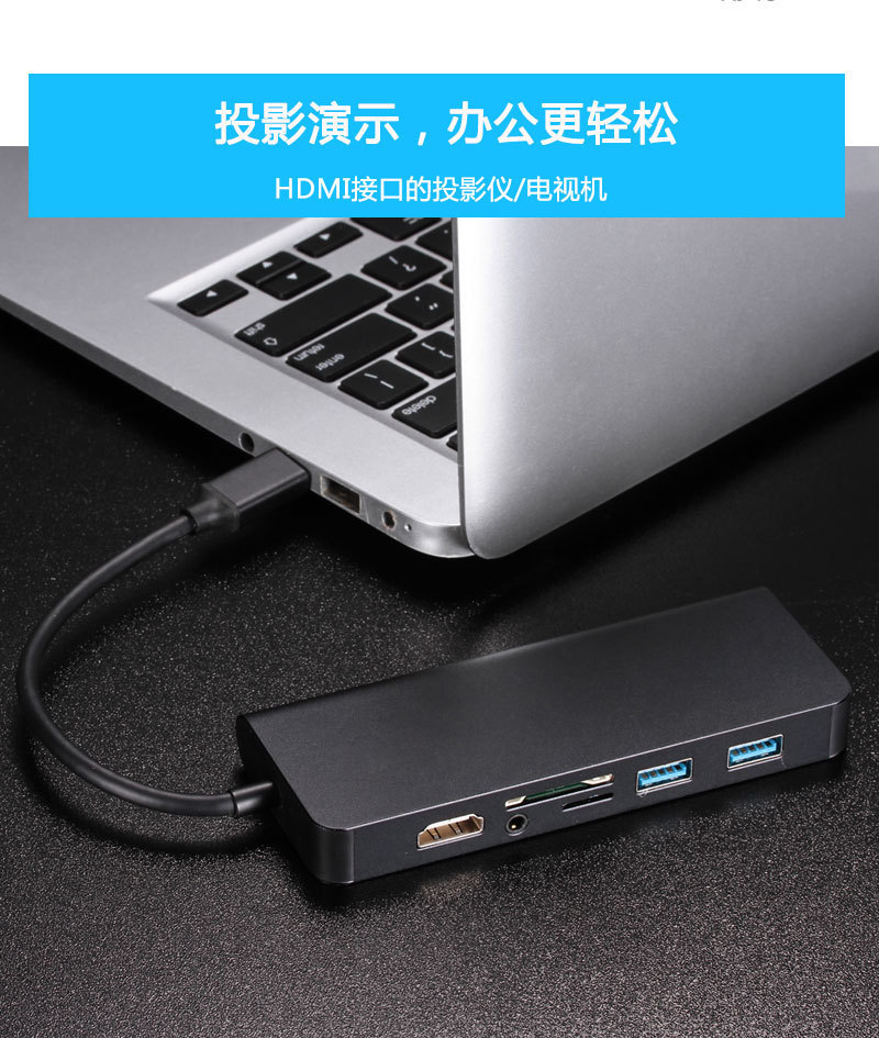 typec to hdmi 고화질 4K 디스플레이 USB3.0 기가비트 네트워크 카드 허브 카드 리더기 8-in-one 변환기 확장 도크스토어 가기