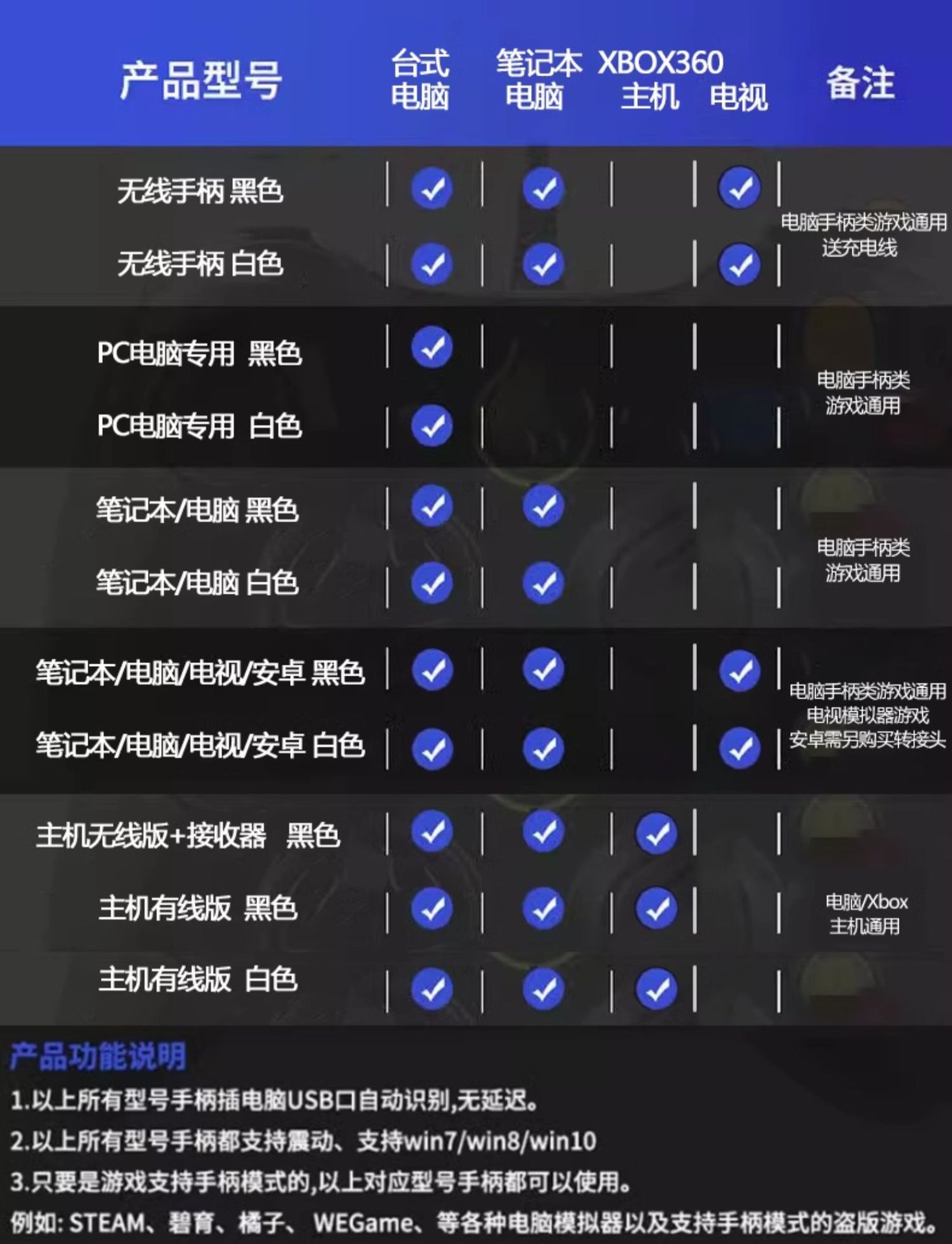 • 호스트 버전 무선 버전[컴퓨터/360 호스트 범용]에는 상자에 진동이 있는 수신기가 함께 제공됩니다.