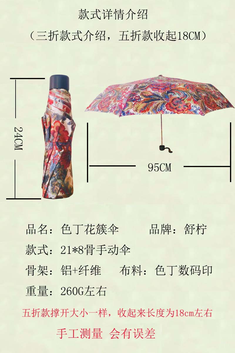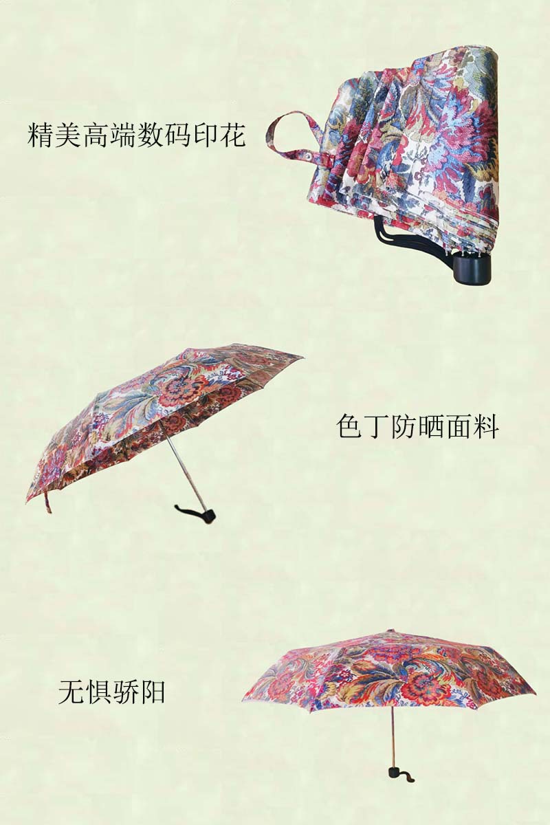 [틱톡 핫 모델] 초경량 꽃 클러스터 인터넷 연예인 우산 복고풍 태양 우산 여성용 자외선 차단제 태양 우산 미니 우산