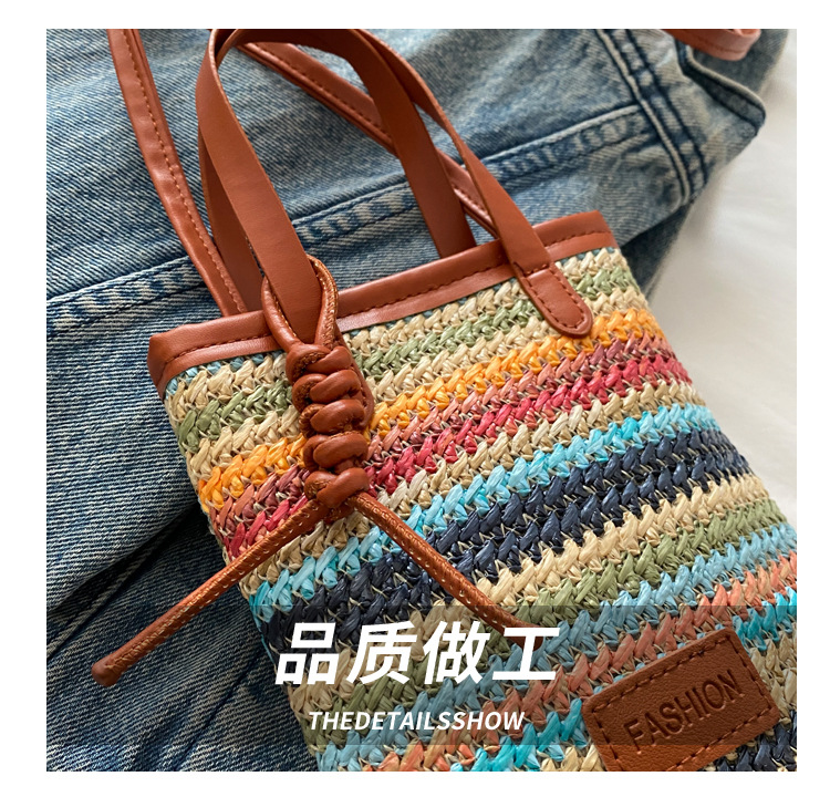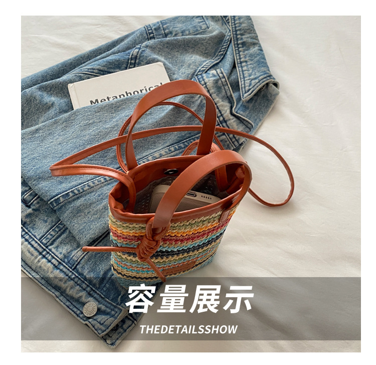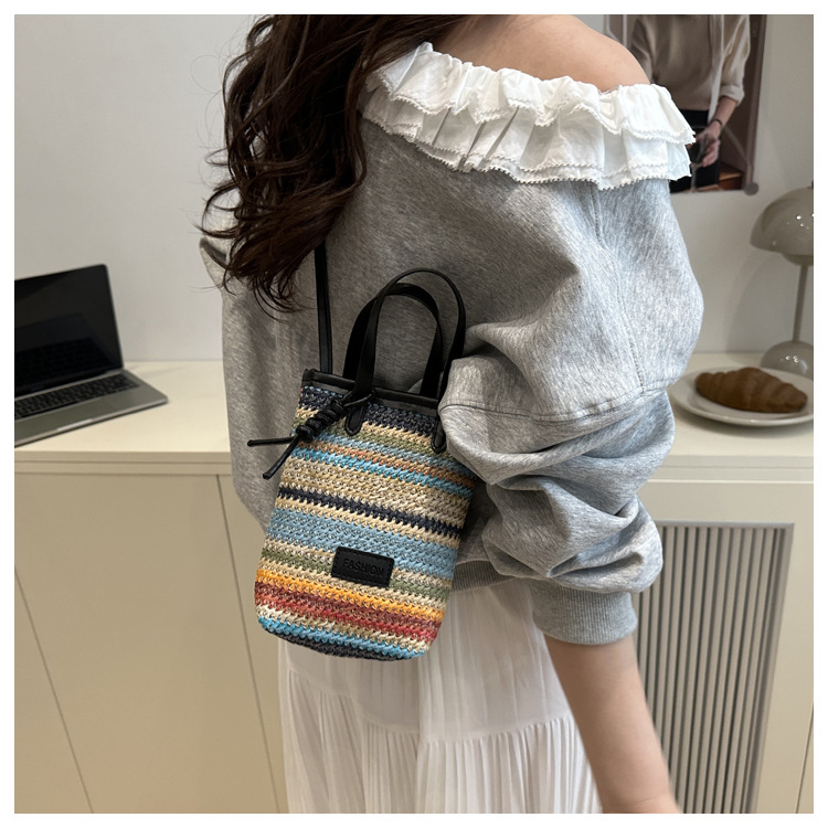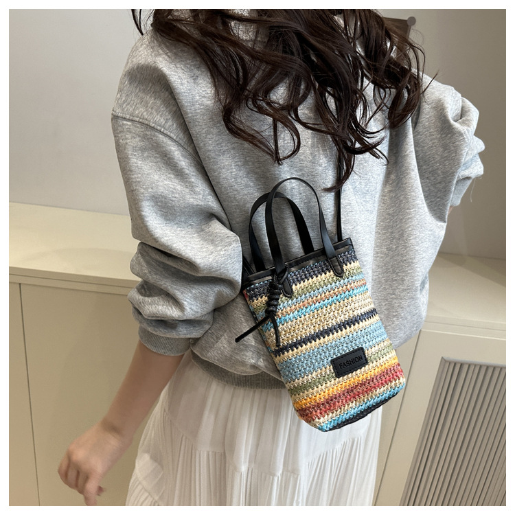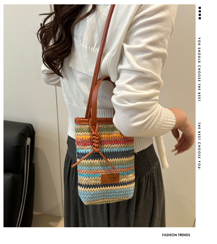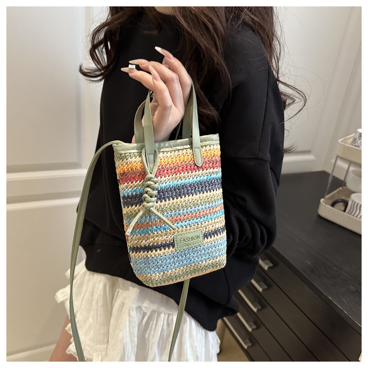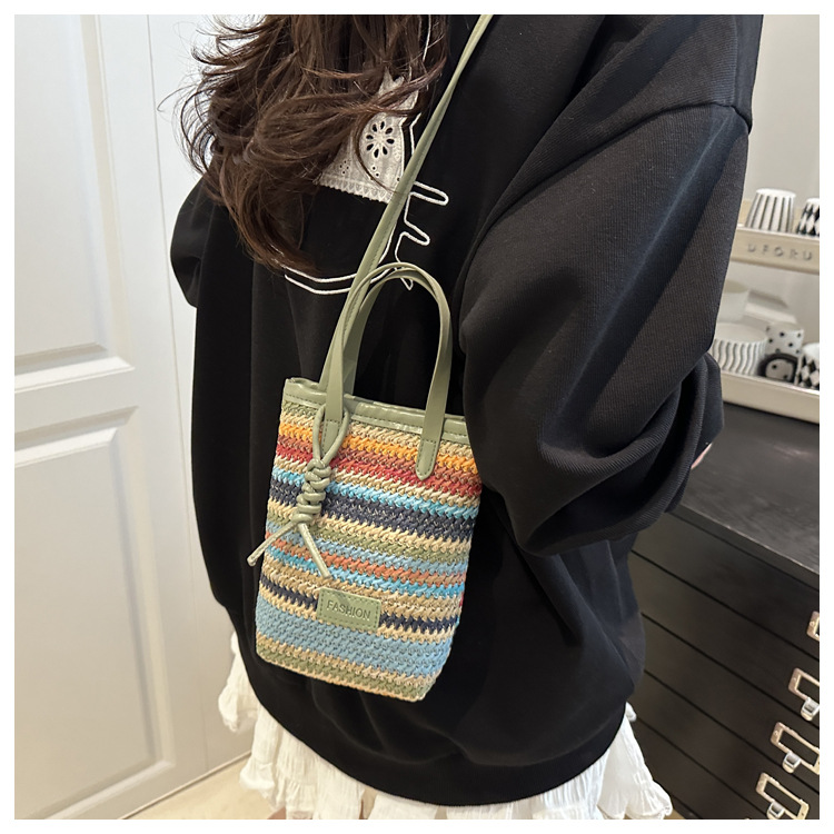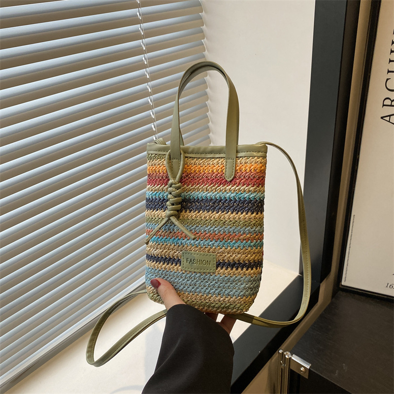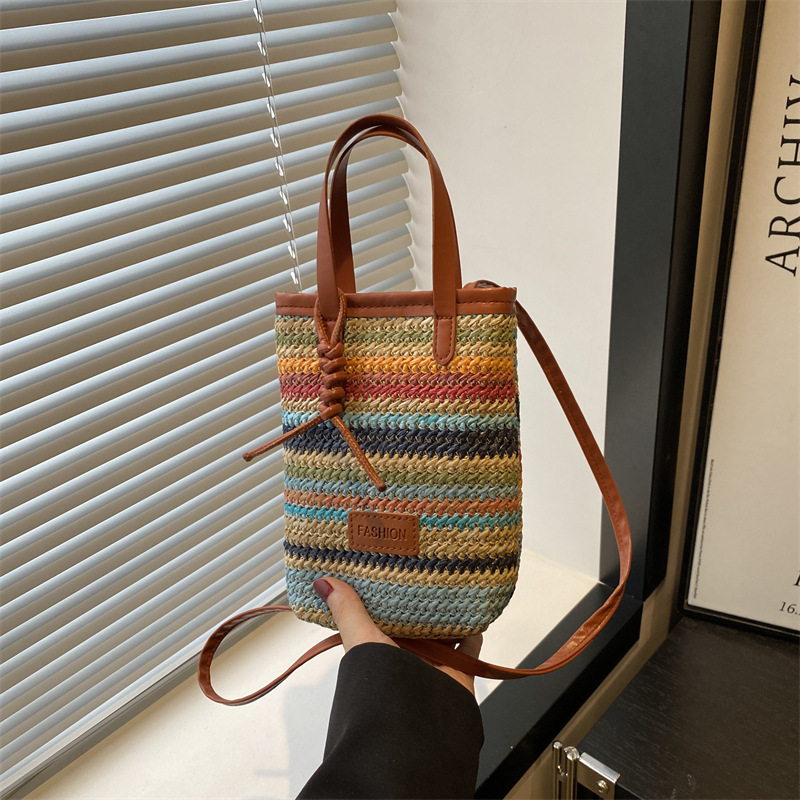 명암 컬러 짠 가방 여성 2025 여름 새로운 유행 유행 밀짚 휴대 전화 가방 한국 틈새 간단한 크로스 바디 백스토어 가기