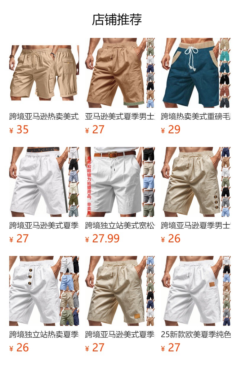 2025 Amazon AliExpress 크로스보더 남성 통기성 5점 스포츠 캐주얼 반바지 여름 느슨한 통기성 린넨스토어 가기